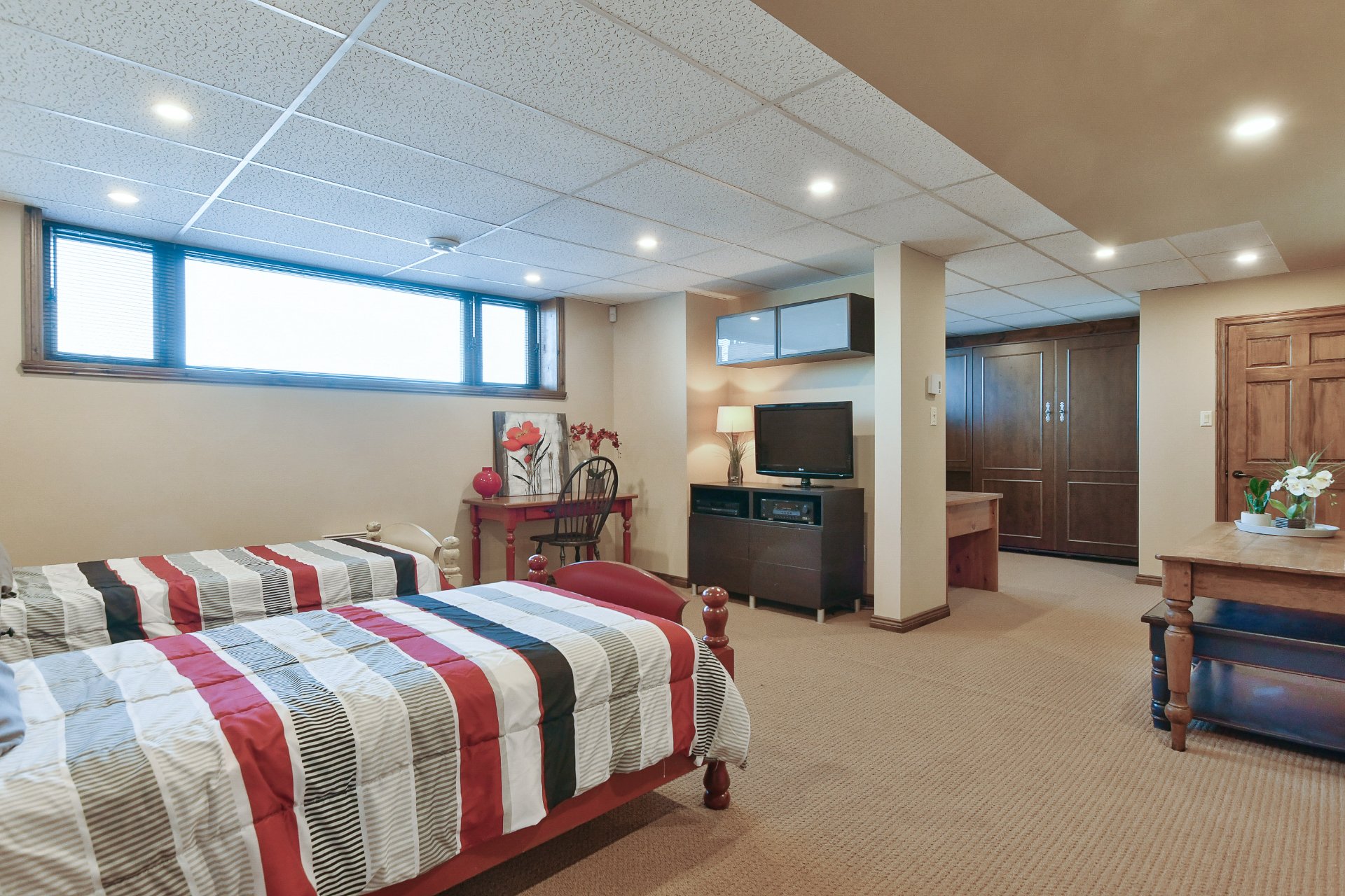 Le sous-sol aménagé propose une grande salle familiale, un coin bureau, une autre salle de bains complète ainsi que plusieurs espaces de rangement.
