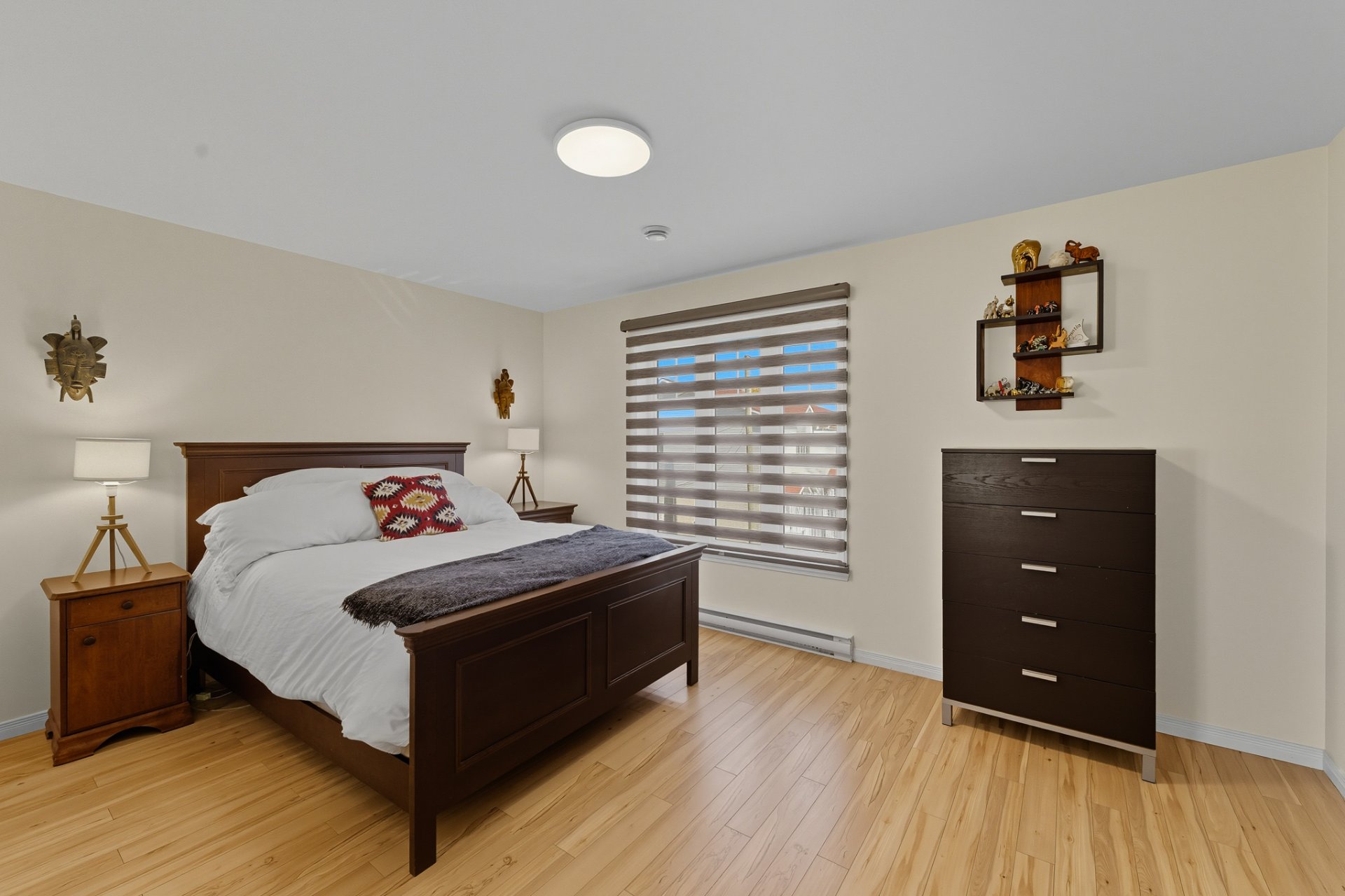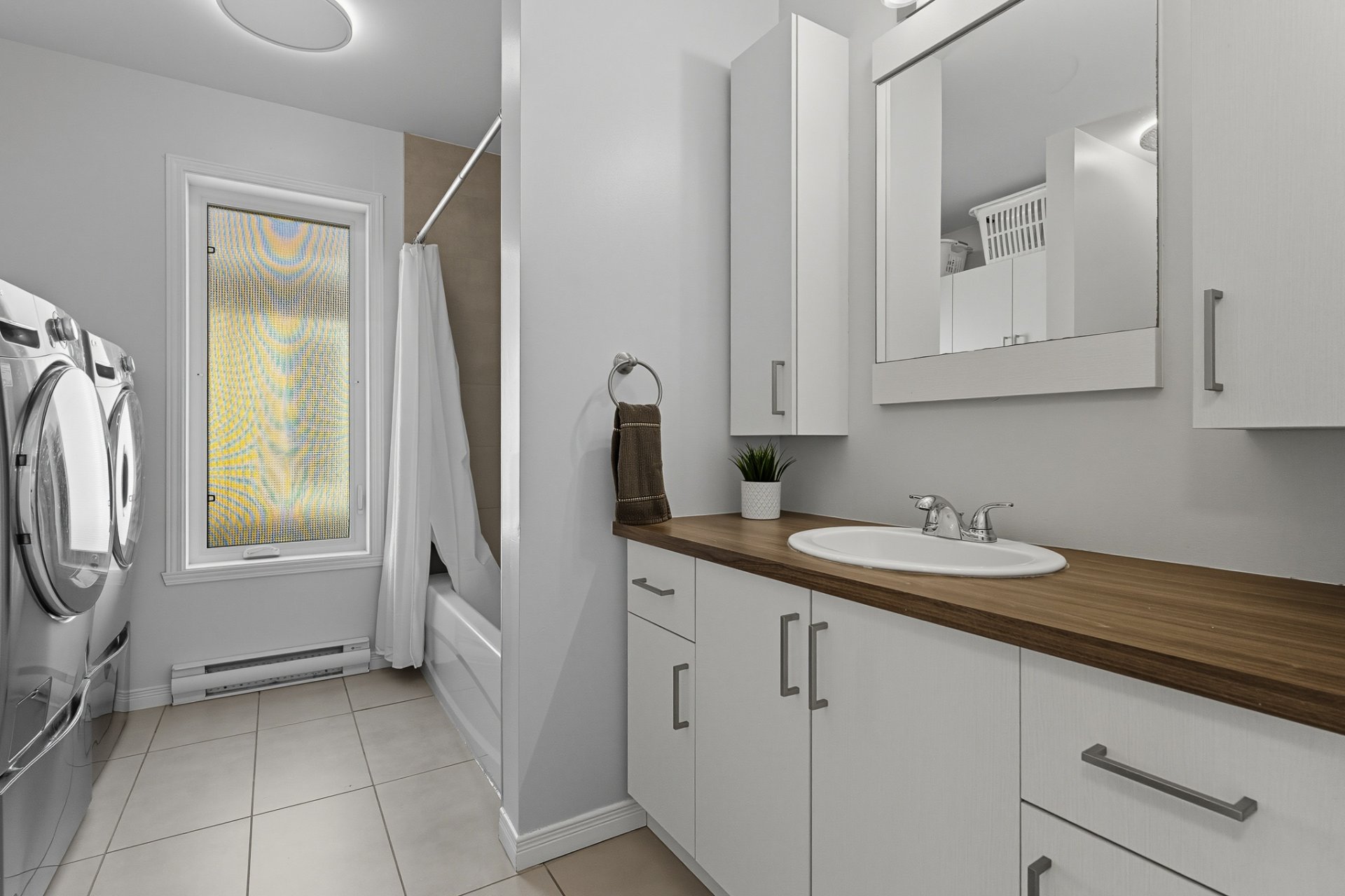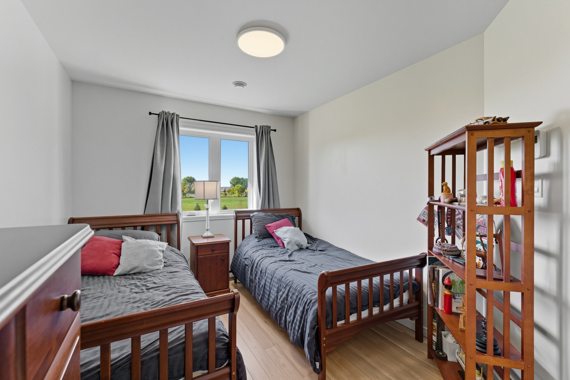 À l'étage, trois chambres bien proportionnées offrent à chaque membre de la famille un espace personnel confortable. La chambre principale séduit par son volume et son ambiance apaisante. La salle de bain principale, quant à elle, est aménagée pour le confort avec installation laveuse et sécheuse. Les autres chambres peuvent être utilisées selon vos besoins -- chambres d'enfants, bureau à domicile ou espace invité.