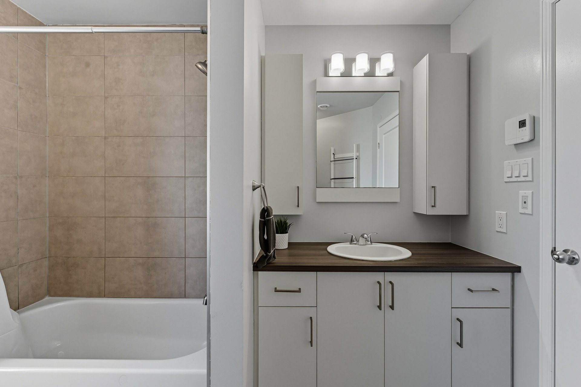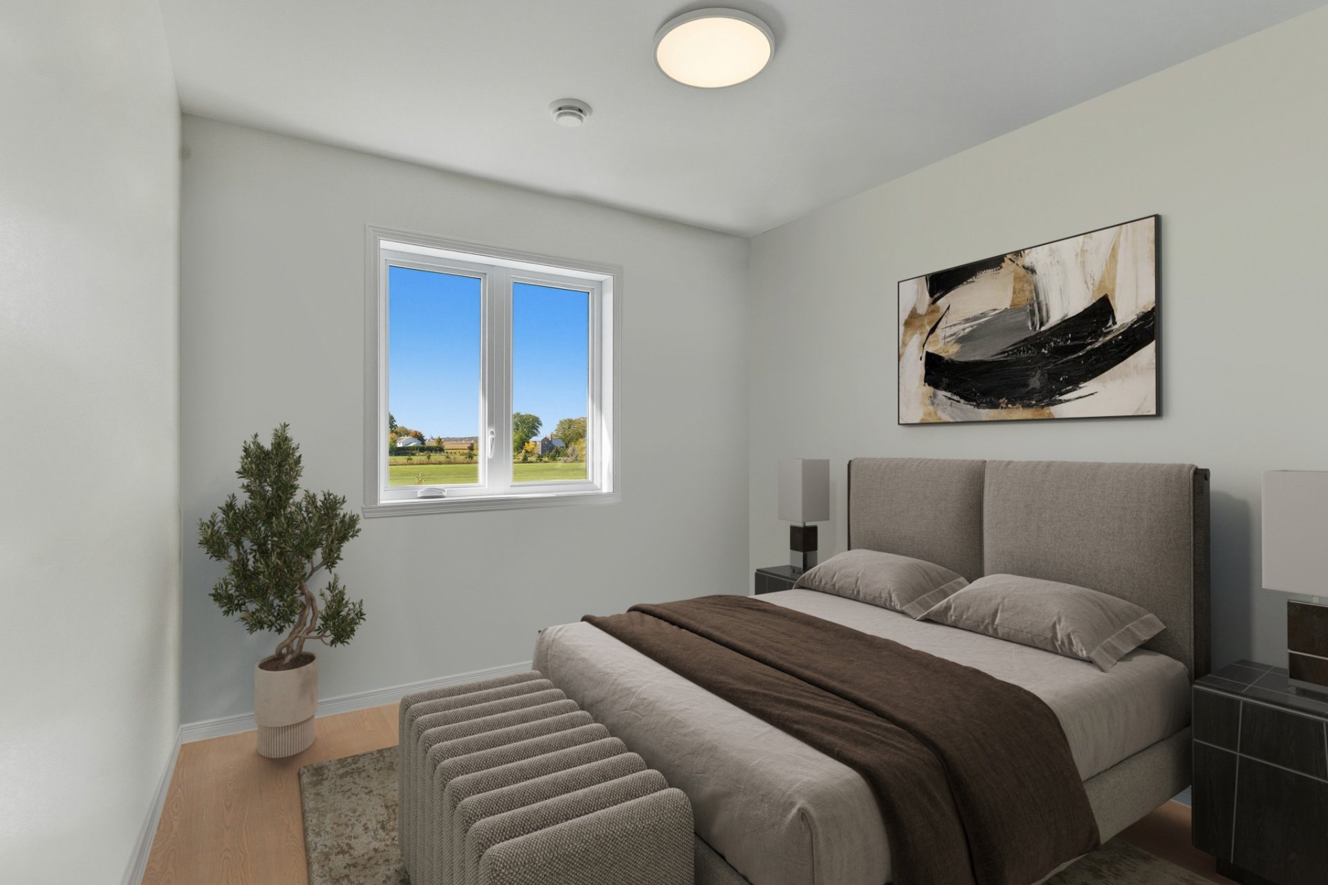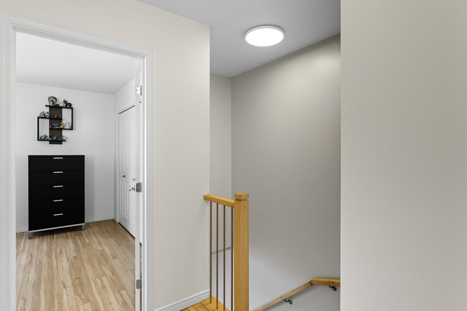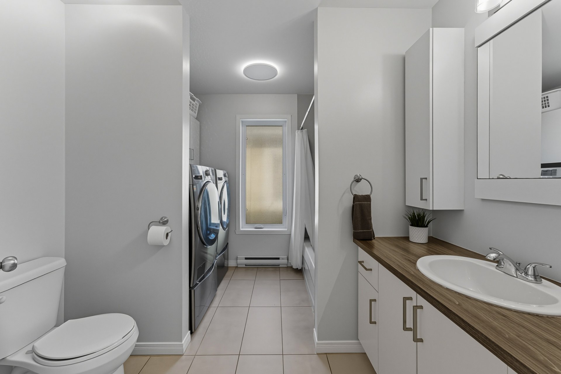 À l'étage, trois chambres bien proportionnées offrent à chaque membre de la famille un espace personnel confortable. La chambre principale séduit par son volume et son ambiance apaisante. La salle de bain principale, quant à elle, est aménagée pour le confort avec installation laveuse et sécheuse. Les autres chambres peuvent être utilisées selon vos besoins -- chambres d'enfants, bureau à domicile ou espace invité.