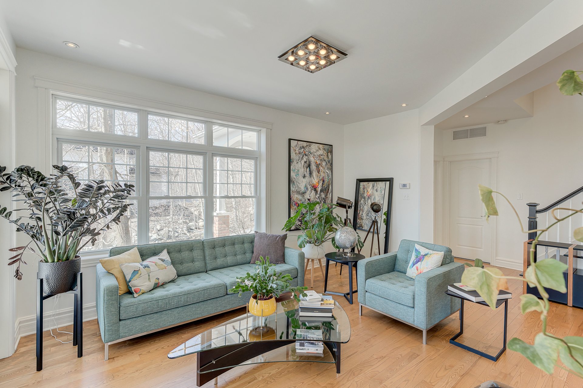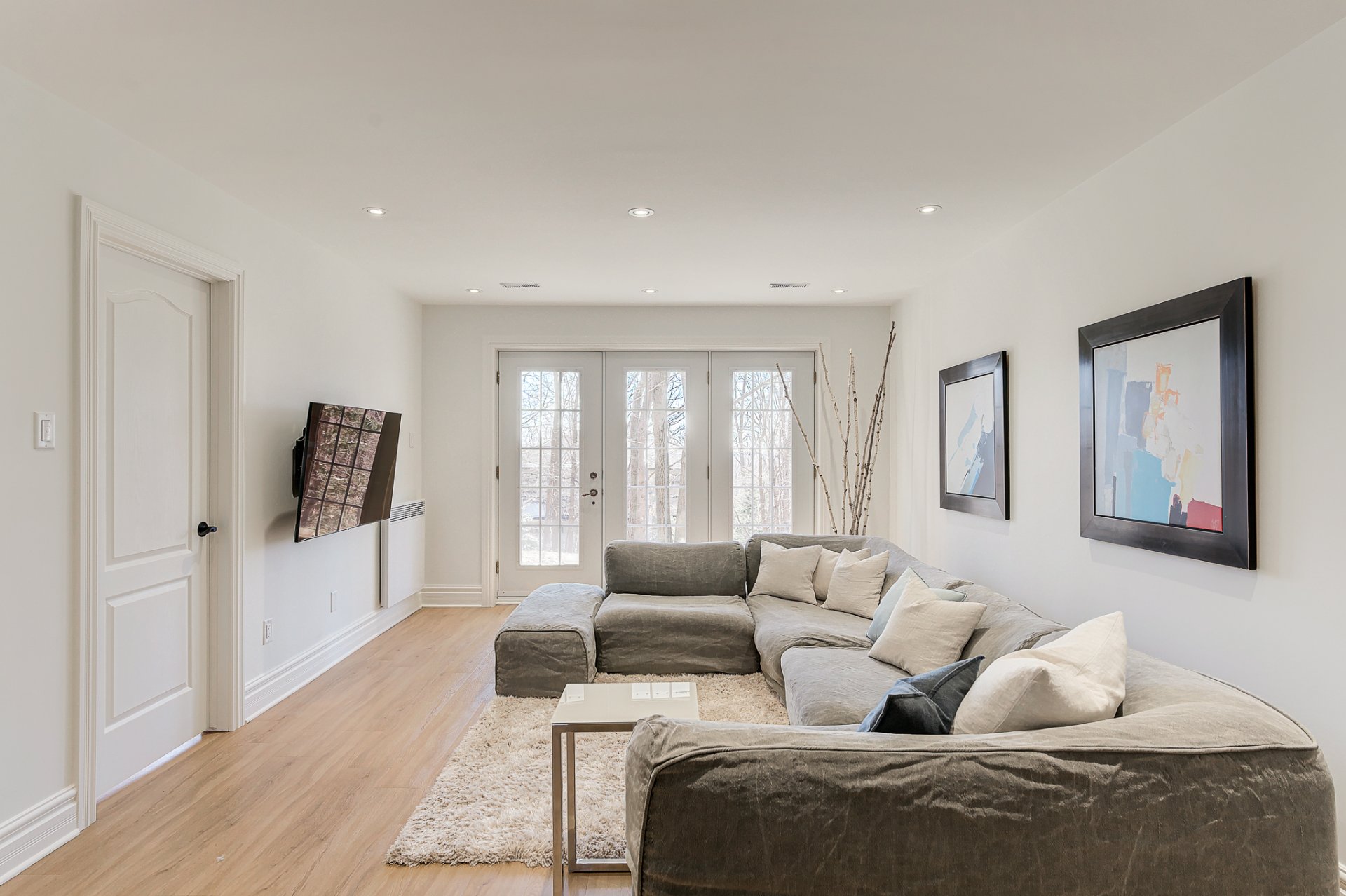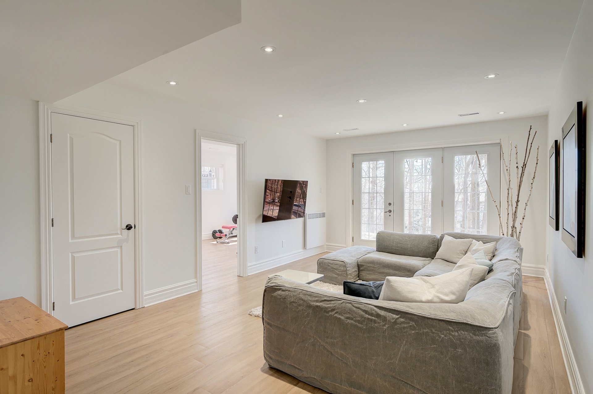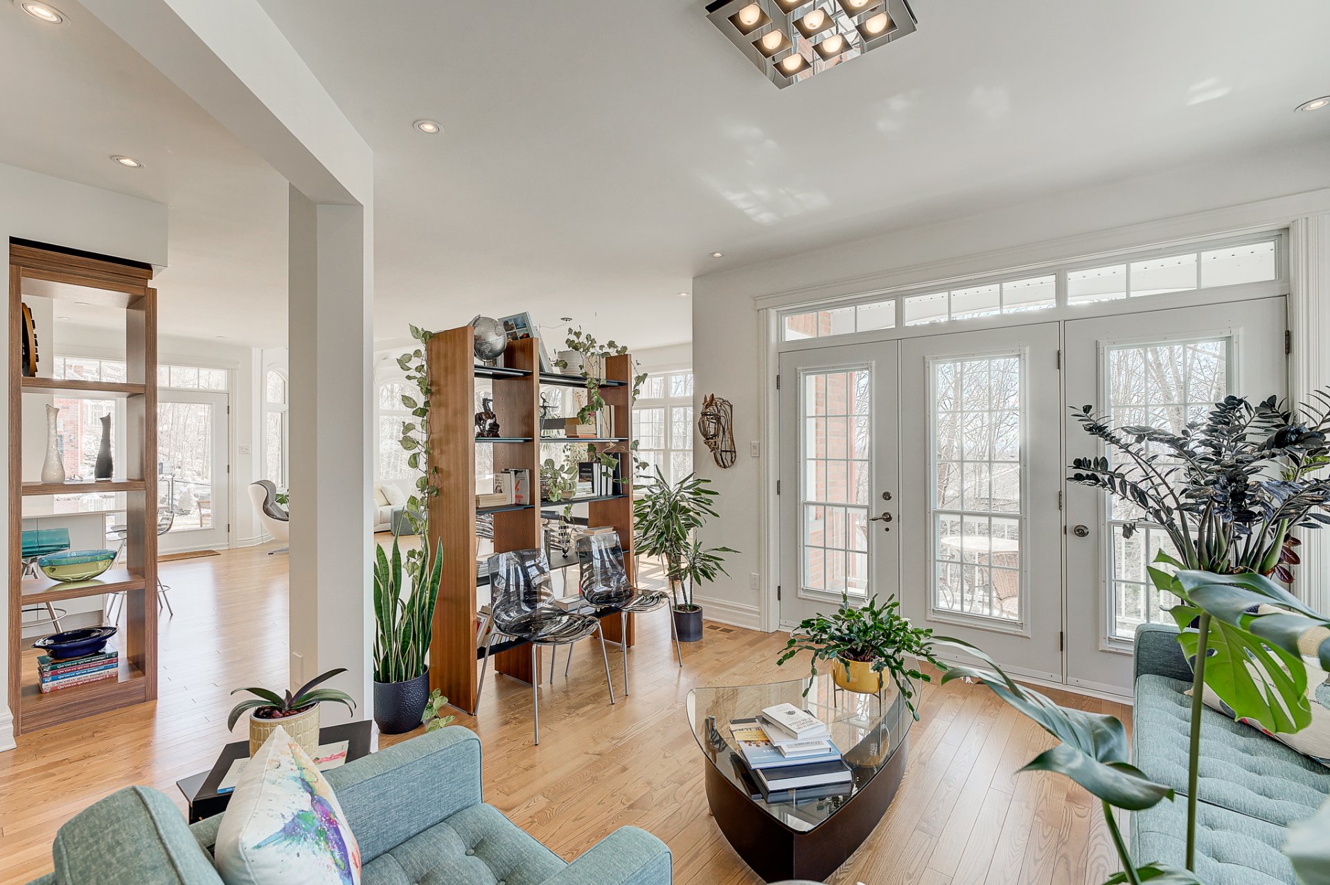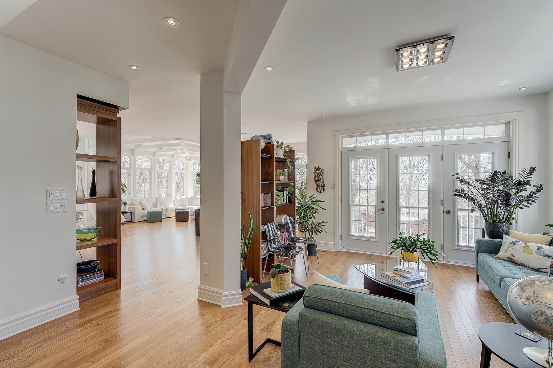 - Salon avec portes françaises qui mènent vers un joli balcon;