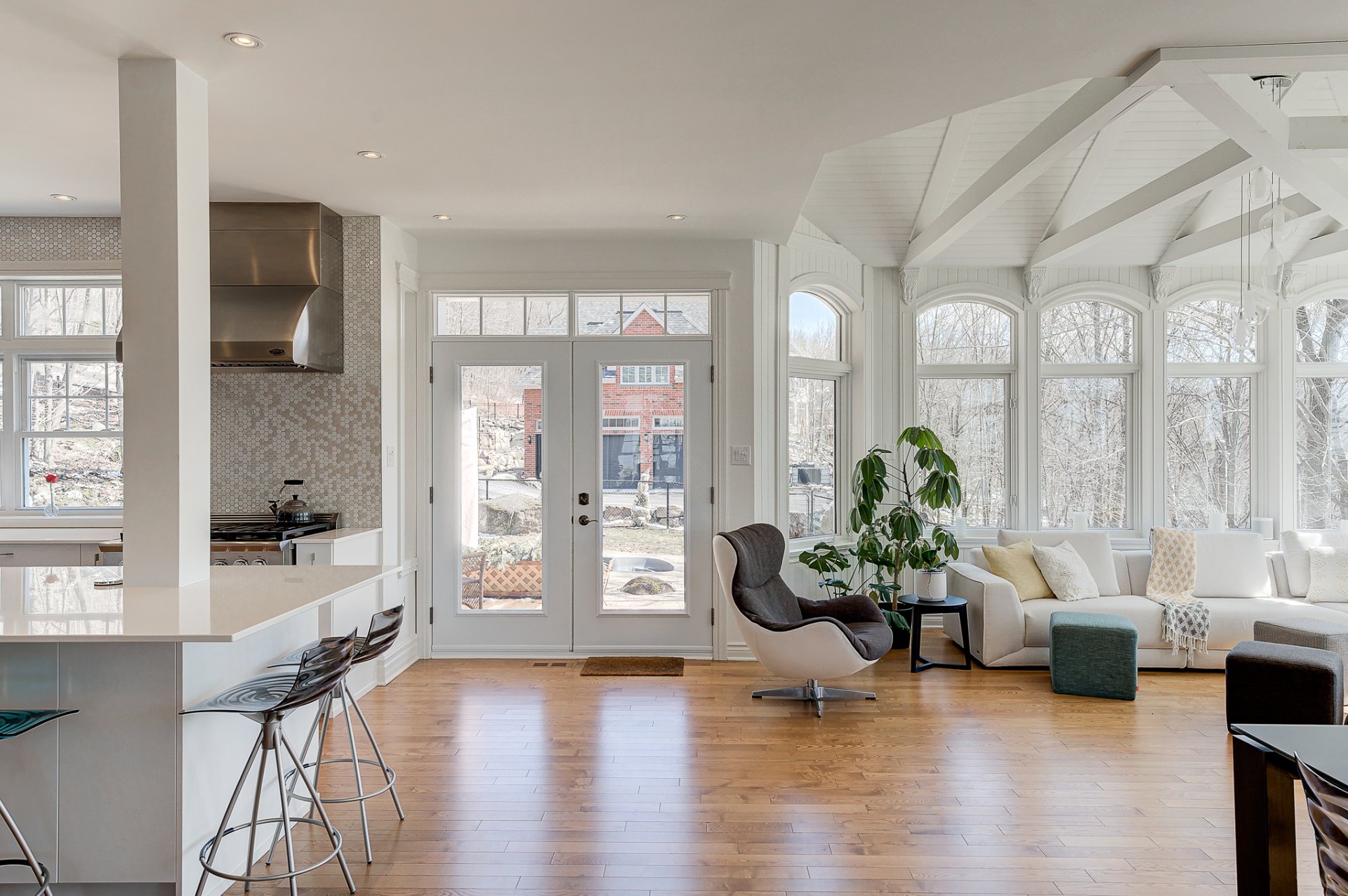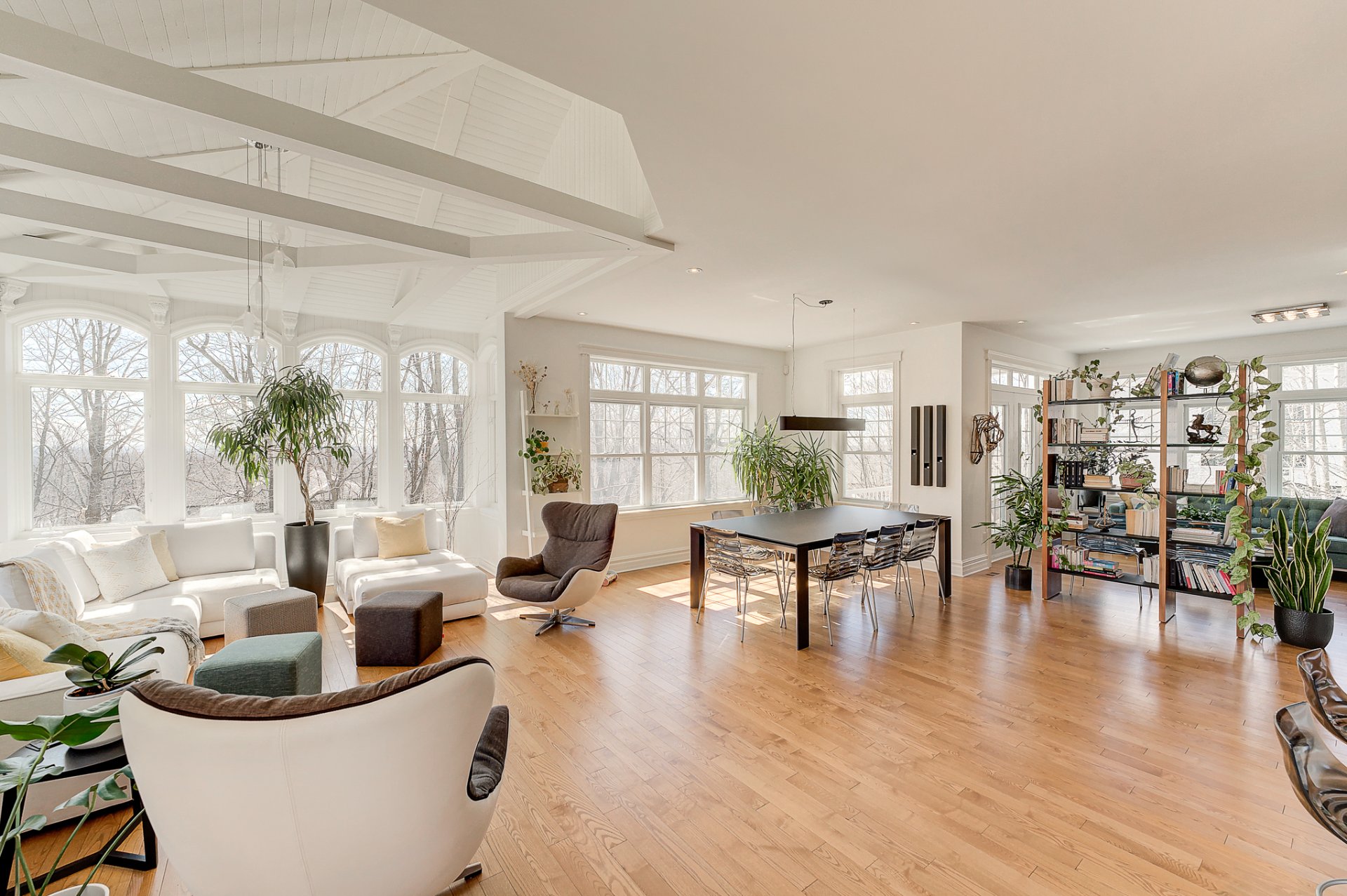 - un confortable solarium avec plafond cathédrale et poutres apparentes;