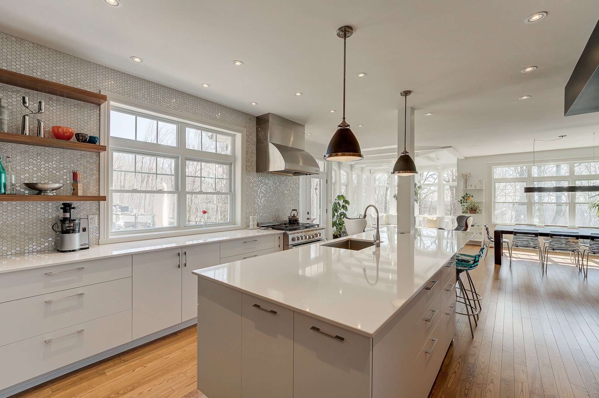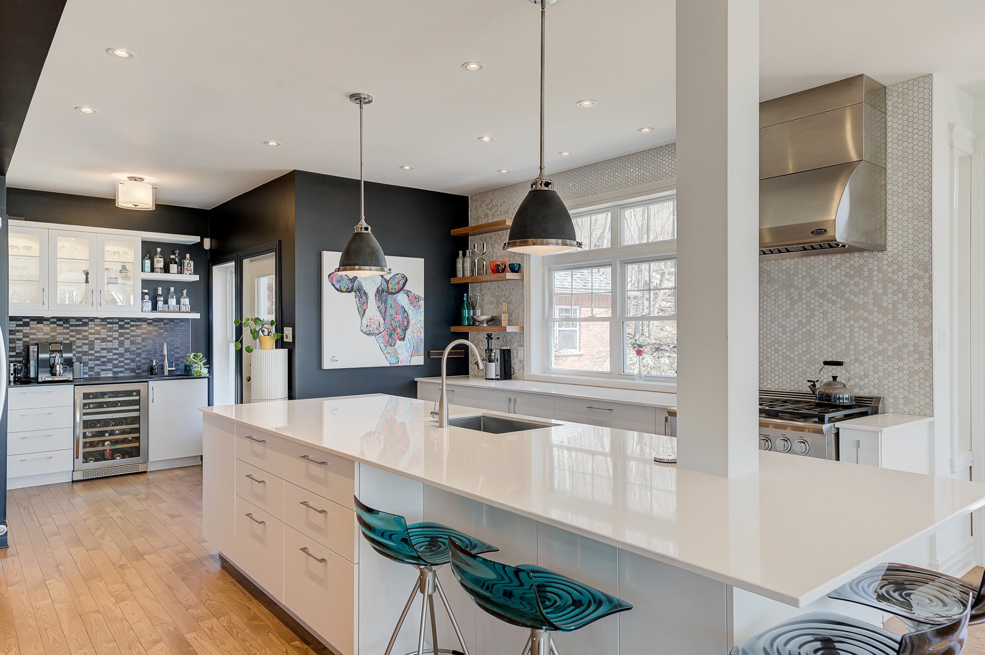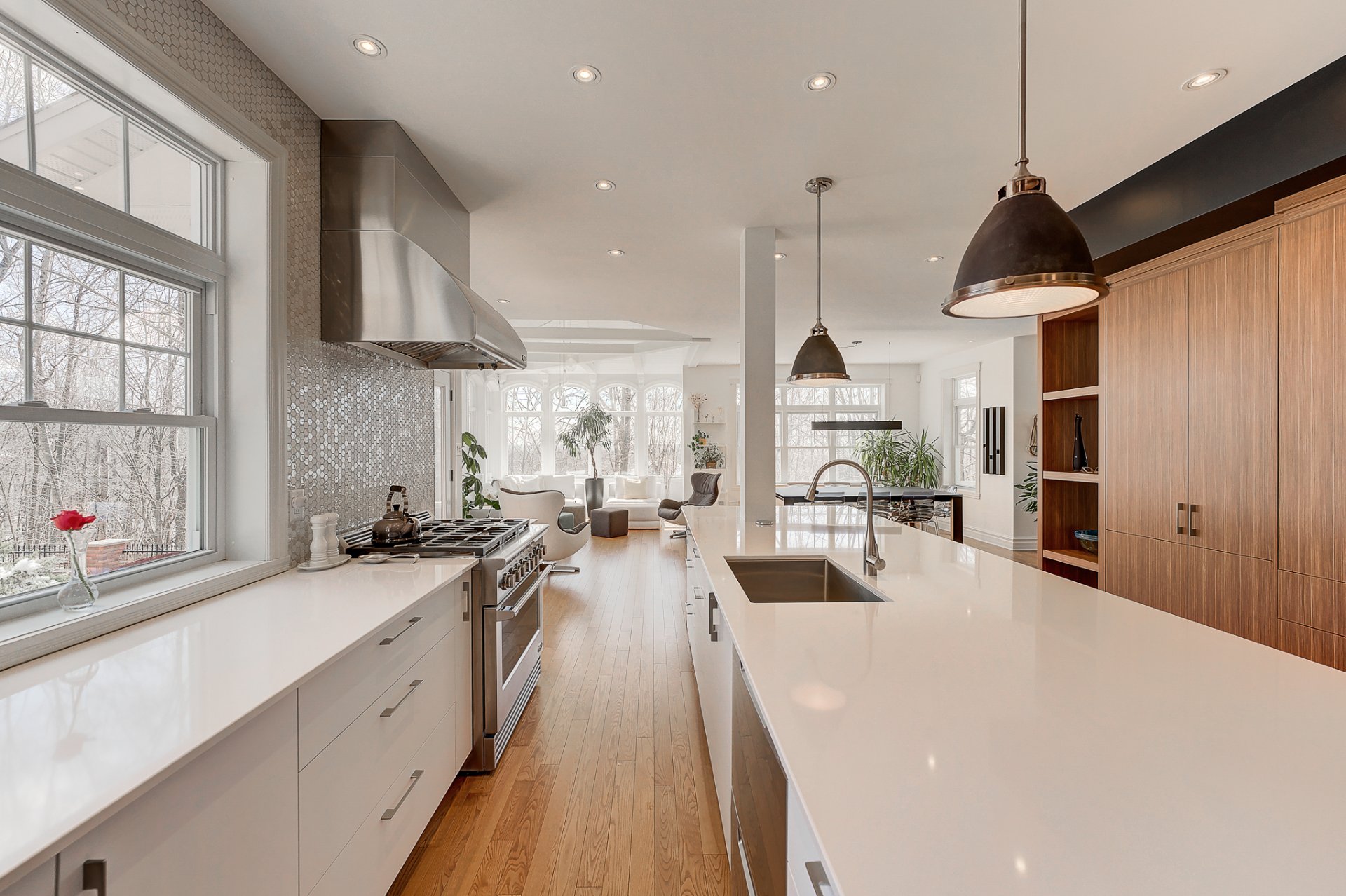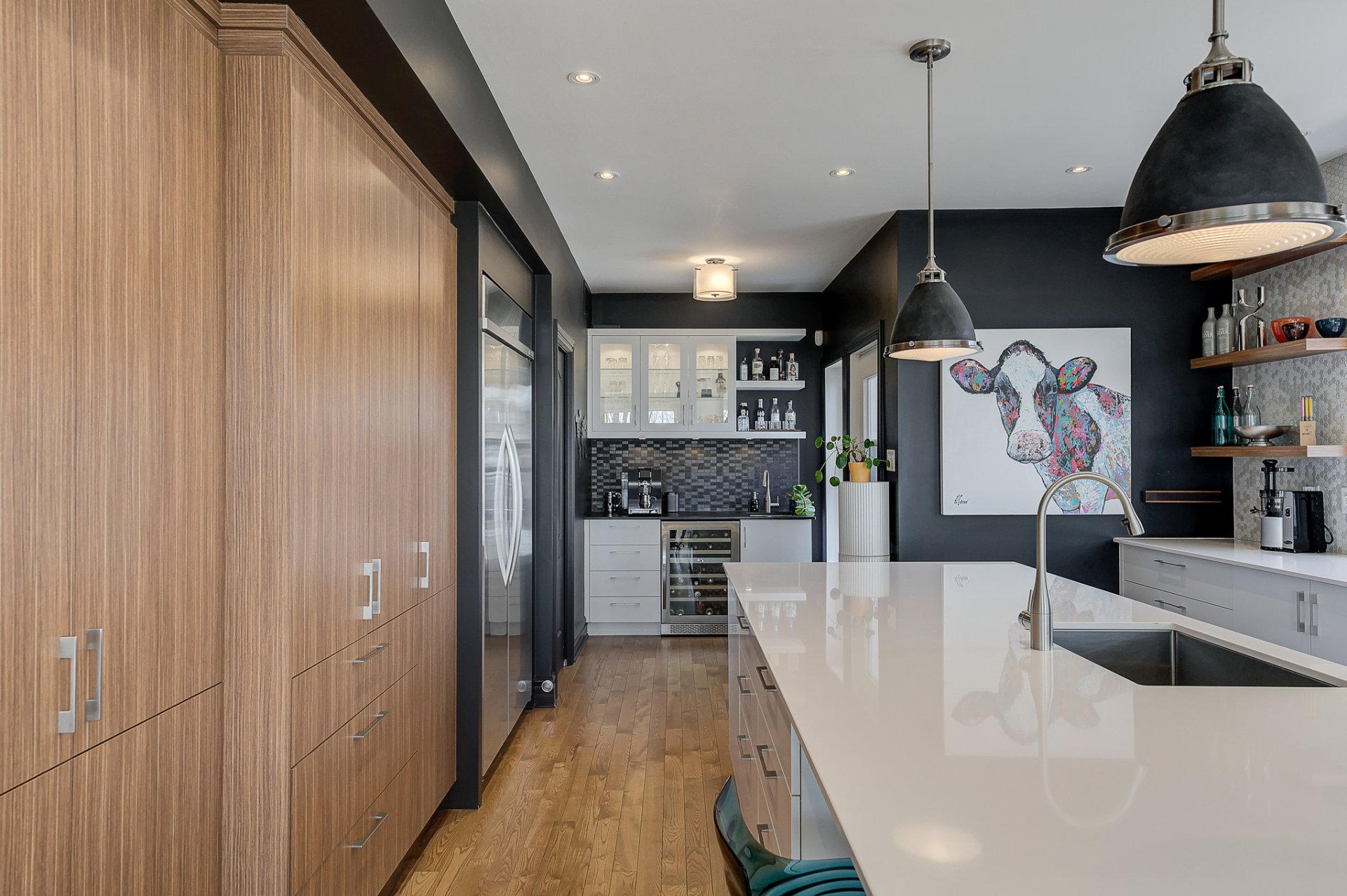 - Magnifique cuisine avec un imposant ilôt, des électroménagers haut de gamme, un coin café avec lavabo, unn réfrigérateur à vin et un pratique garde-manger de type walk-in;