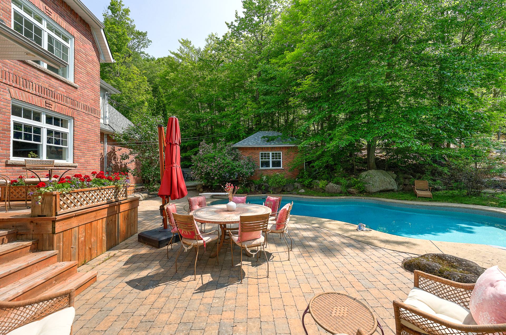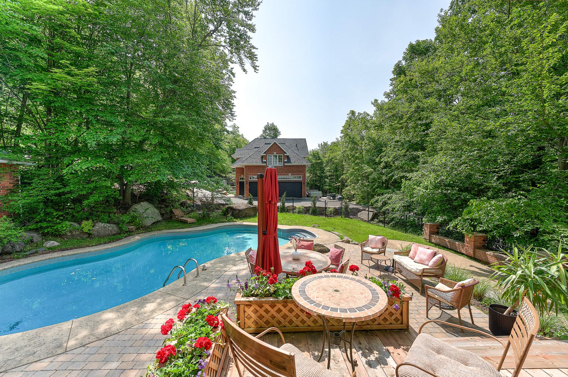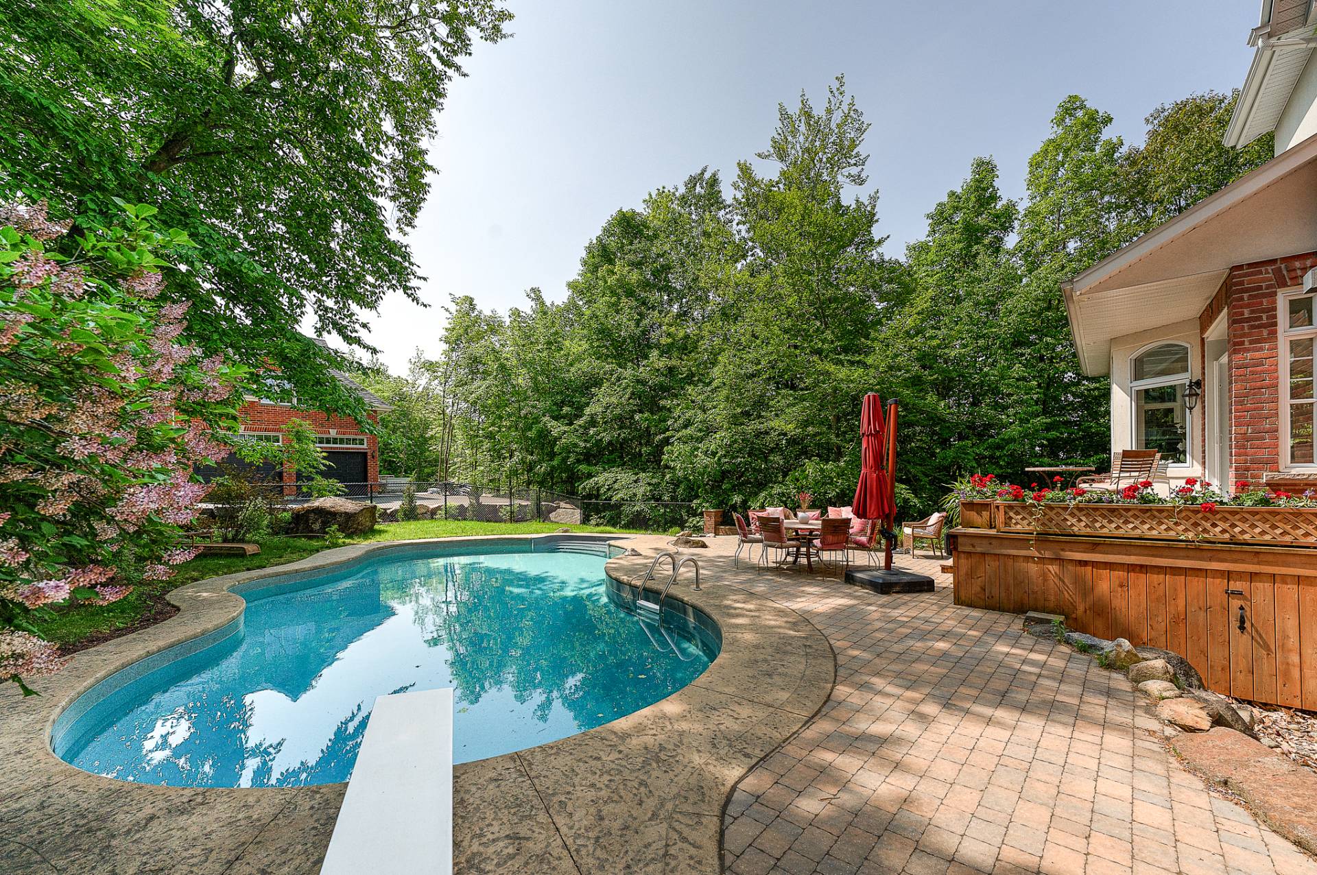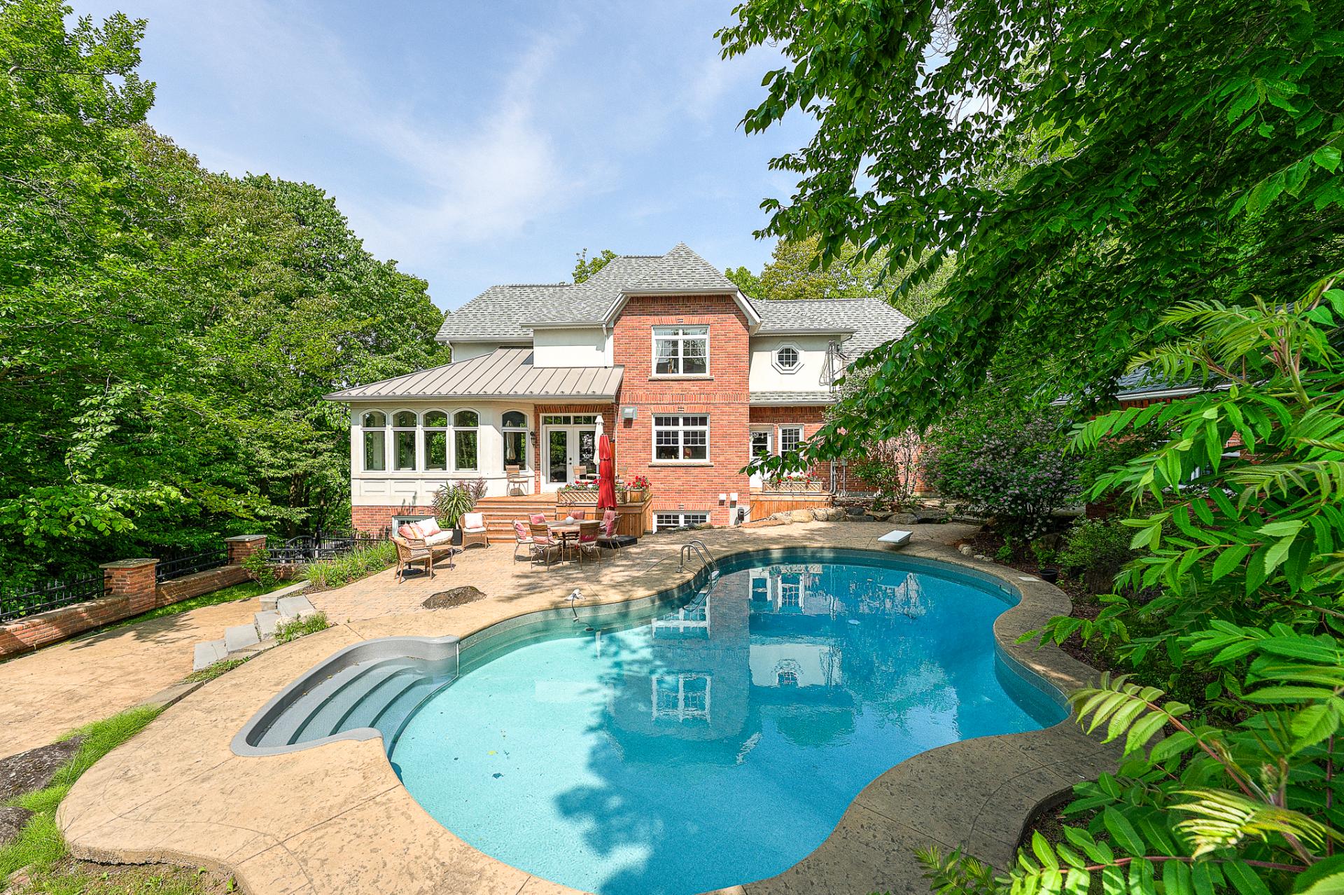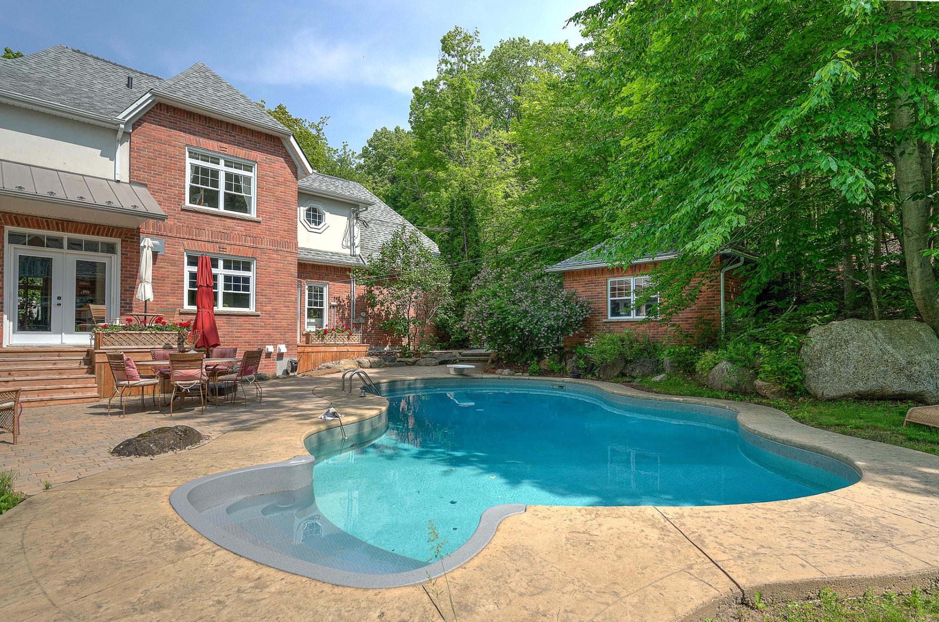 Magnifique terrain avec piscine creusée, chauffée et système au sel, grande terrasse, aucun voisin à l'arrière!