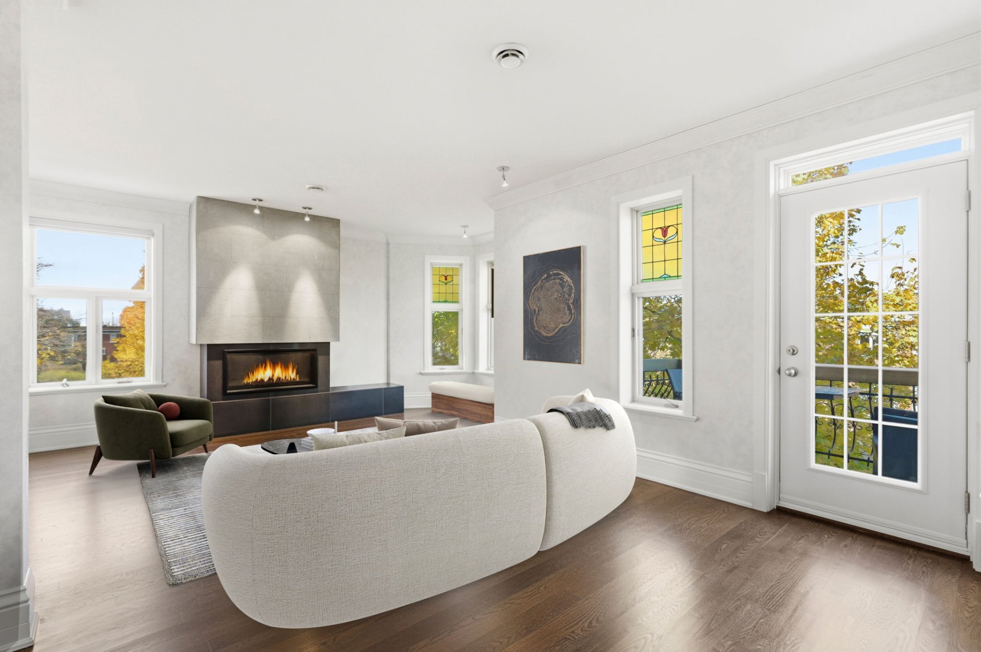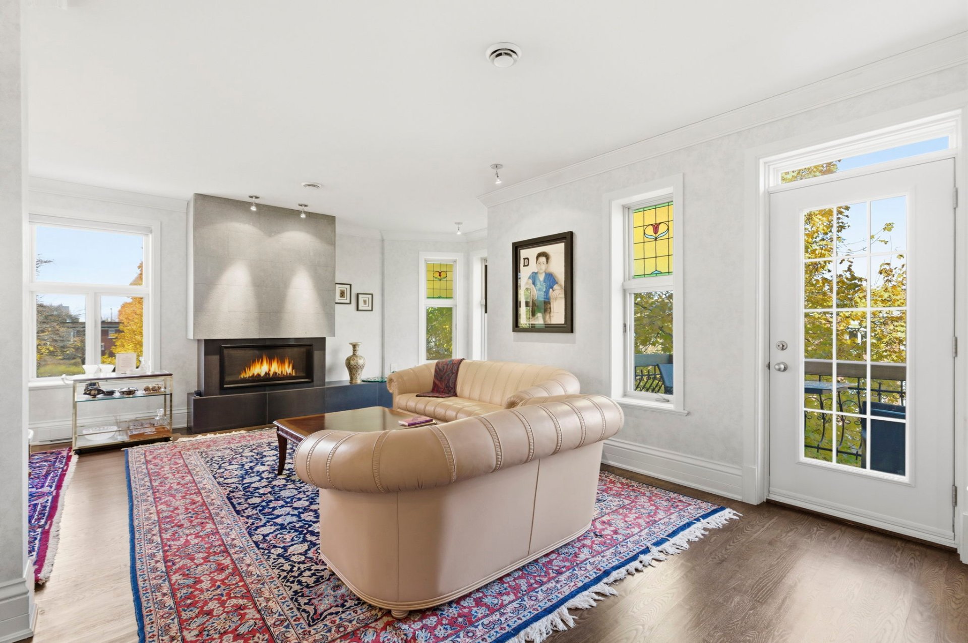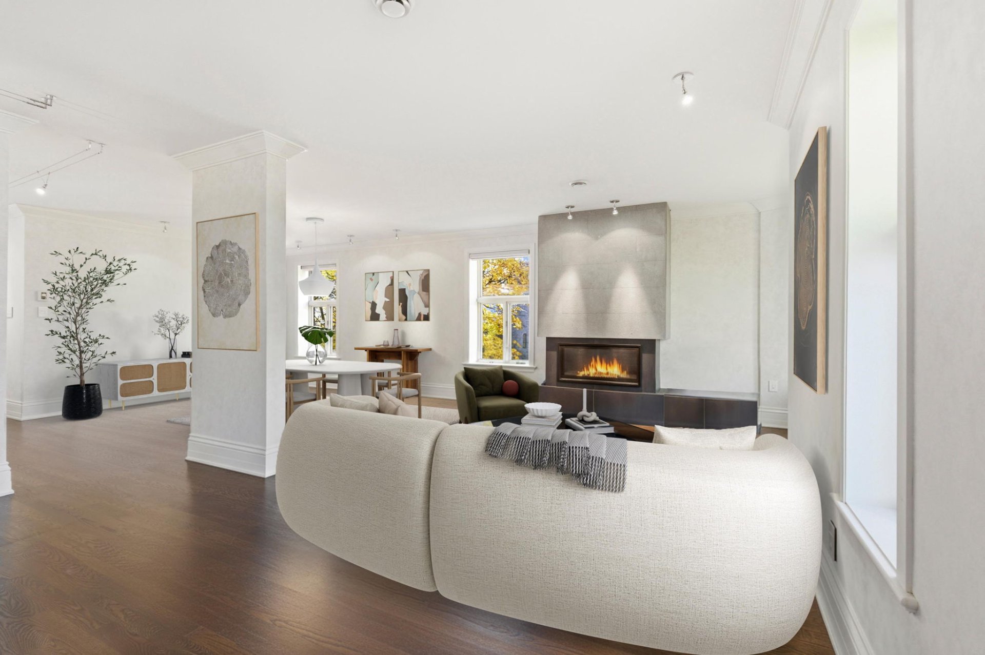 -Accès direct à une immense terrasse privée offrant une vue imprenable et dégagée sur le mont Royal, idéale pour des réceptions élégantes ou des matinées sereines