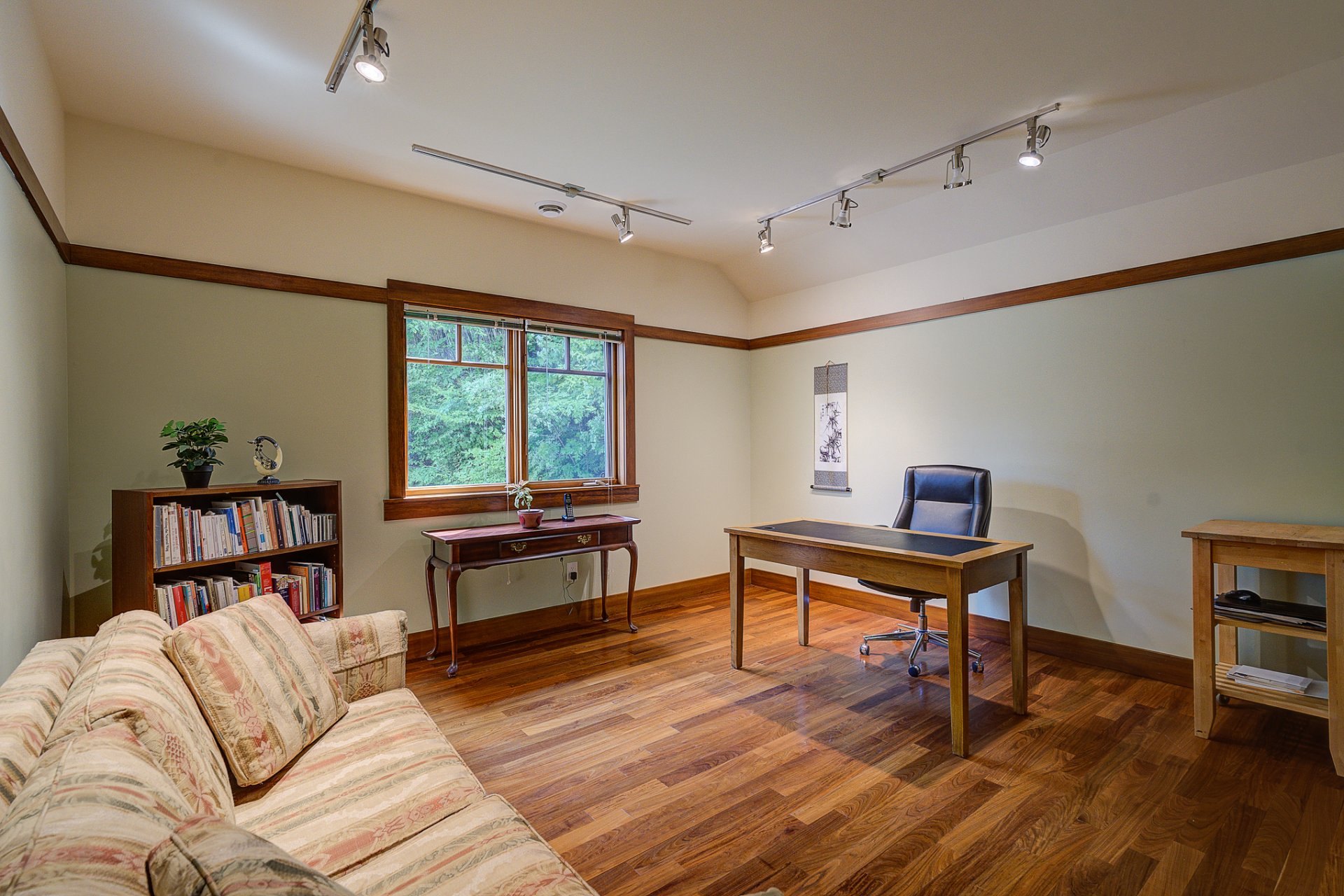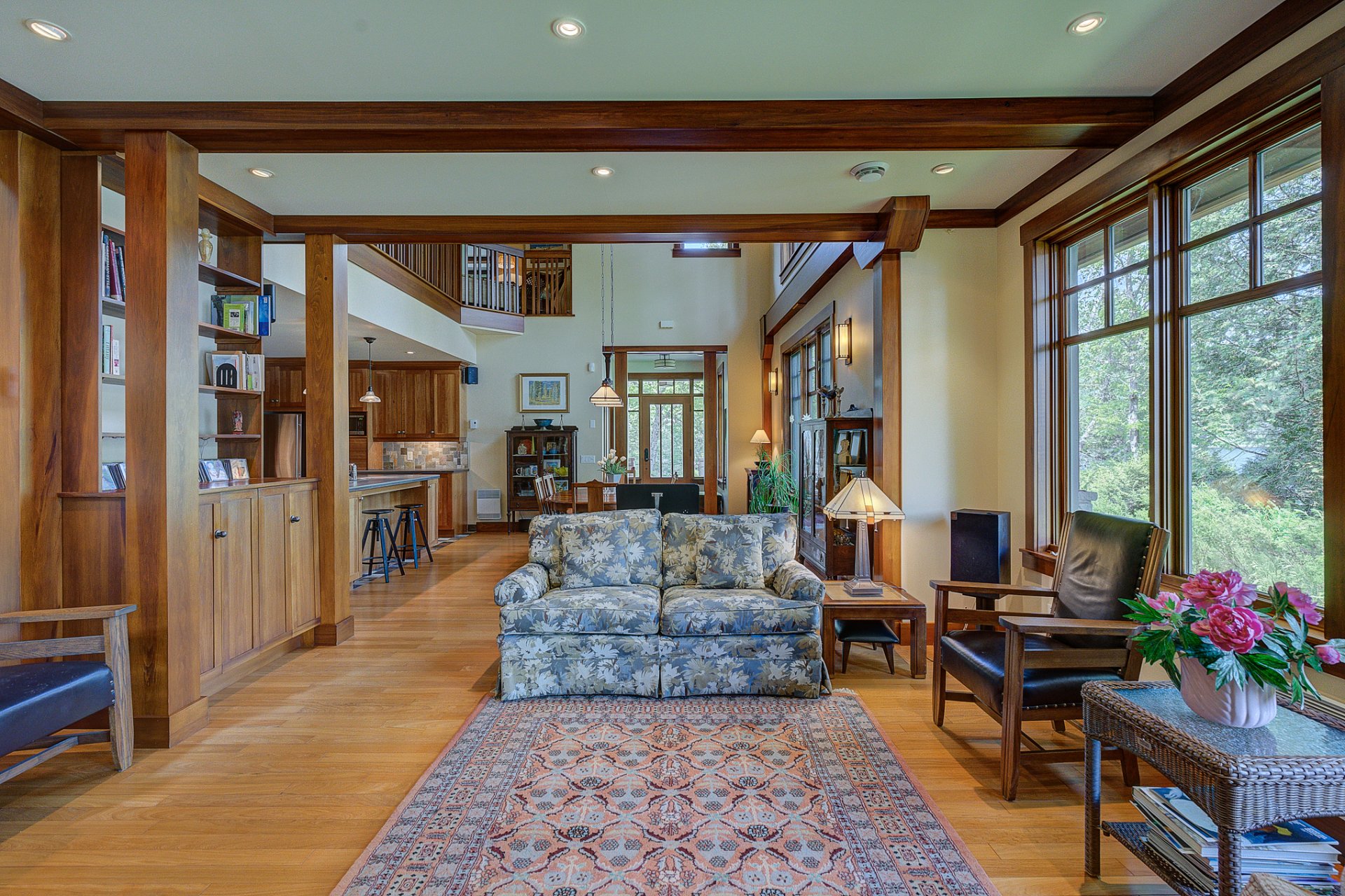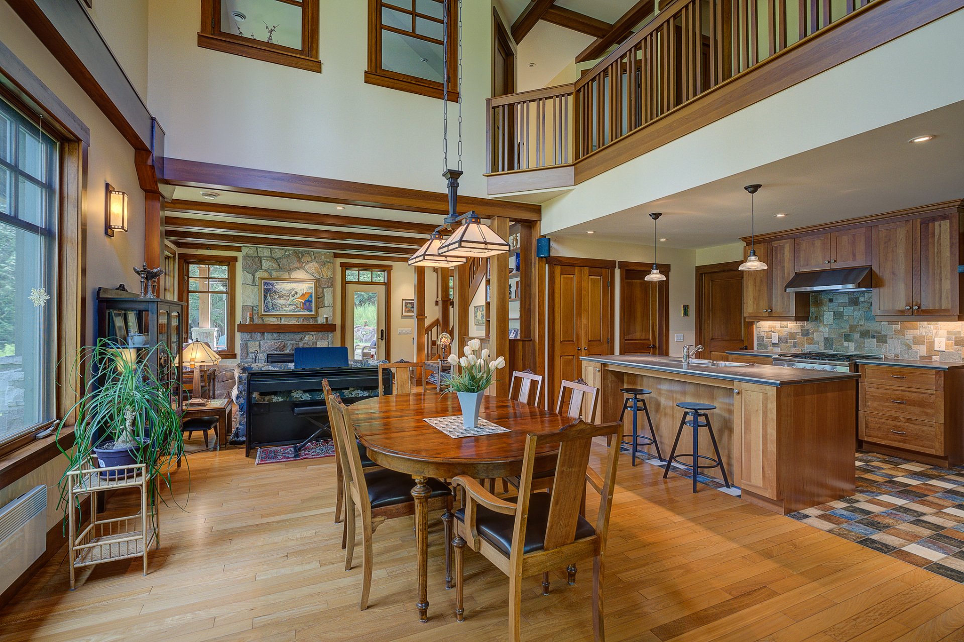 Dès votre arrivée, vous serez séduit par les espaces lumineux et aérés, avec un plafond cathédrale qui crée une sensation d'espace et de liberté. La maison dispose d'un vaste salon avec foyer au bois, d'une élégante salle à manger et d'une cuisine conviviale, idéale pour les repas en famille ou entre amis. Une belle suite parentale, 5 chambres à coucher en tout, ainsi qu'un bureau-bibliothèque apportent confort et fonctionnalité.