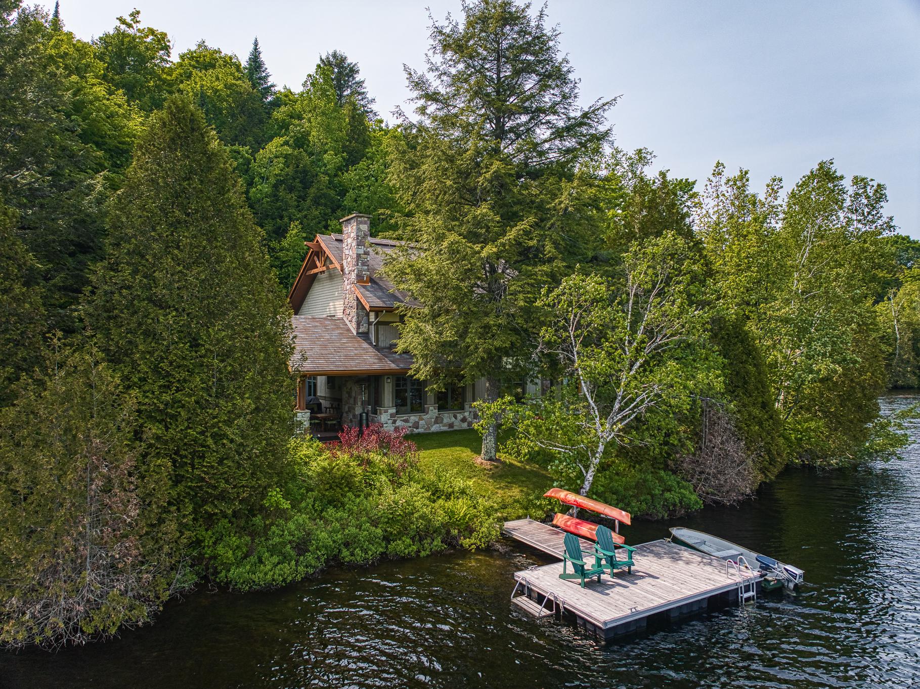 Magnifique maison située au bord de l'eau construite en 2006-2007, de style Arts & Crafts.. Cette maison offre des espaces lumineux avec un plafond cathédrale, salon avec foyer au bois, salle à manger et une cuisine conviviale. Elle comprend 5 chambres, dont une suite parentale, 2 salles de bain et 1 salle d'eau. Terrasse couverte, garage double. Située sur 2 lacs, dont le lac Farmer (navigable) façade de 390 pieds et le lac Lamarche façade de 150 pieds. Un cadre idyllique pour ceux en quête de sérénité. Venez découvrir un domaine exceptionnel. opportunité de vivre dans un environnement paisible. Possibilité d'acheter des terrains adjacents.