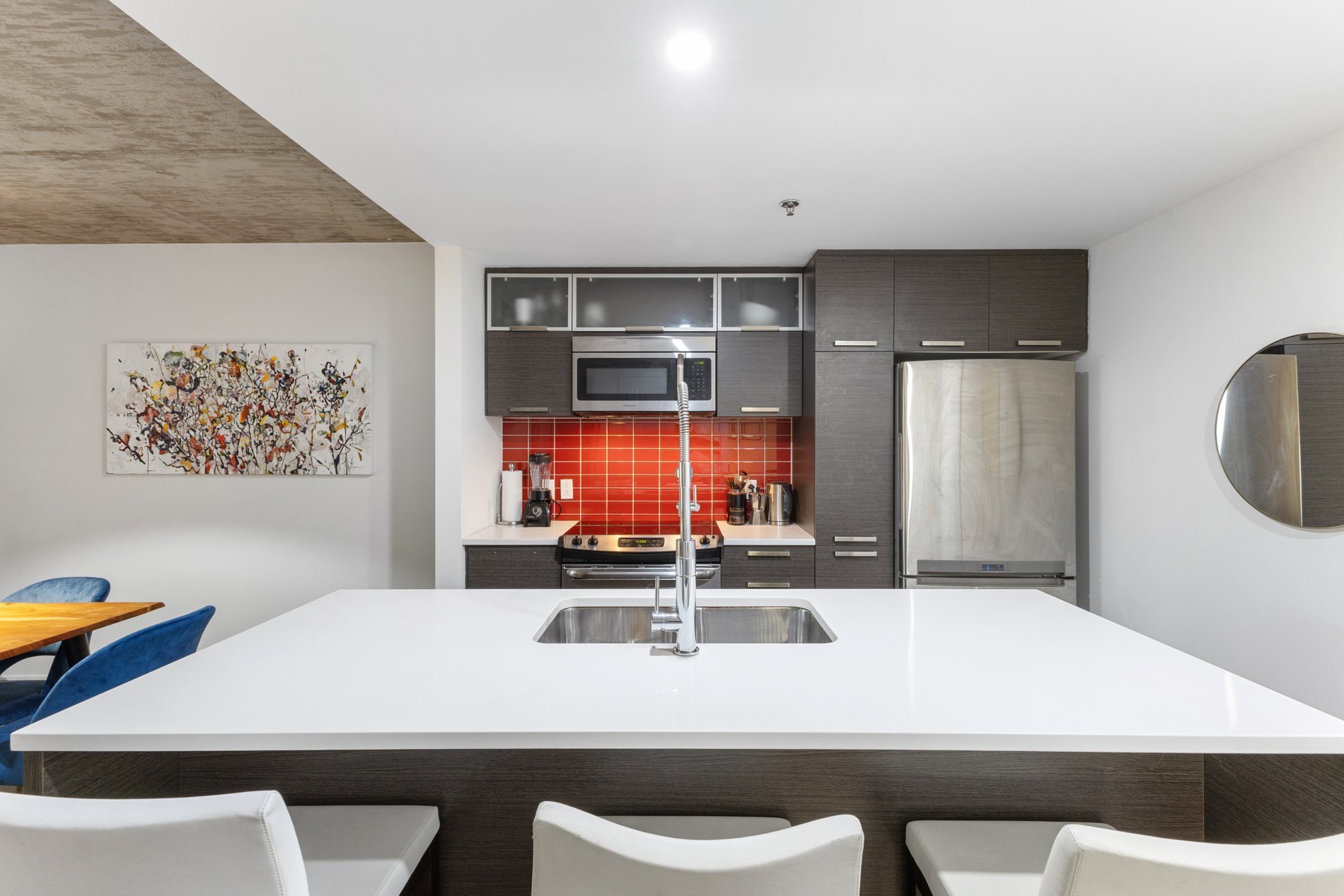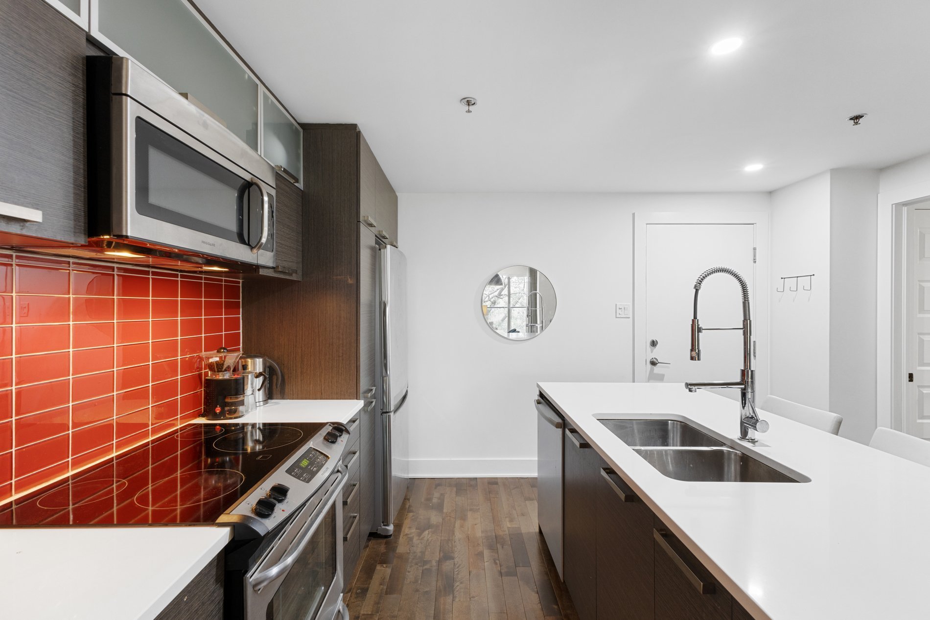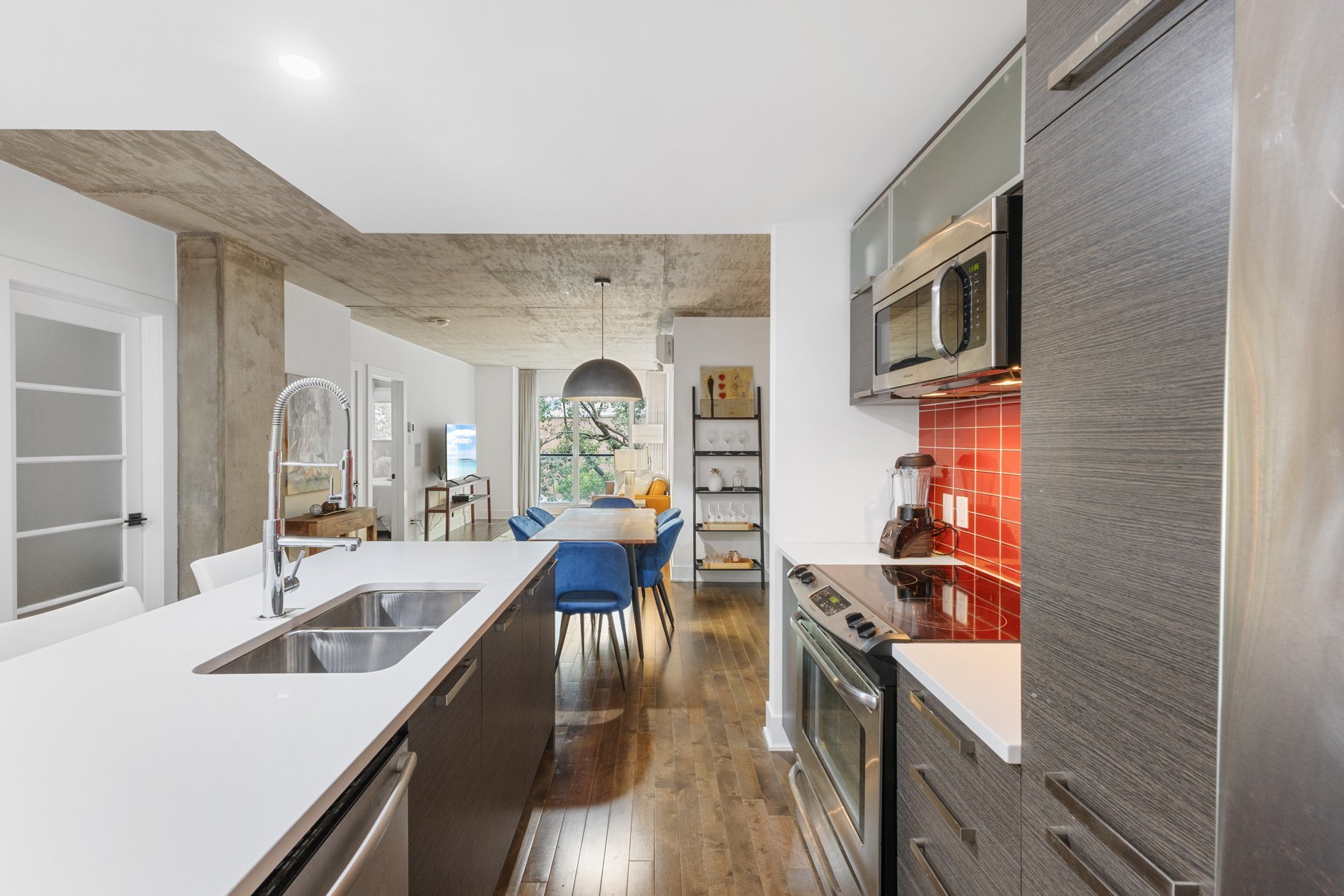 * À proximité des autoroutes, des parcs pour chiens, du canal de Lachine et du Vieux-Montréal, du centre-ville, des épiceries, des restaurants, des cafés et de nombreuses autres commodités ;