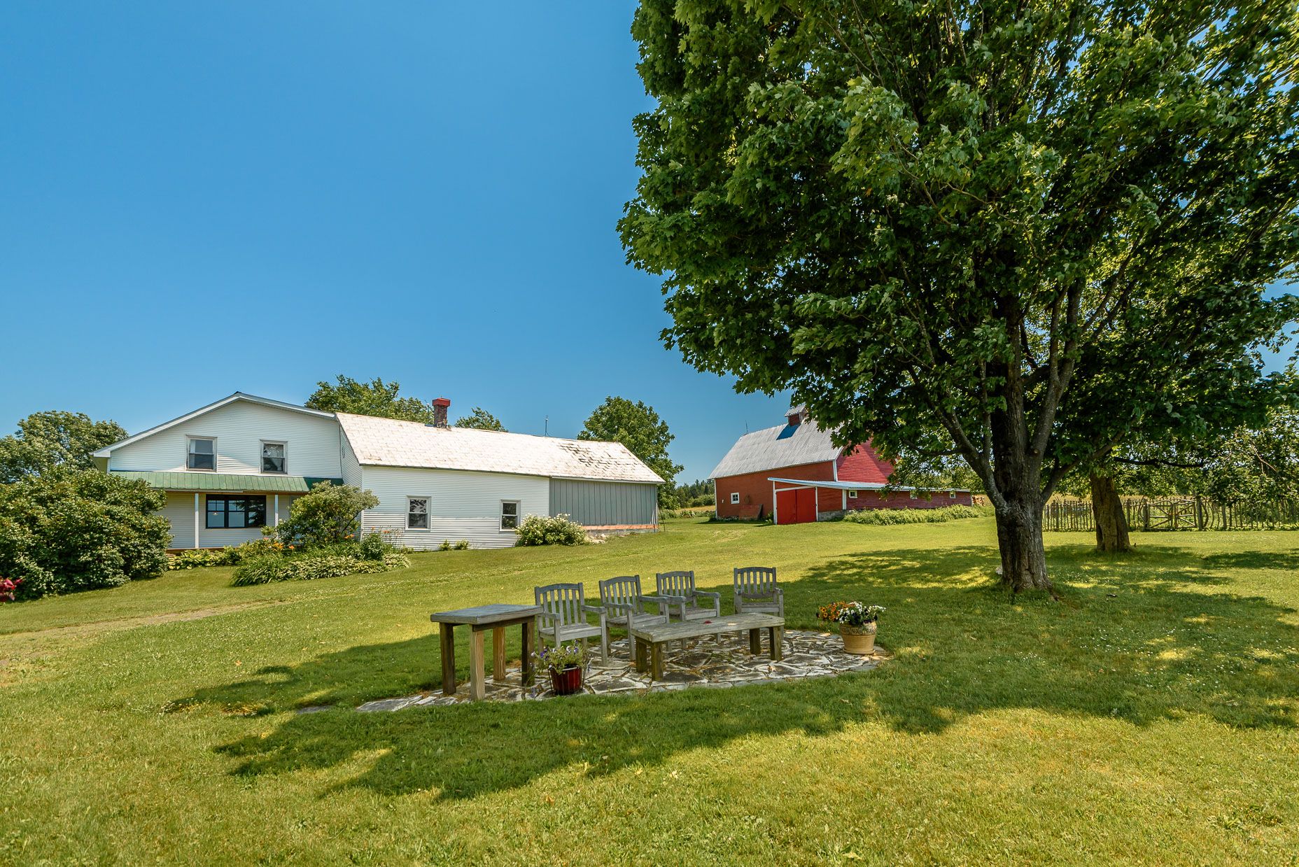 Des bâtiments connexes et des possibilités multiples. En plus de la maison principale, la propriété comprend plusieurs bâtiments annexes, dont deux grandes granges et une maison secondaire. Cette dernière permet un deuxième droit de reconstruction, offrant ainsi des possibilités intéressantes pour les futurs propriétaires. Que ce soit pour des projets agricoles ou pour accueillir des invités, ces bâtiments ajoutent une valeur considérable à la propriété.