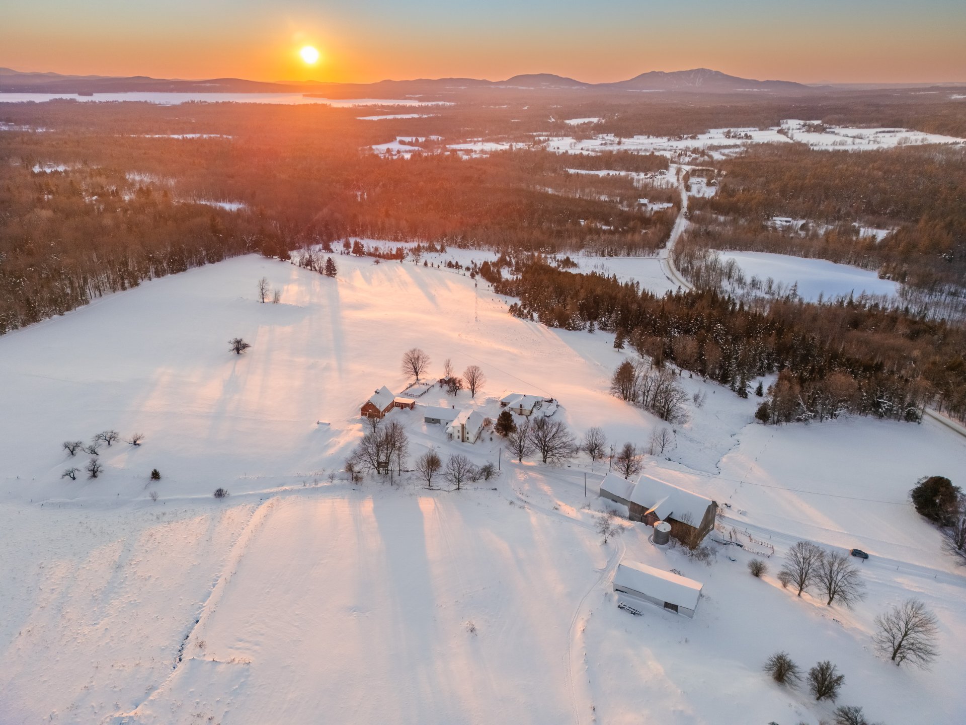 L'orientation de la propriété, plein ouest, est tout simplement magique. Elle permet d'admirer des couchers de soleil spectaculaires qui transforment le ciel en un véritable tableau vivant chaque soir. De plus, les vues sur les montagnes environnantes et le lac Brome sont à couper le souffle, ajoutant une touche de magie à cet endroit déjà enchanteur.