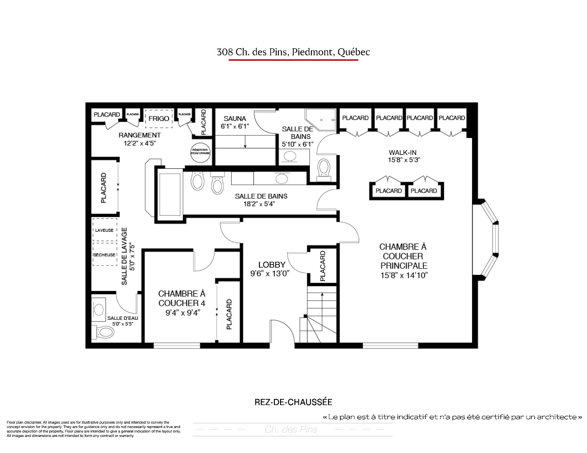 Magnifique chalet au charme vintage avec portail privé, situé dans un secteur paisible de Piedmont sur un terrain boisé de plus de 53 000 pi² avec vue sur les montagnes. Rez-de-jardin avec hall d'entrée, 2 chambres dont la principale avec walk-in et salles de bains attenantes, sauna, salle d'eau et lavage. À l'étage, poutres apparentes, salon avec foyer de pierre, cuisine fonctionnelle et accès aux terrasses. Piscine creusée. À proximité des pentes, services et axes routiers.