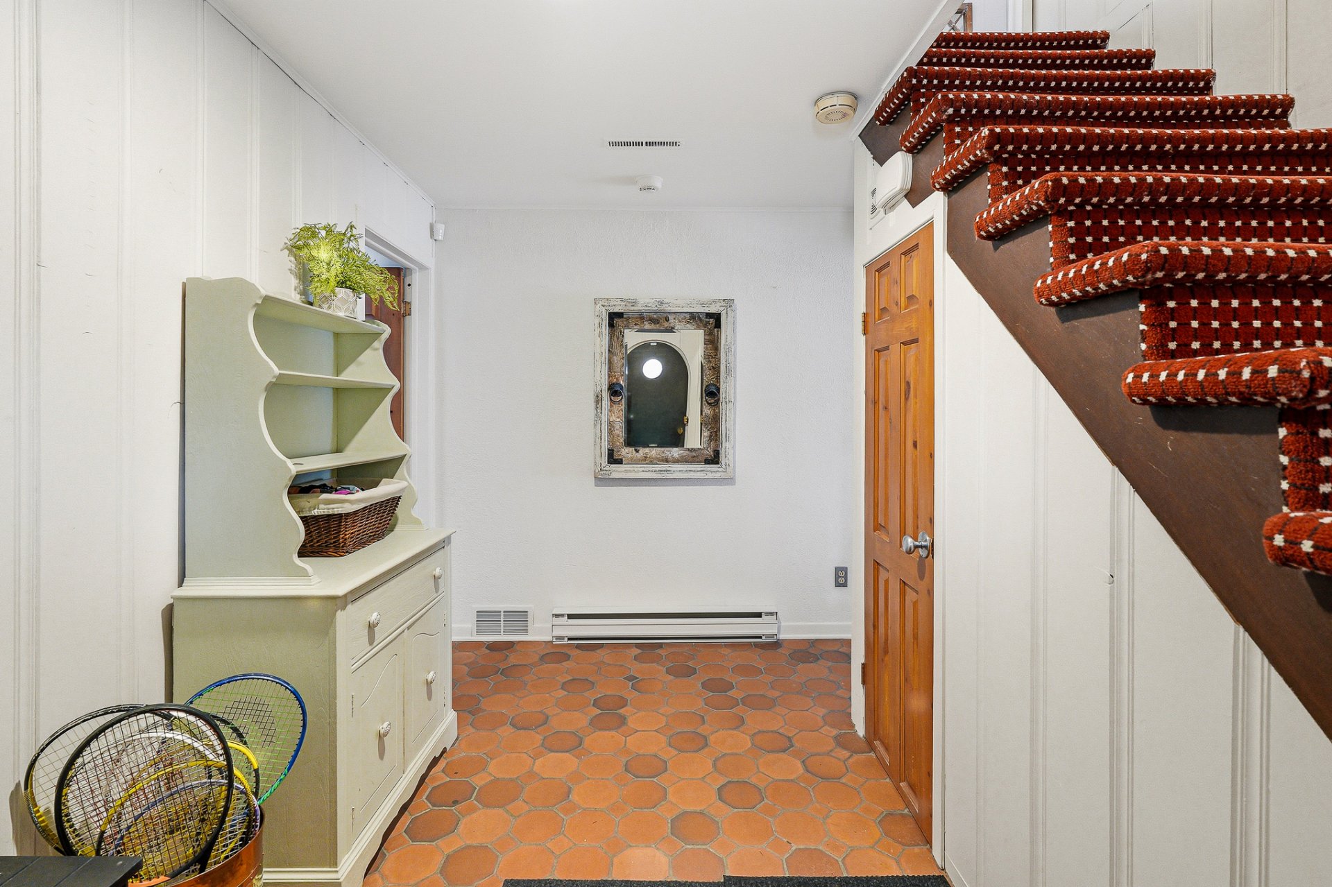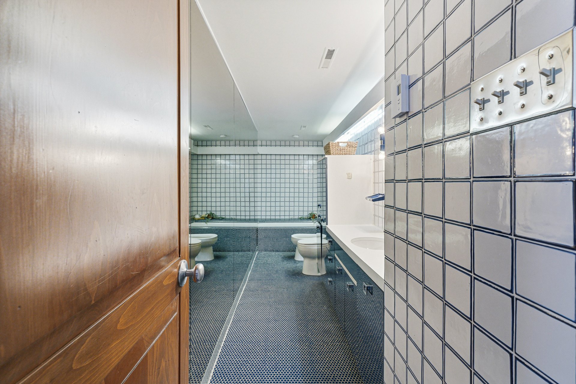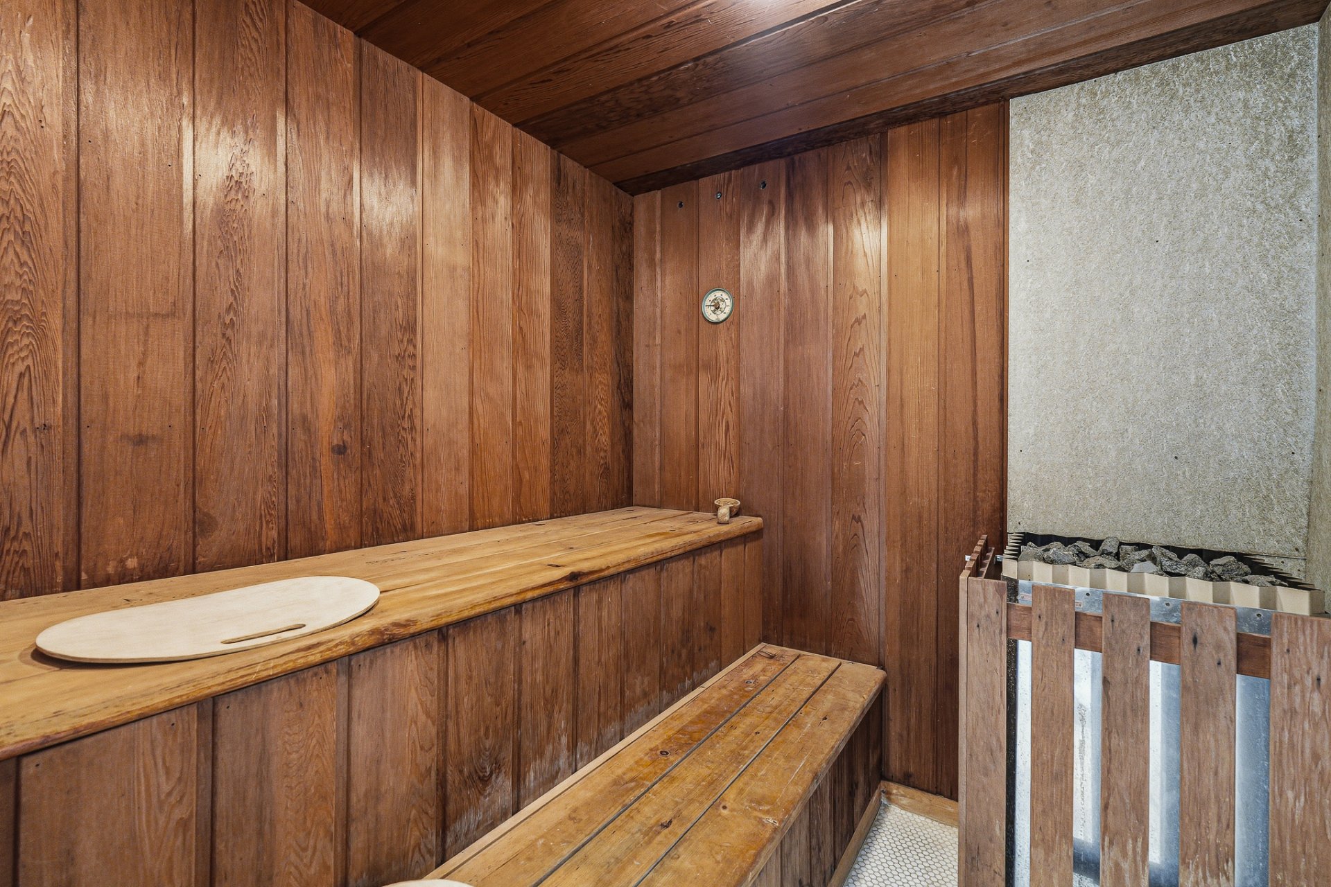 L'entrée principale se fait au rez-de-jardin, où un hall d'entrée vous accueil avec rangement. Deux chambres s'y retrouvent, dont la chambre principale avec walk-in et deux salle de bains attenante dont une avec sauna, une salle d'eau et une salle de lavage et espace de rangement.