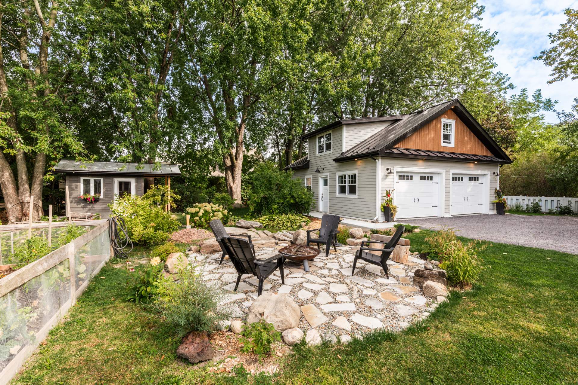 + Immense cour arrière aménagée : arbres matures, spa, grande terrasse, coin feu d'été, cabanons.