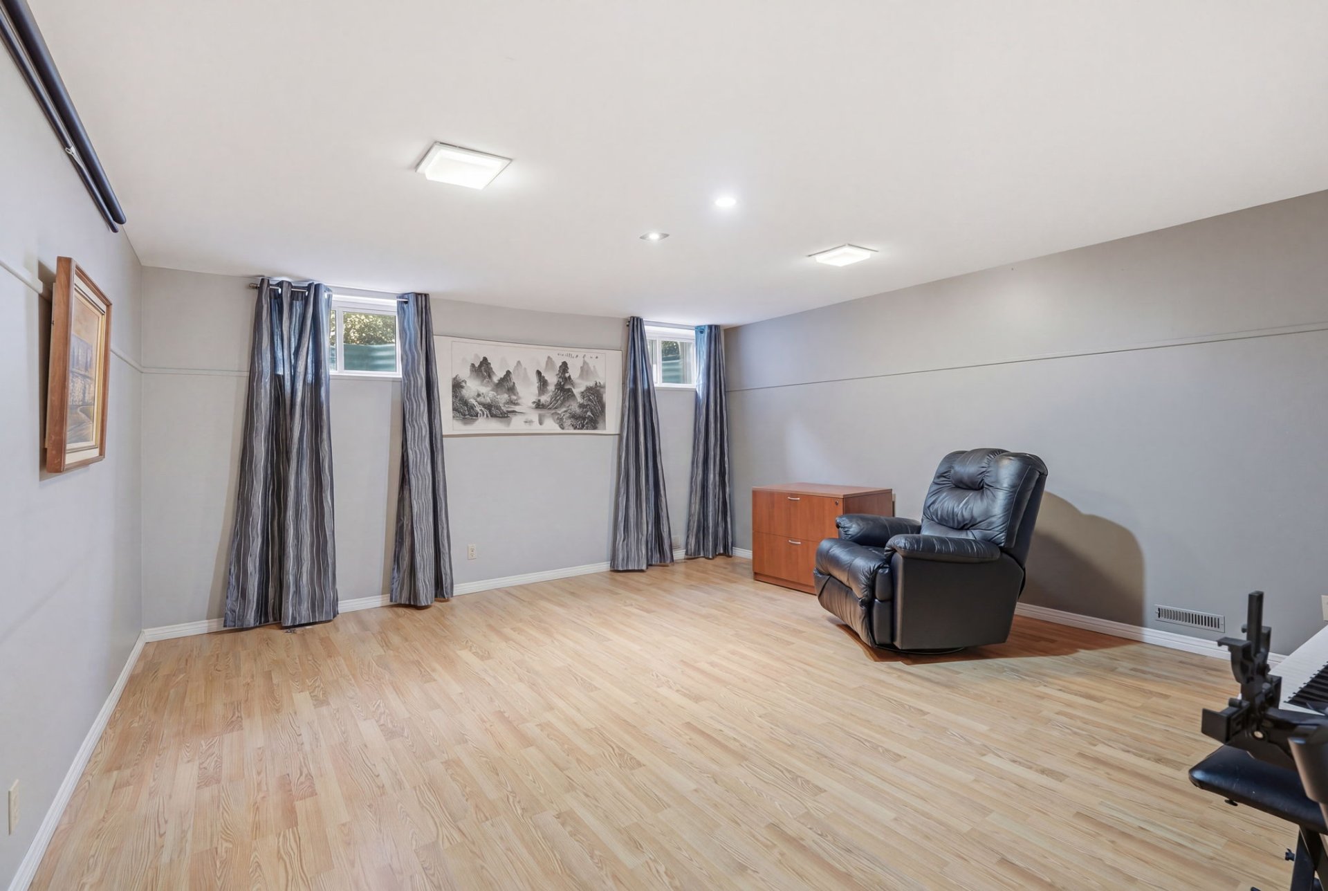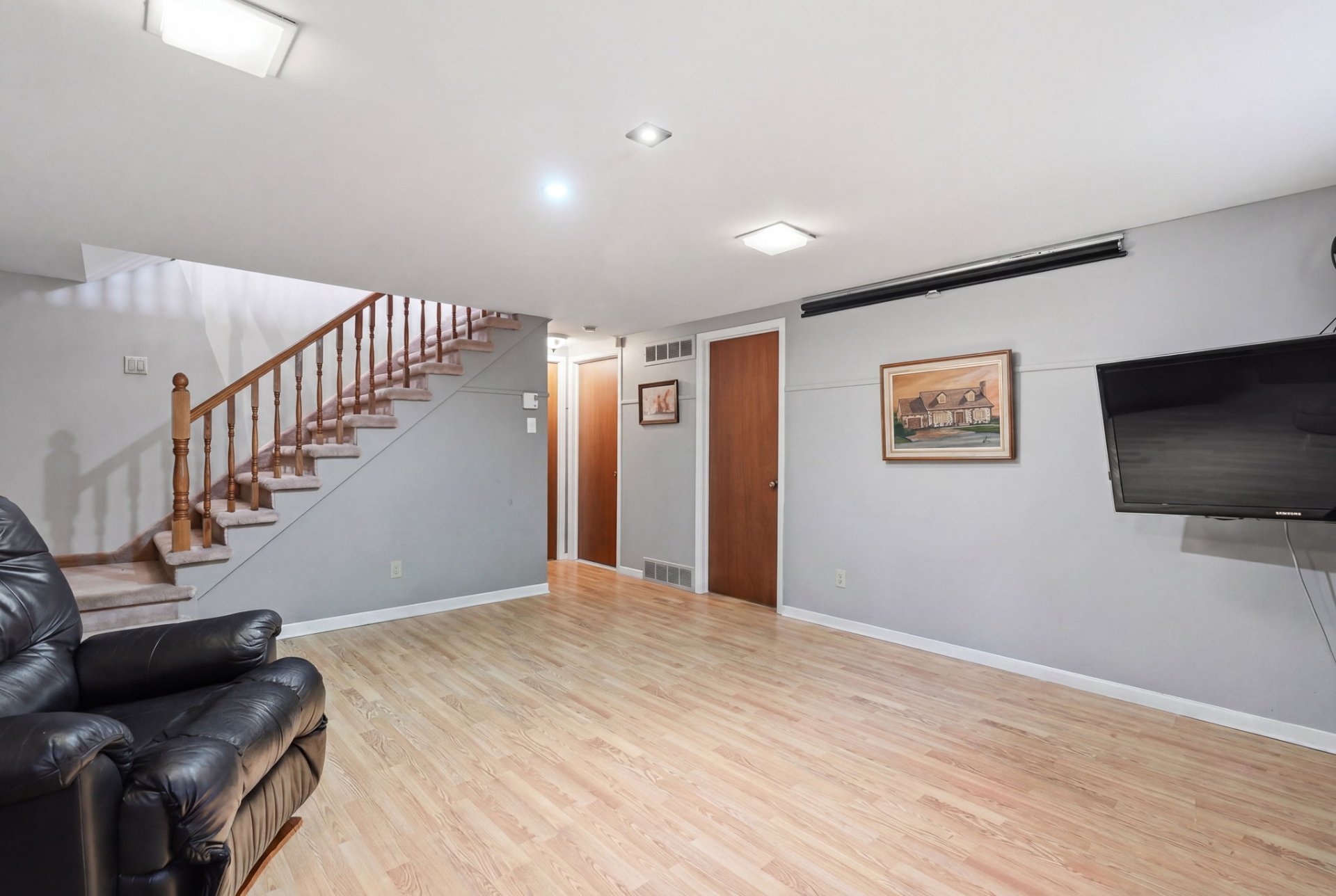 Le sous-sol entièrement aménagé offre beaucoup de possibilités : salle familiale, chambre supplémentaire, bureau ou salle de jeux, en plus d'une salle de bains. Un atelier et une chambre froide viennent compléter l'espace.