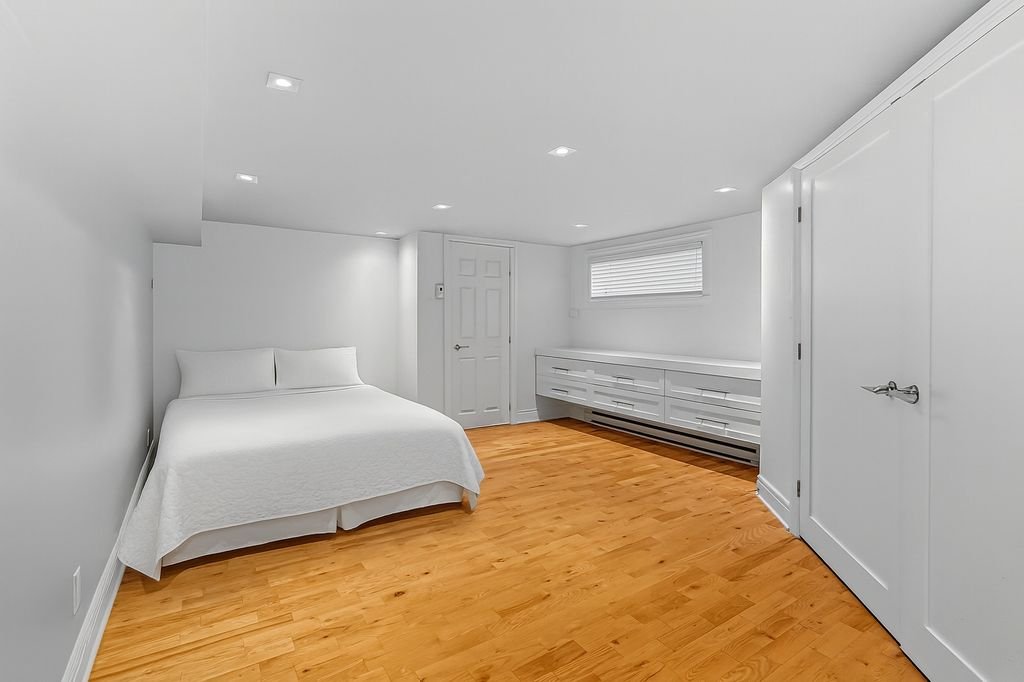 Dès l'entrée, cette unité se distingue d'une bigénération traditionnelle grâce à ses hauts plafonds et sa généreuse fenestration. Le rez-de-chaussée comprend deux chambres, tandis que le sous-sol accueille deux autres chambres spacieuses, dont une avec salle de bain attenante, ainsi qu'une grande salle familiale. L'accès à la maison principale peut se faire aussi bien par le rez-de-chaussée que par le sous-sol. Une cour clôturée assure une parfaite intimité en séparant son espace de celui de la cour principale.