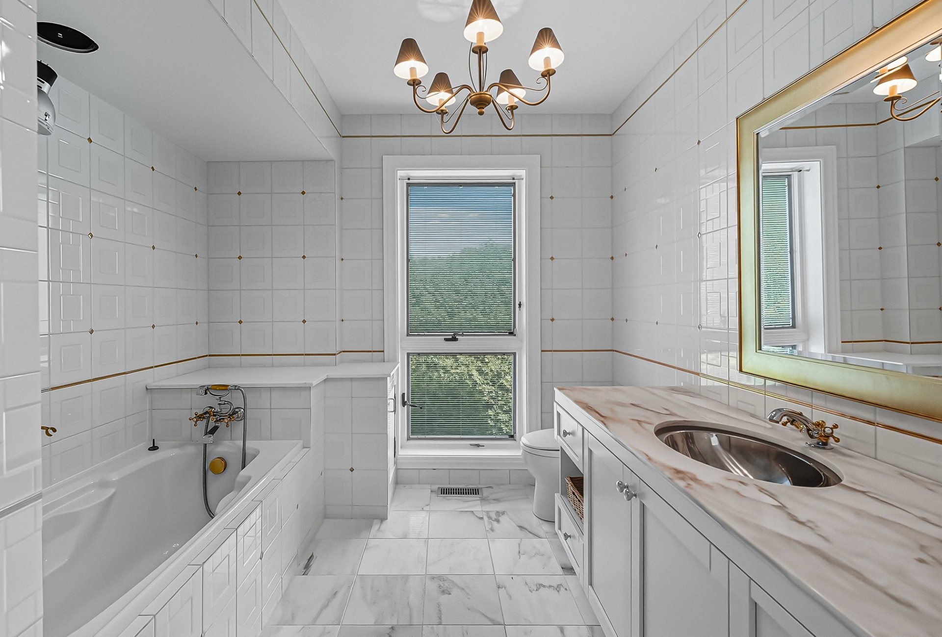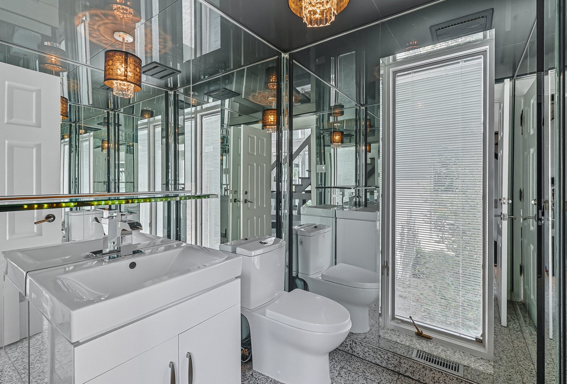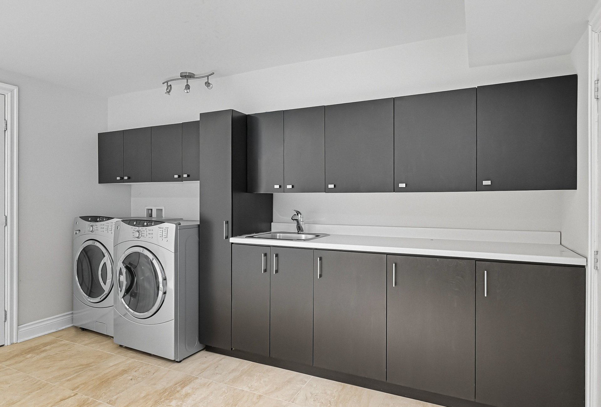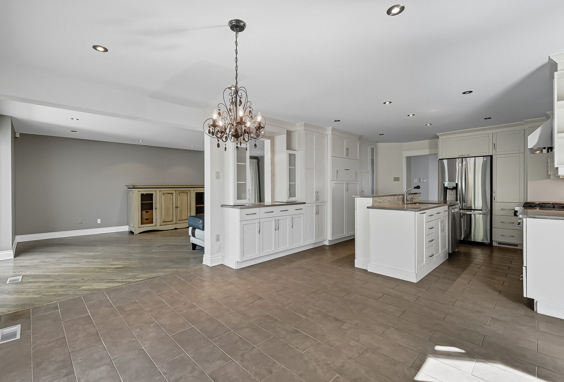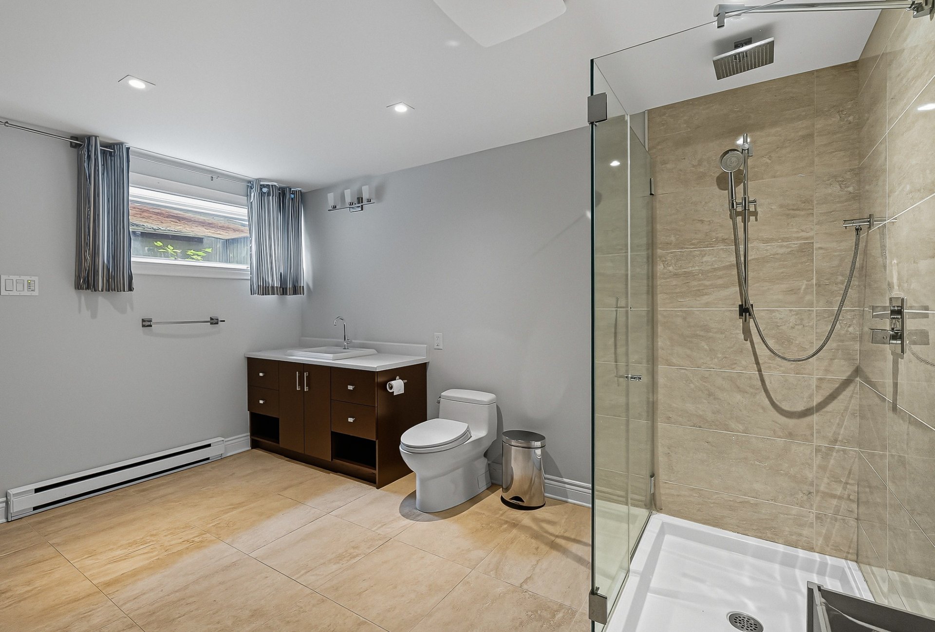 Le sous-sol propose quant à lui une vaste salle familiale avec armoires murales intégrées et une sixième chambre en suite, avec salle de bain attenante. Garage double avec fenêtre et entrée indépendante sur le coté de la maison.