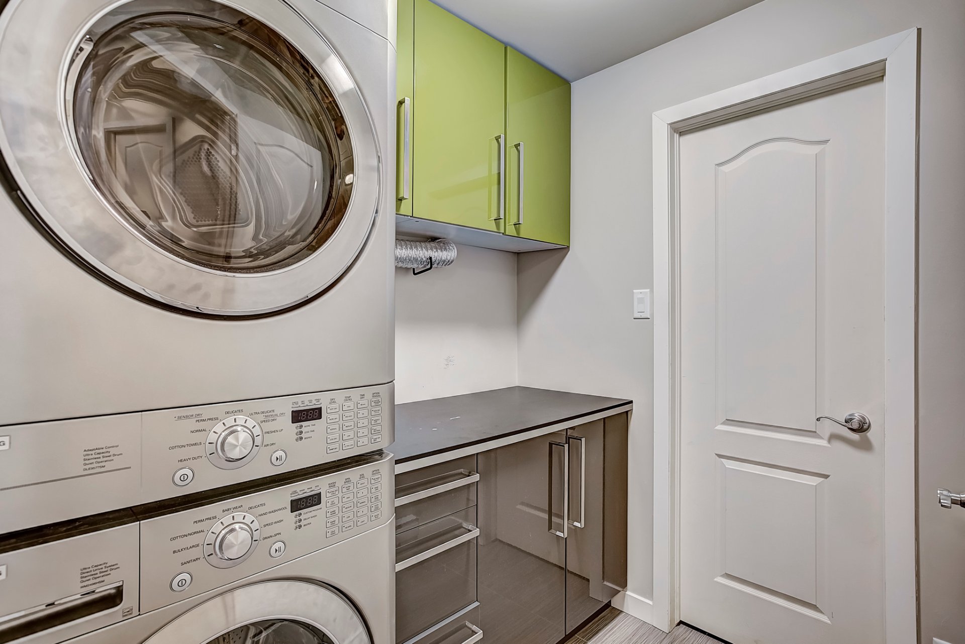 - Réfrigérateur Gaggenau, table de cuisson Gaggenau, four encastré Jenn-Air, four à micro-ondes Jenn-Air, lave-vaisselle, laveuse, sécheuse, aspirateur central, luminaires, rideaux, tringles. Haut-parleurs encastrés et contrôle audio muraux avec deux amplificateurs sont inclus sans garantie quant à leur bon fonctionnement.