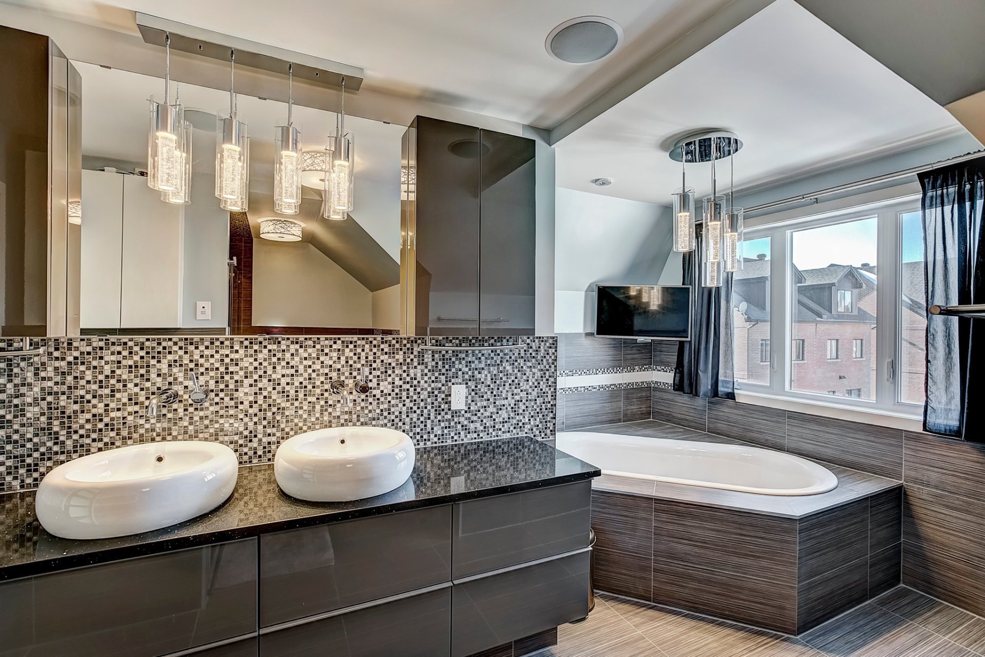 - L'ensemble du 3e étage est une luxueuse chambre principale avec ses deux walk-in et sa salle de bains haut de gamme.