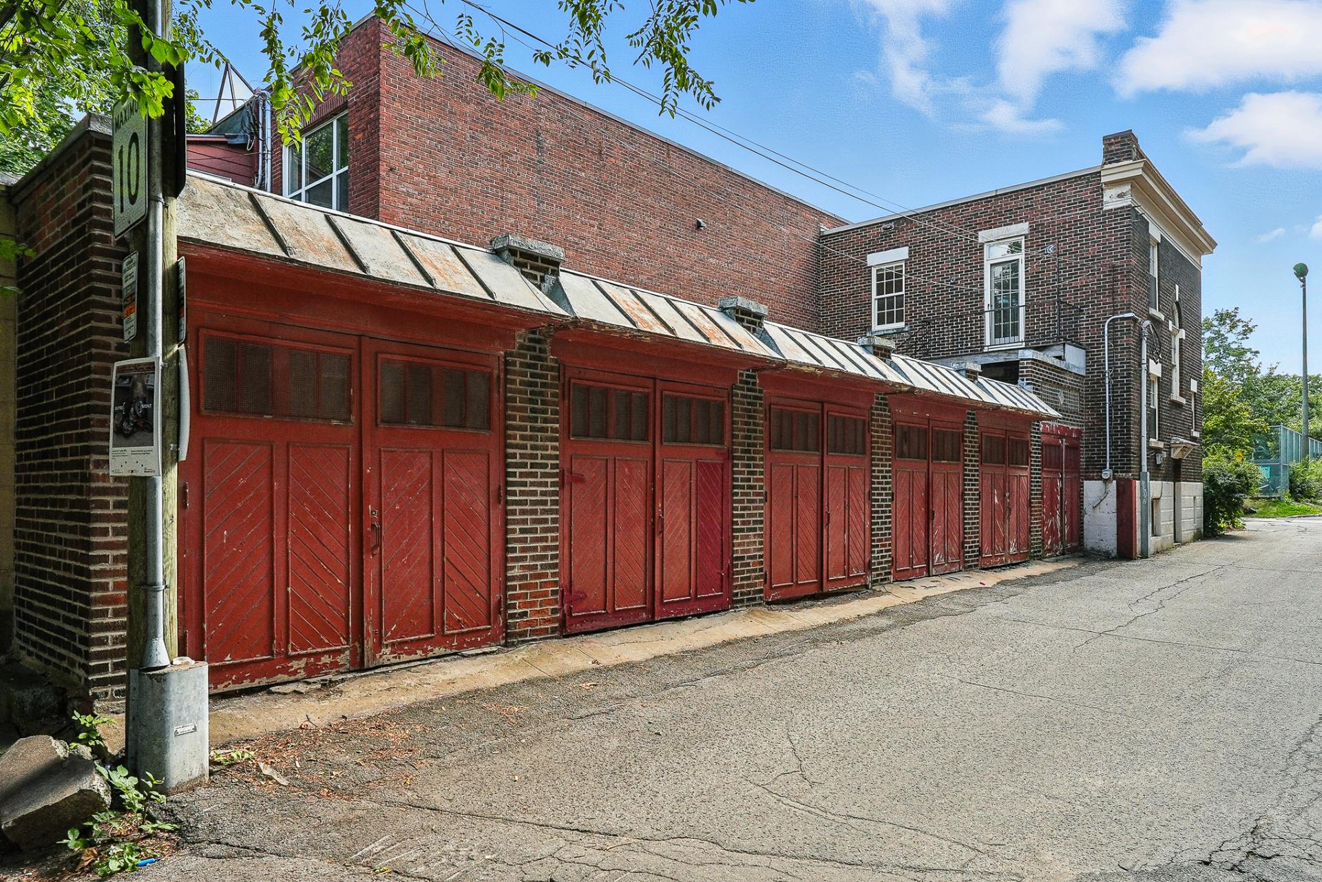 * 6 Garages à l'arrière de la propriété, accessible par la ruelle réservée aux résidants - 5 garages sont actuellement .
