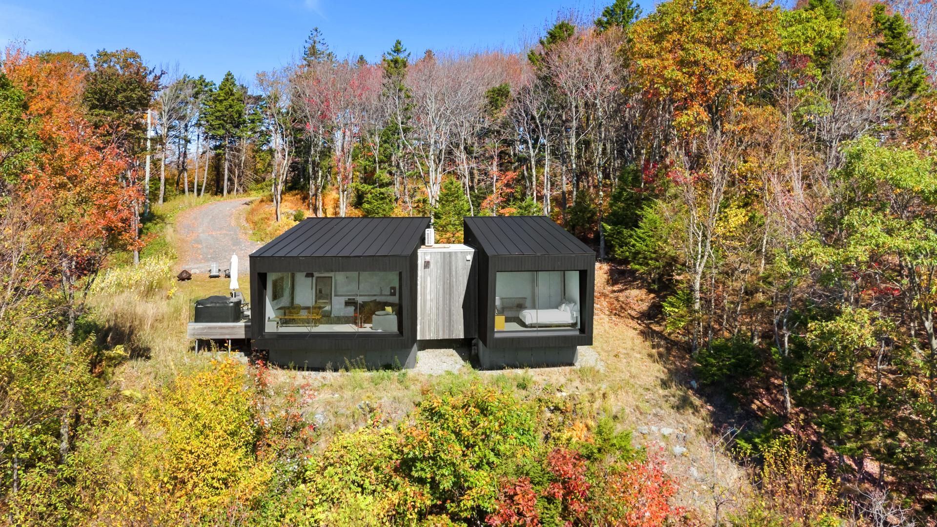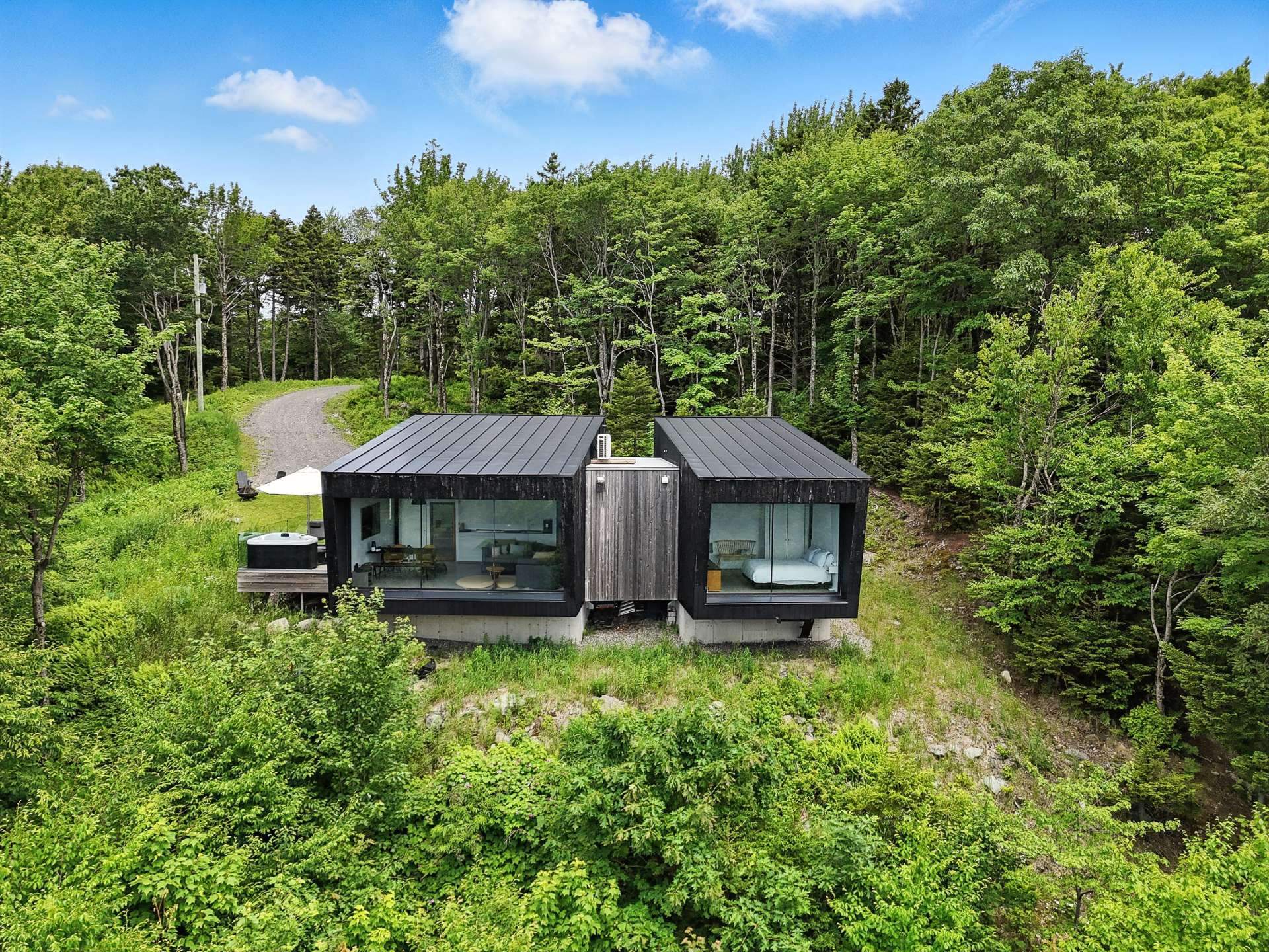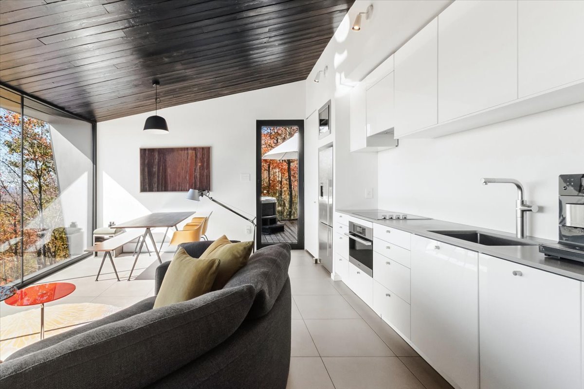Une résidence architecturale d'exception signée naturehumaine architecture. Un sanctuaire privé où le design contemporain rencontre la majesté des Cantons-de-l'Est. Chaque espace est pensé comme une suite hôtelière cinq étoiles, suspendue au-dessus du paysage.