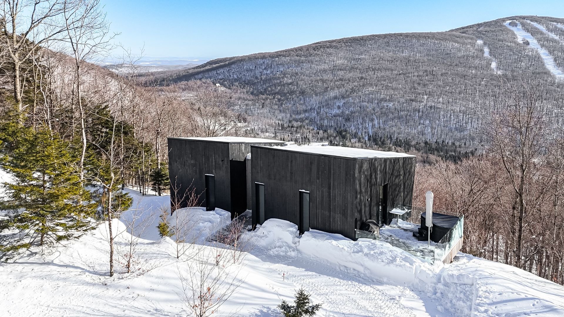 Perchée à flanc de montagne, cette maison signée naturehumaine architecture - nommée « La Binocle » pour ses deux volumes largement vitrés - offre un panorama spectaculaire sur le mont Glen. Située à 490 m d'altitude à Bolton-Ouest, au coeur des Cantons-de-l'Est, elle se trouve près des sentiers, vignobles, du Spa Bolton et du Mont Sutton : idéal pour les amateurs de plein air et d'art de vivre.Alliance réussie entre design contemporain, confort et qualité de vie. Actuellement exploitée en location à court terme, la propriété génère d'excellents revenus.