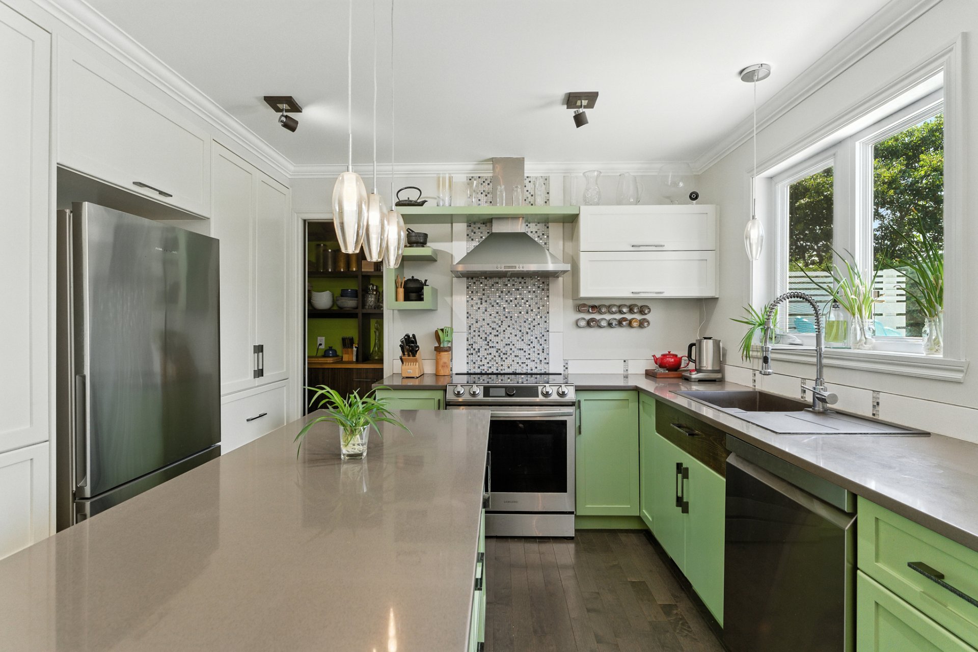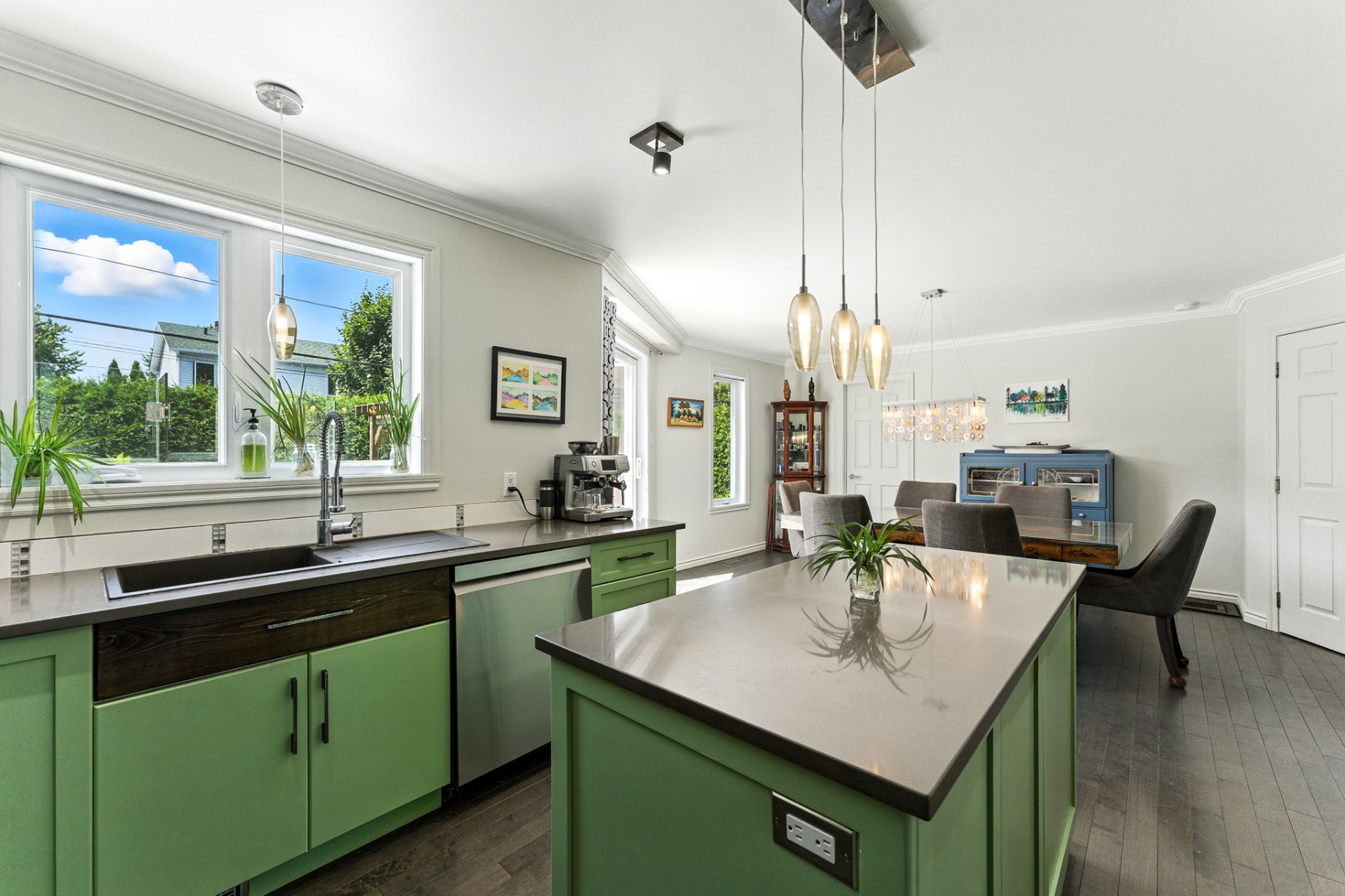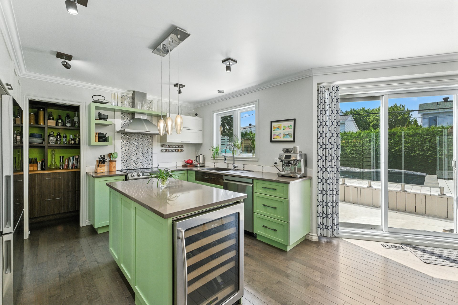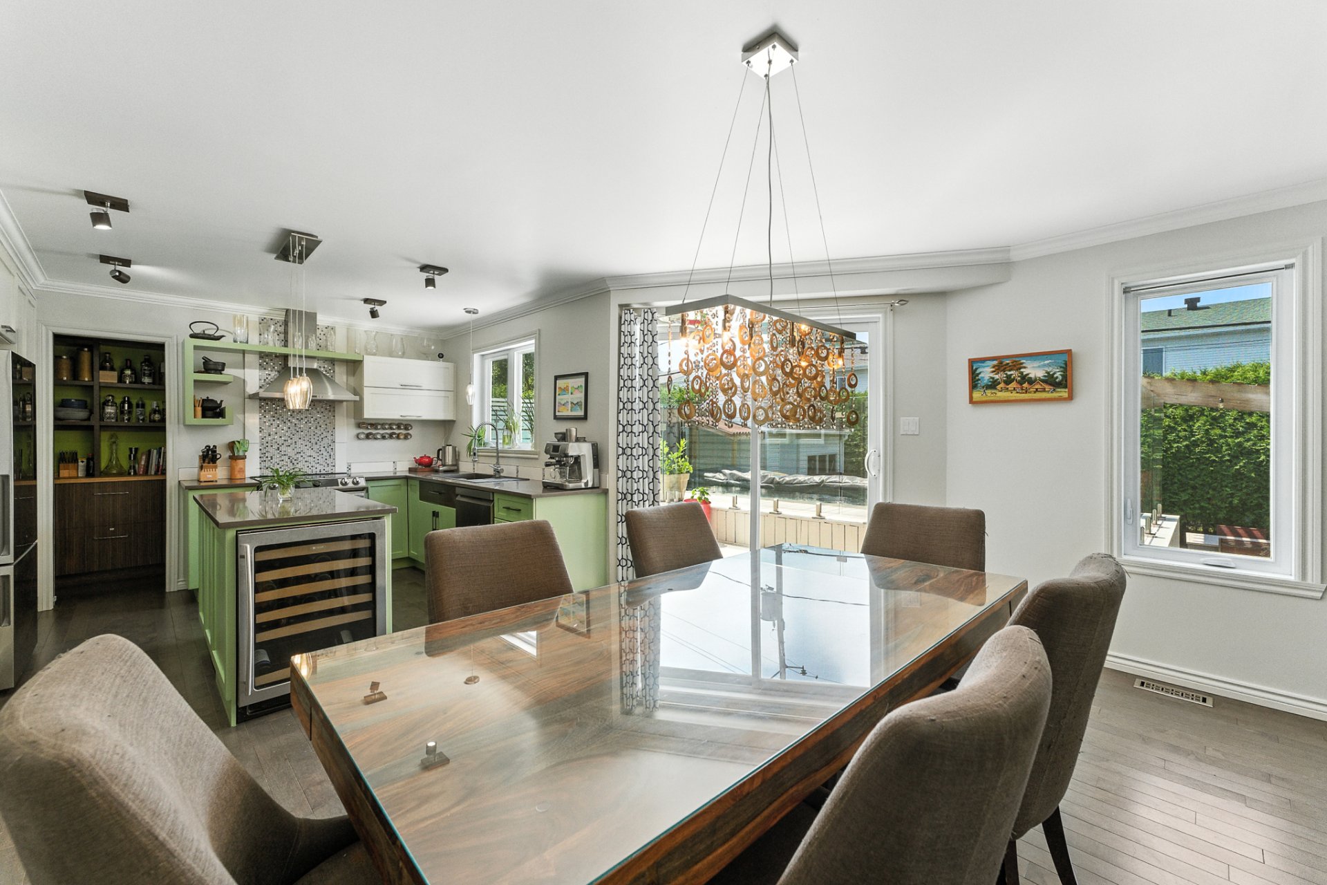 La cuisine, véritable coeur de la maison, séduira les amateurs de gastronomie et de réceptions. Dotée d'un immense îlot central et d'un garde-manger walk-in digne des plus belles résidences, elle offre un espace idéal pour cuisiner, recevoir et partager des moments inoubliables.