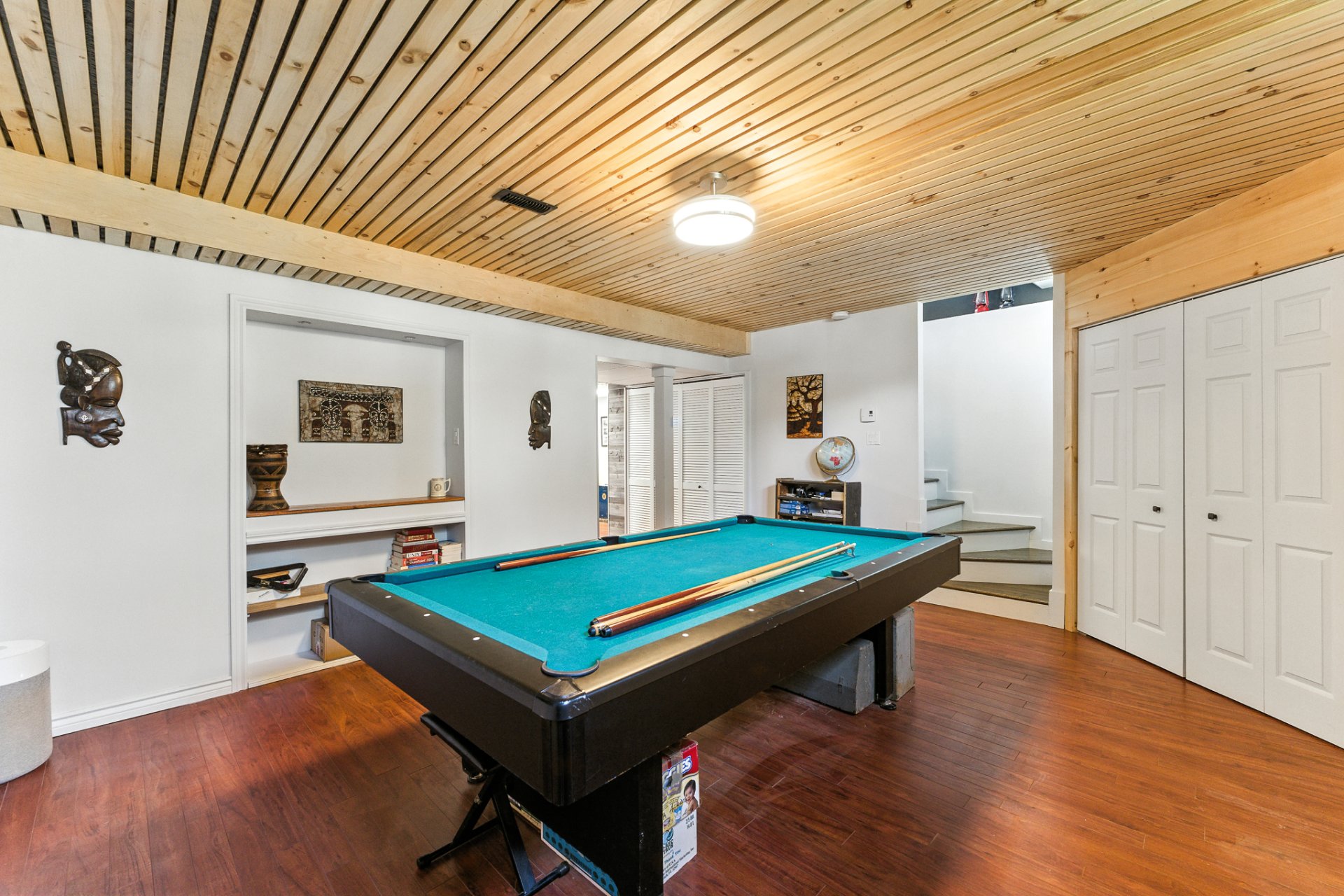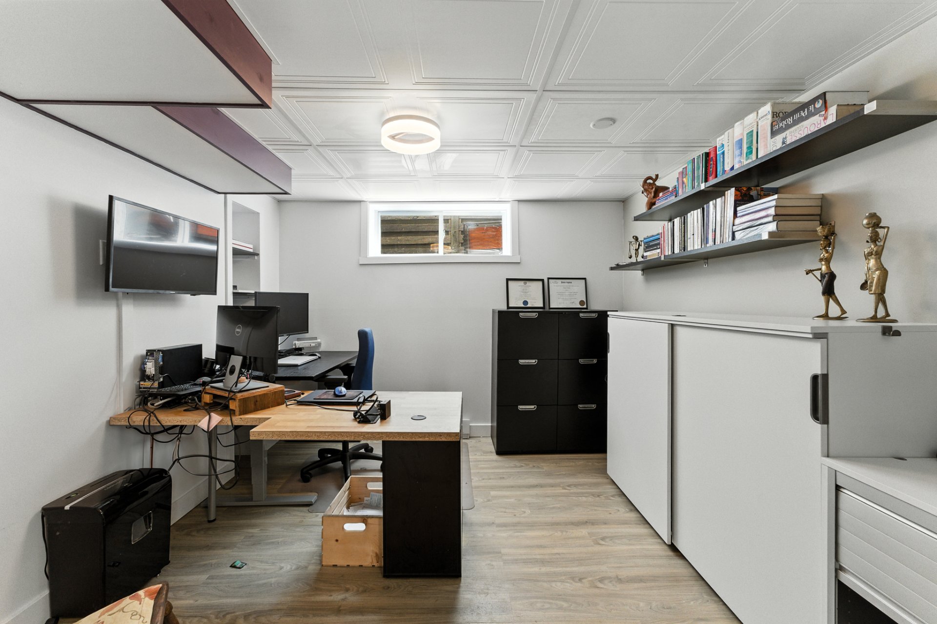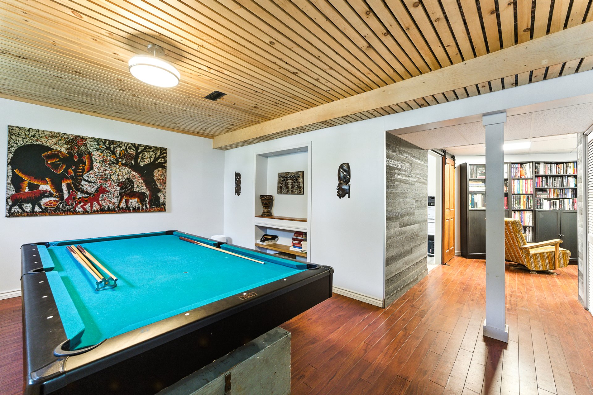 Le rez-de-chaussée et le sous-sol entièrement aménagé proposent une flexibilité remarquable : possibilité de quatre chambres, deux bureaux fermés pour le télétravail, une salle familiale et un coin lecture invitant à la détente.