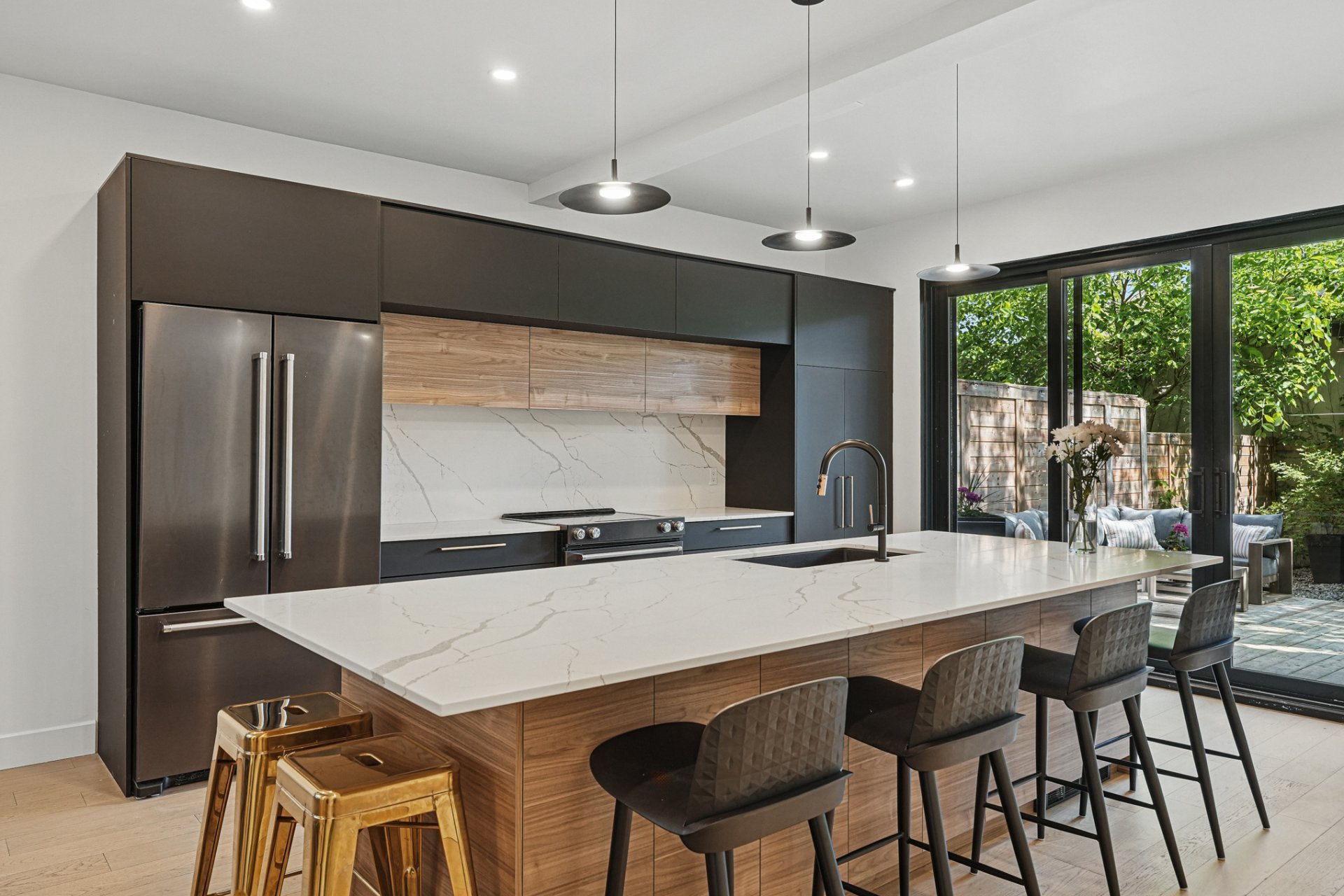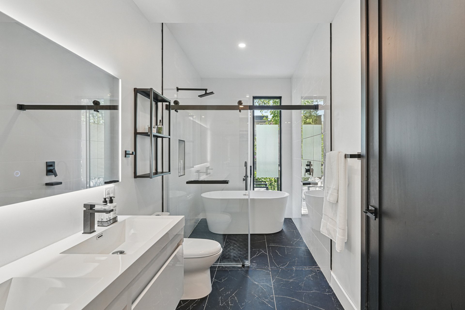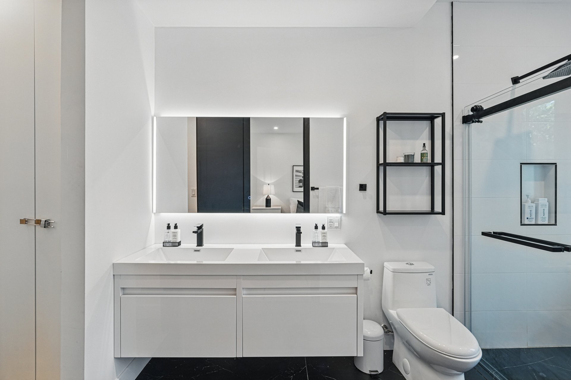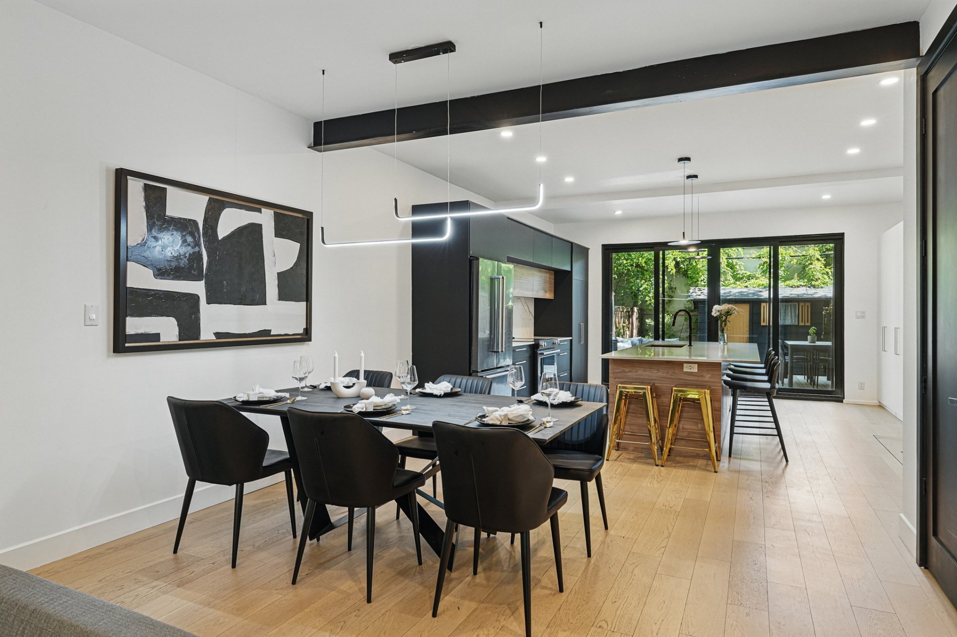 Pensé pour un quotidien moderne et ouvert, le rez-de-chaussée séduit par son imposant salon aux plafonds de 11 pieds, sa vaste aire de vie baignée de lumière, et son bureau central, subtilement intégré pour préserver fluidité et intimité. La cuisine conviviale et la salle à manger accueillante invitent aux réceptions. De grandes portes vitrées s'ouvrent sur la cour arrière, prolongeant naturellement l'espace vers l'extérieur.