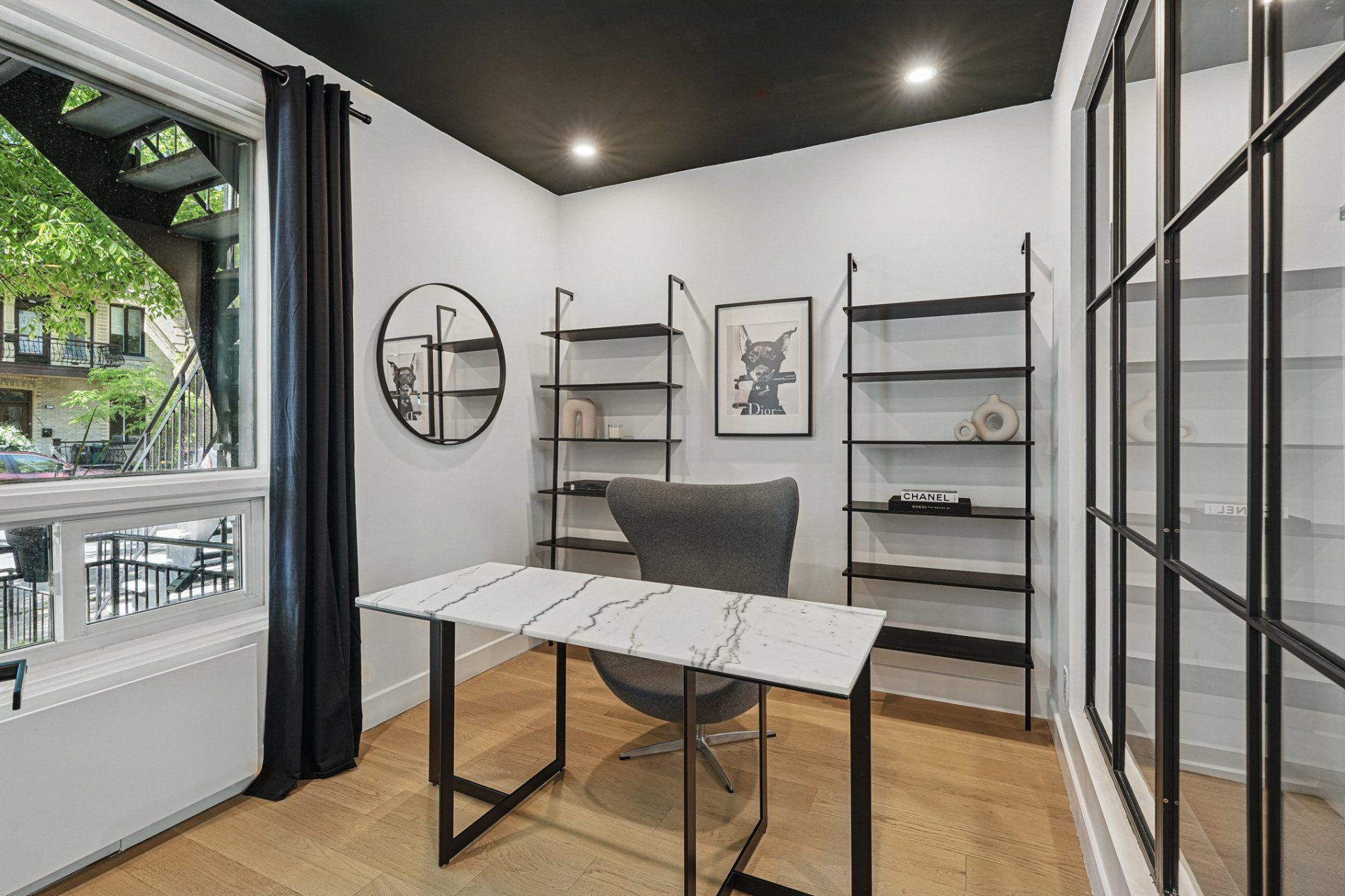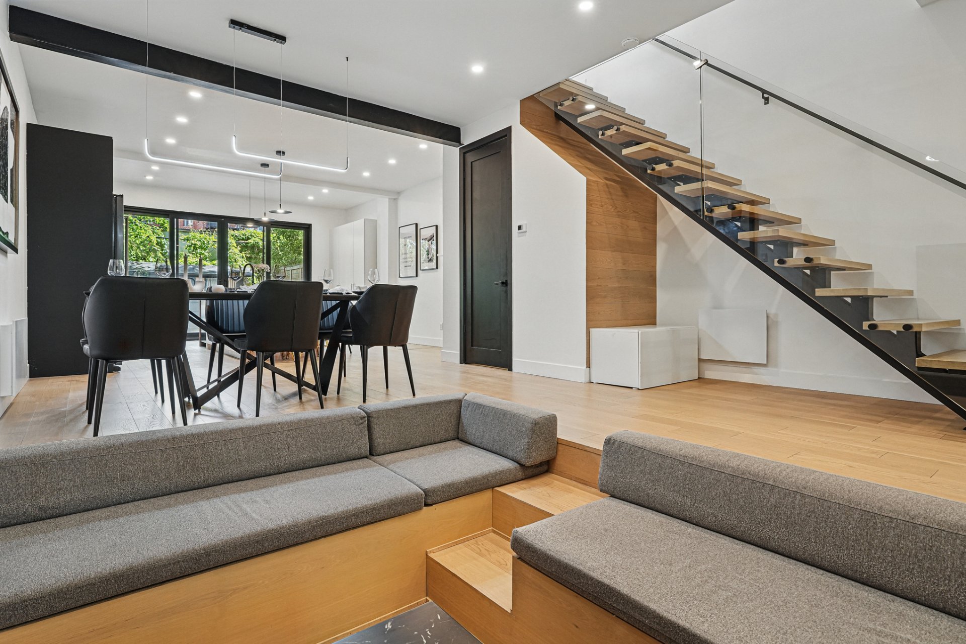 Plongez dans un mode de vie d'exception dans ce cottage ultra-moderne entièrement rénové en 2021. Située sur l'une des rues les plus cossues du Plateau, à 1 min à pied de Laurier, cette demeure se distingue par une vaste aire ouverte à l'élégance européenne, comprenant un bureau vitré, une noble salle à manger & un salon raffiné. La cuisine, dotée d'un îlot de 10 pieds, est sublimée par un mur vitré s'ouvrant sur la cour aménagée, créant une superbe transition intérieur-extérieur. Un escalier central en verre mène au 2e, où vous trouverez 3 chambres, un espace de travail pratique, 2 balcons & une suite des maîtres avec sdb et balcon attenants