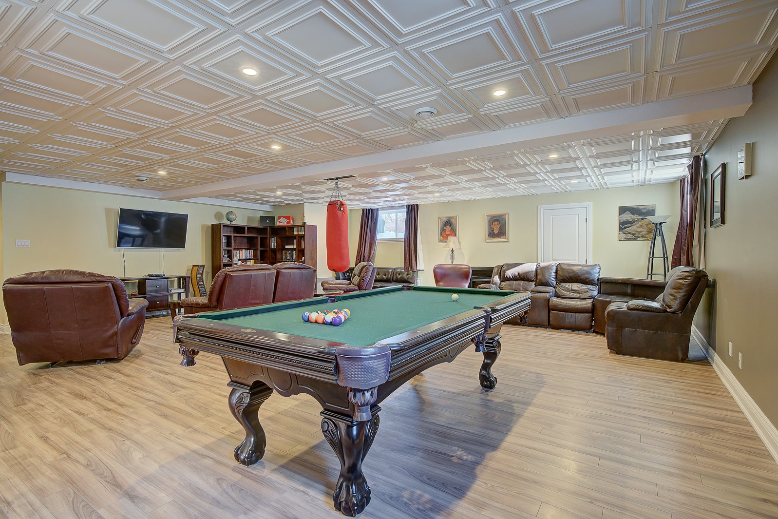 Le sous-sol propose un espace impressionnant et polyvalent : une immense salle familiale, une salle de jeux, une salle de lavage indépendante, une salle de bain, deux grandes chambres supplémentaires, plusieurs rangements et une salle mécanique parfaitement organisée. Un niveau complet pensé pour la flexibilité, le confort et la vie familiale.