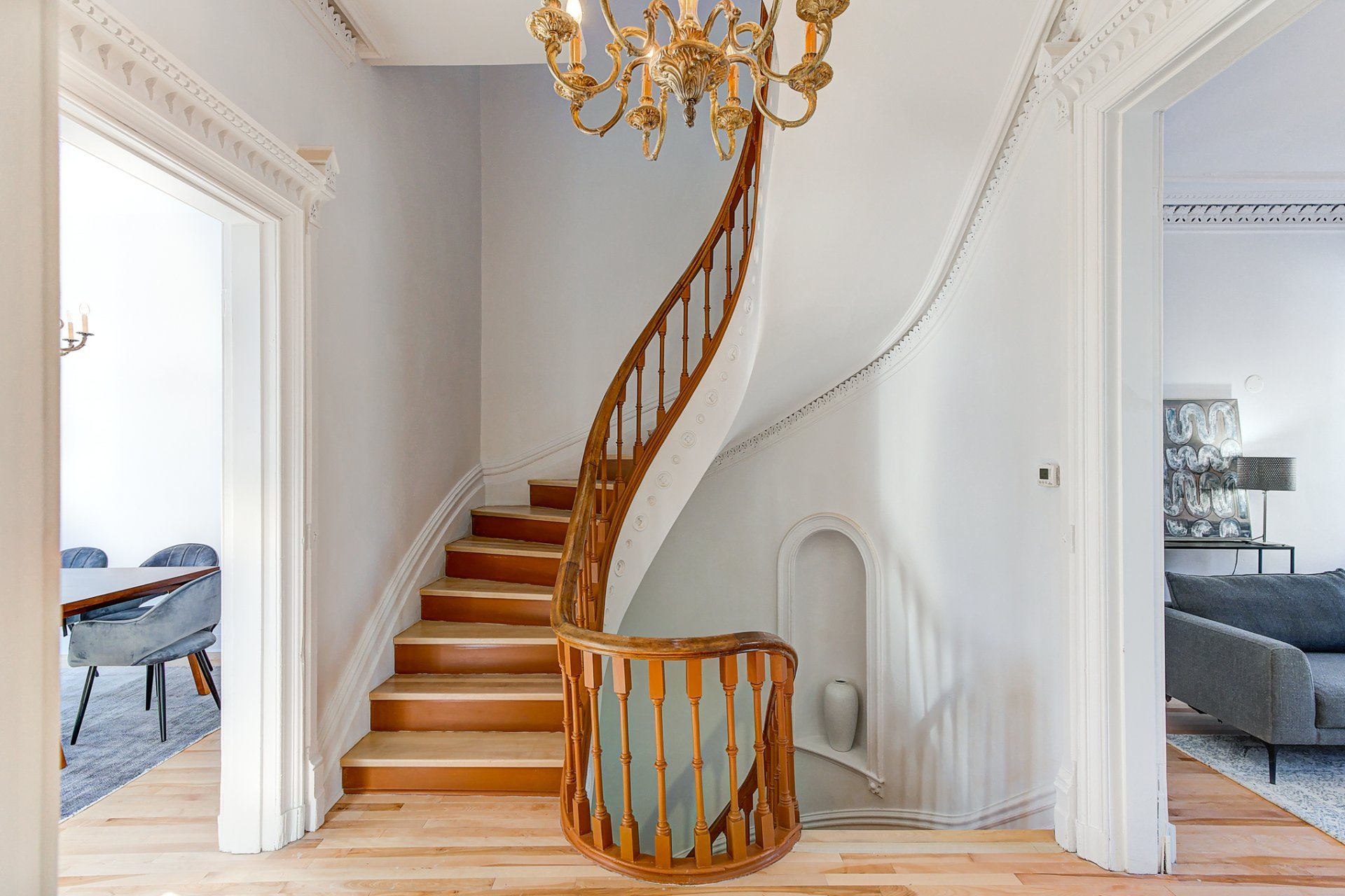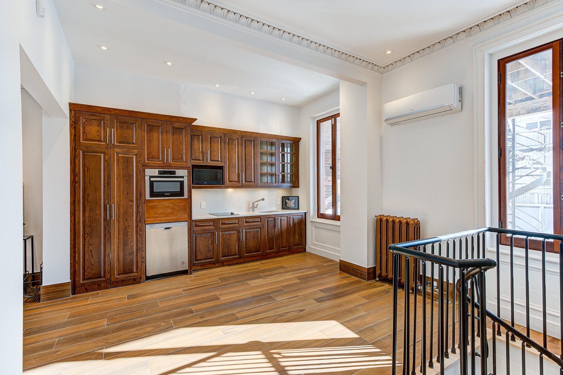 Montez au 3ème étage, où un puits de lumière baigne le palier de lumière naturelle avec ses détails complexes. Ce niveau comprend 3 chambres bien aménagées, dont une suite principale spacieuse avec rangements sur mesure. Une salle de bain rénovée complète cet étage.
