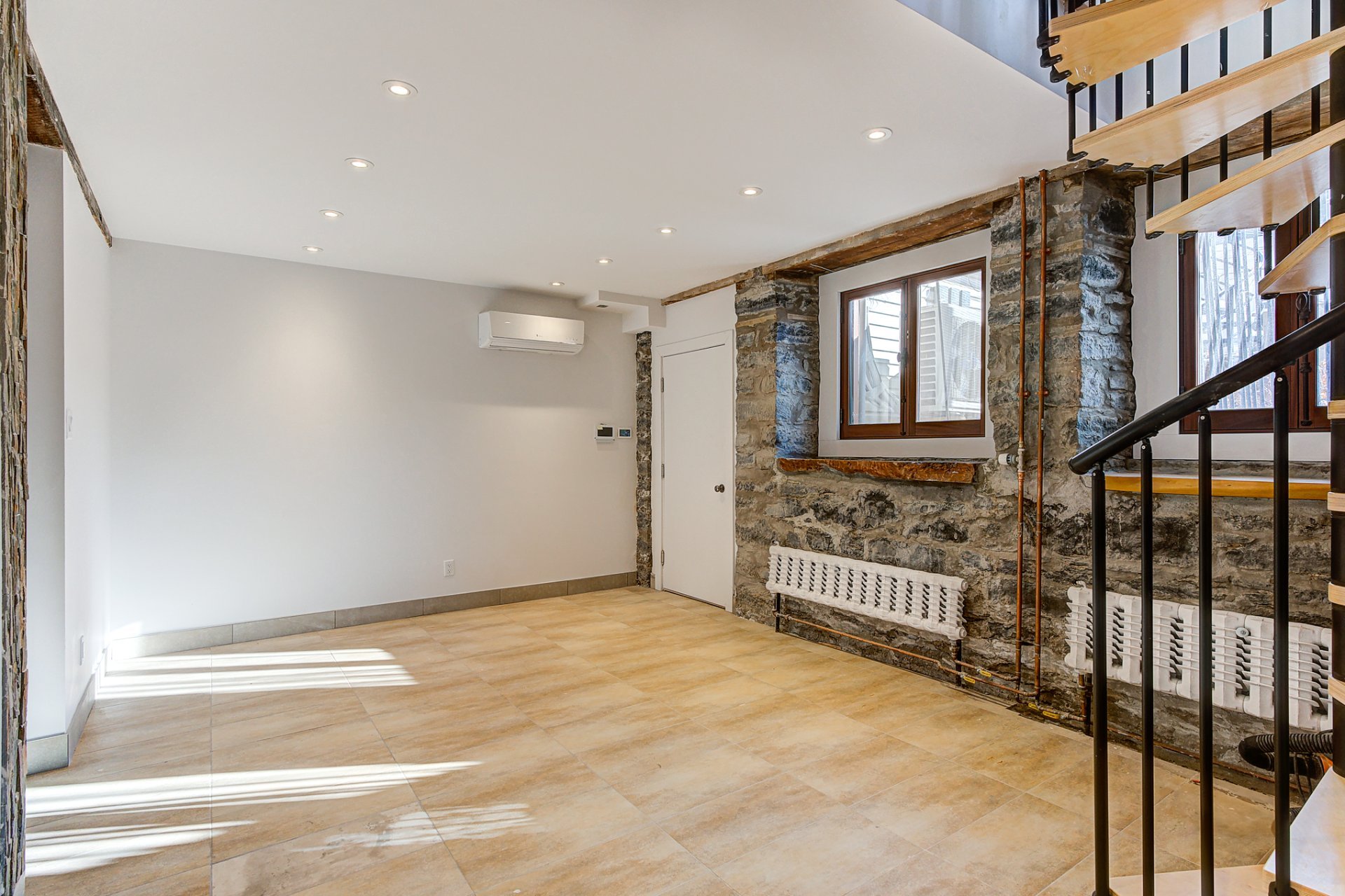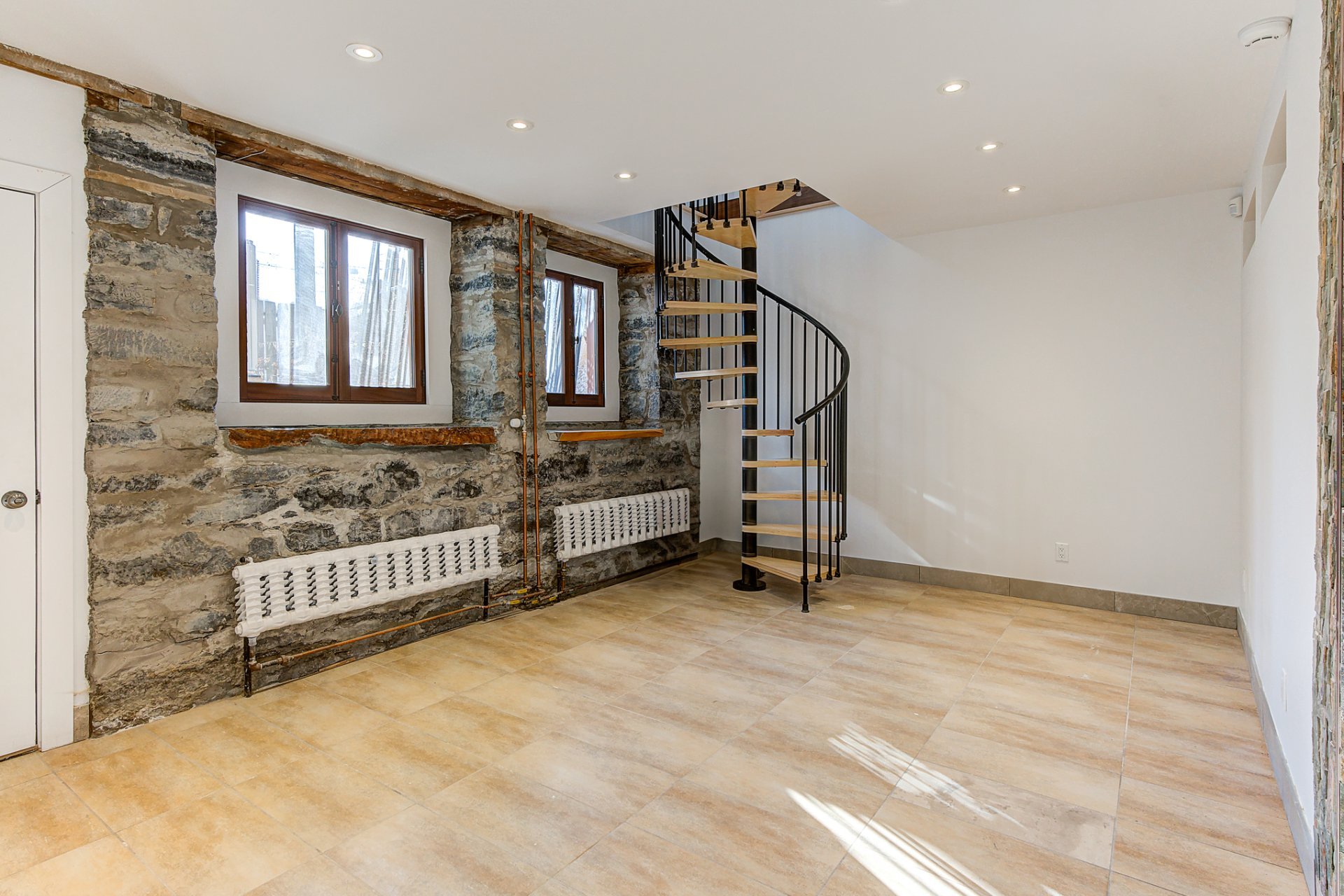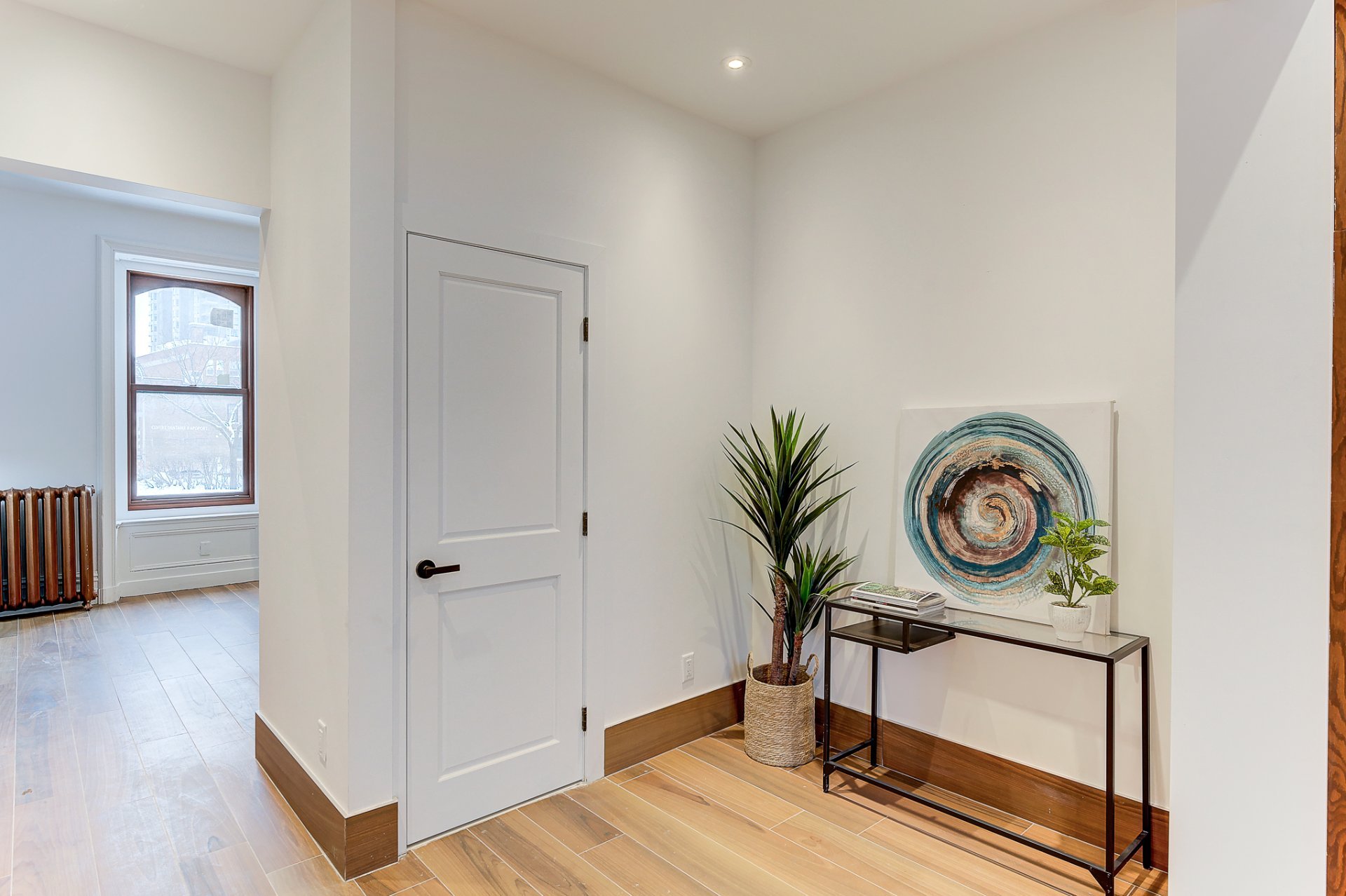 Cette propriété comprend une entrée et un couloir communs, donnant accès à 2 espaces de vie distincts : l'unité du rez-de-chaussée/sous-sol et l'unité du 2e et 3e étage.