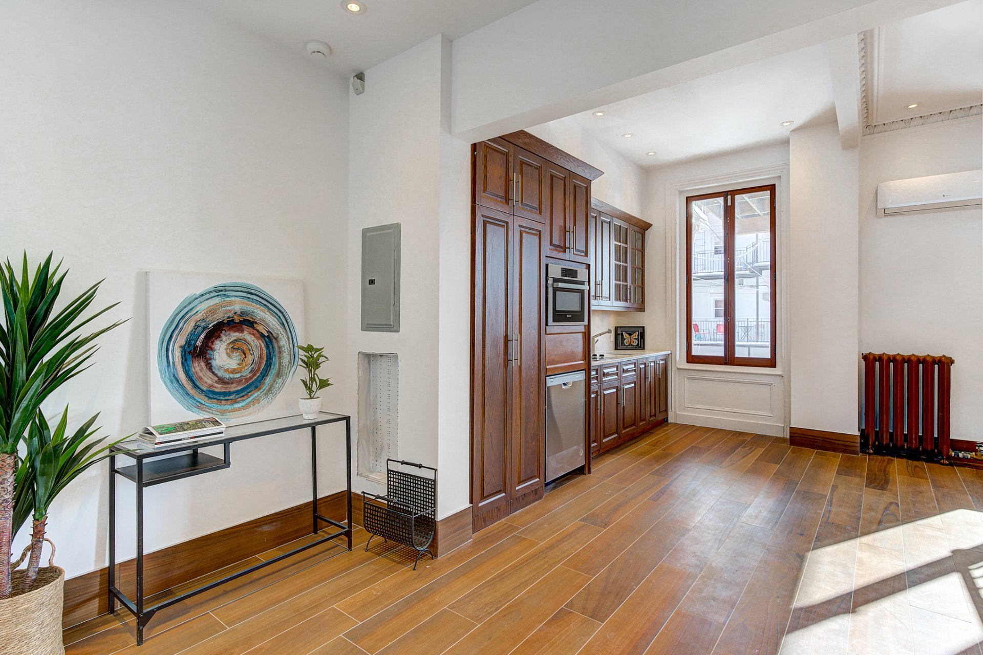 Cette unité spacieuse de 2 étages allie harmonieusement charme historique et rénovations modernes. Le 2e étage présente de superbes moulures originales et de hauts plafonds de 10 pieds, créant une atmosphère aérée et élégante. La cuisine récemment rénovée est un véritable point fort, offrant à la fois style et fonctionnalité, avec un accès direct à une grande terrasse arrière, parfaite pour recevoir et dîner en plein air. Une salle d'eau, qui abrite également la laveuse et la sécheuse, ajoute à la praticité de l'étage.