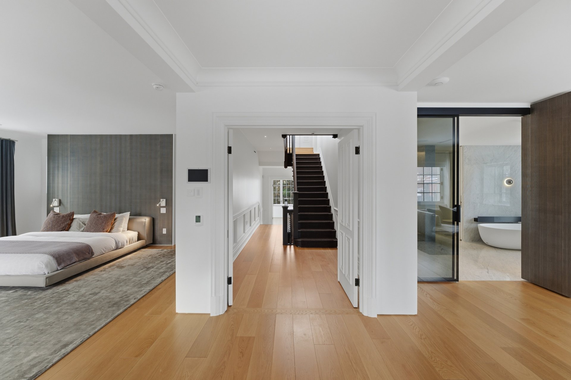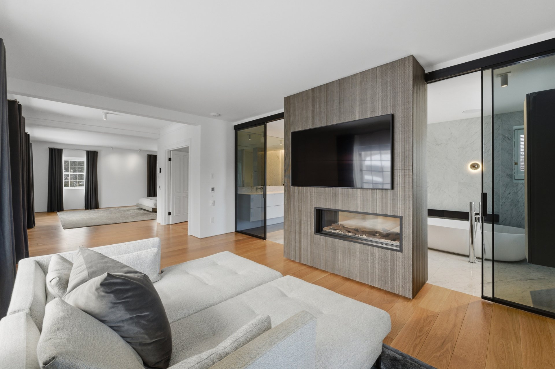 + Vaste suite principale comprenant une spacieuse penderie (walk-in) , un boudoir et une superbe salle de bain