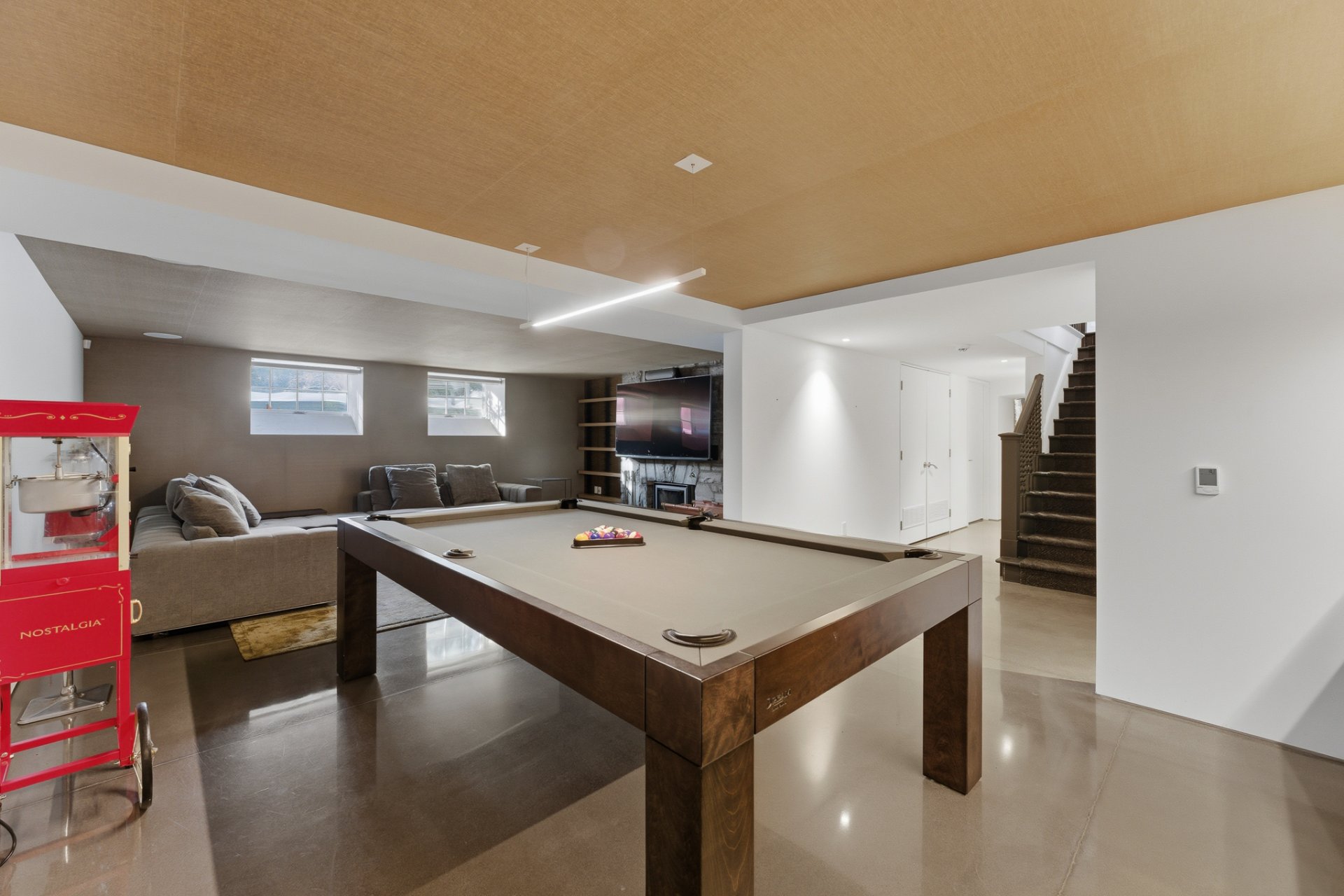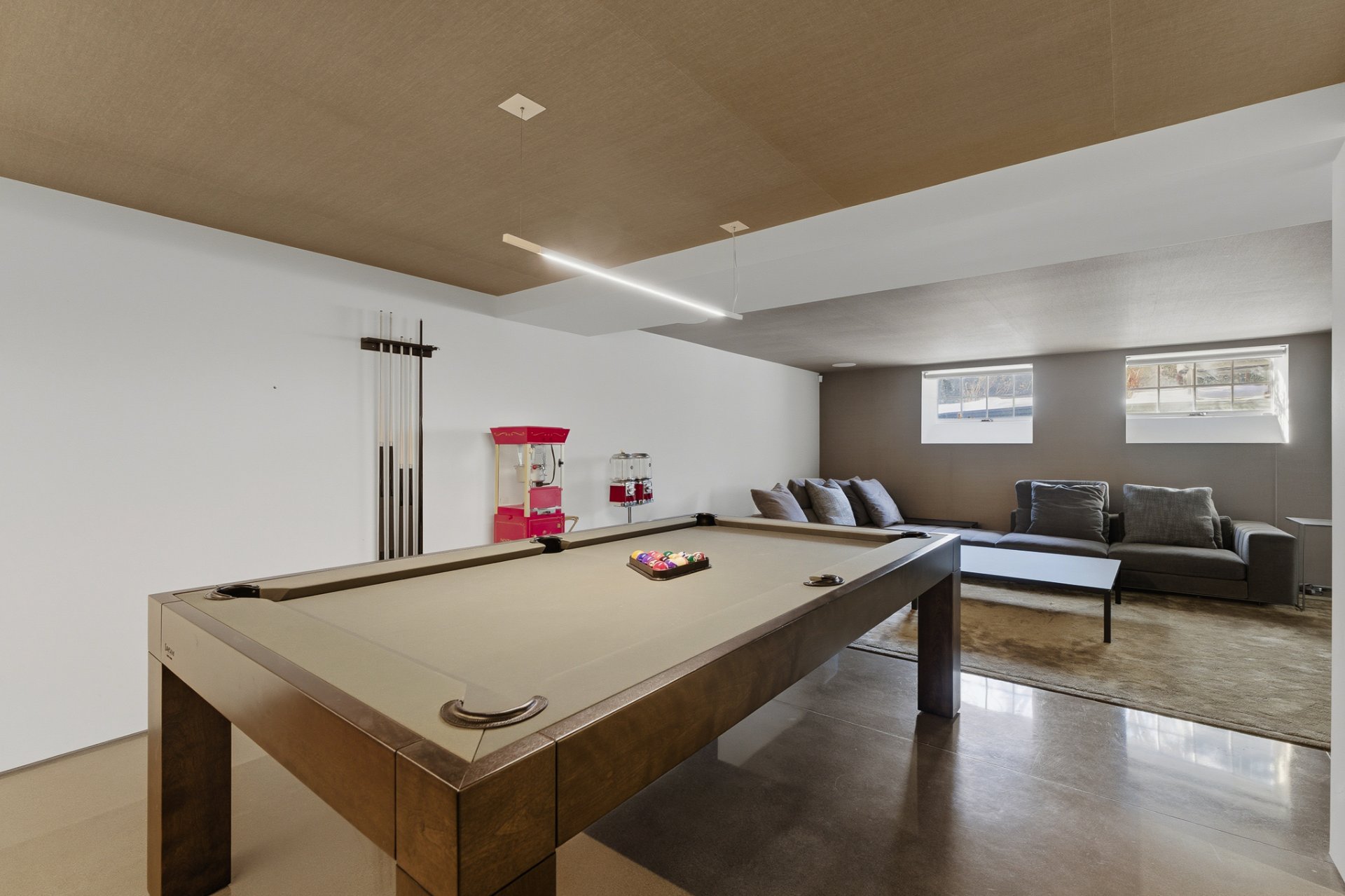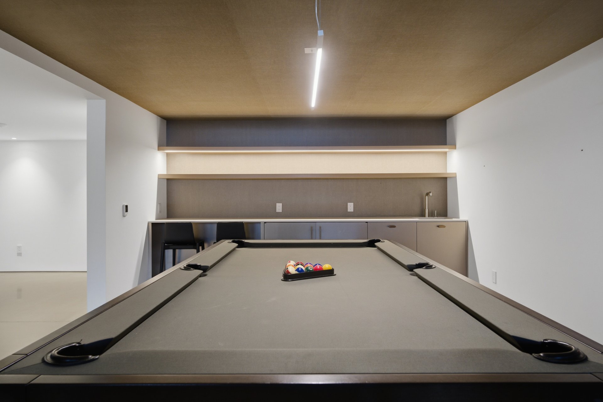 + Salle de jeux avec coin table de billard, comptoir réfrigéré et lavabo