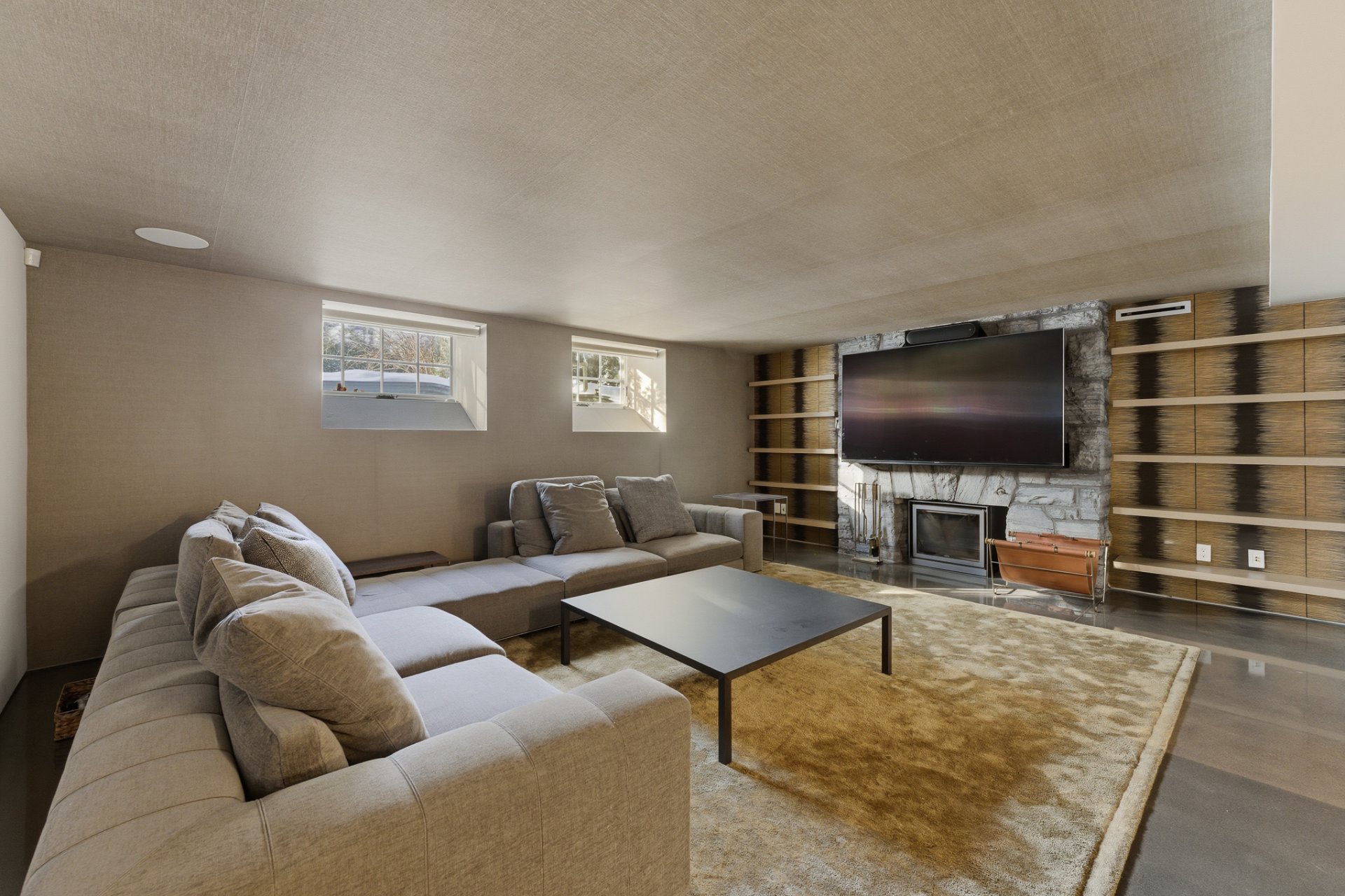 + Grand espace repas/salle familiale avec téléviseur mural caché et foyer au gaz