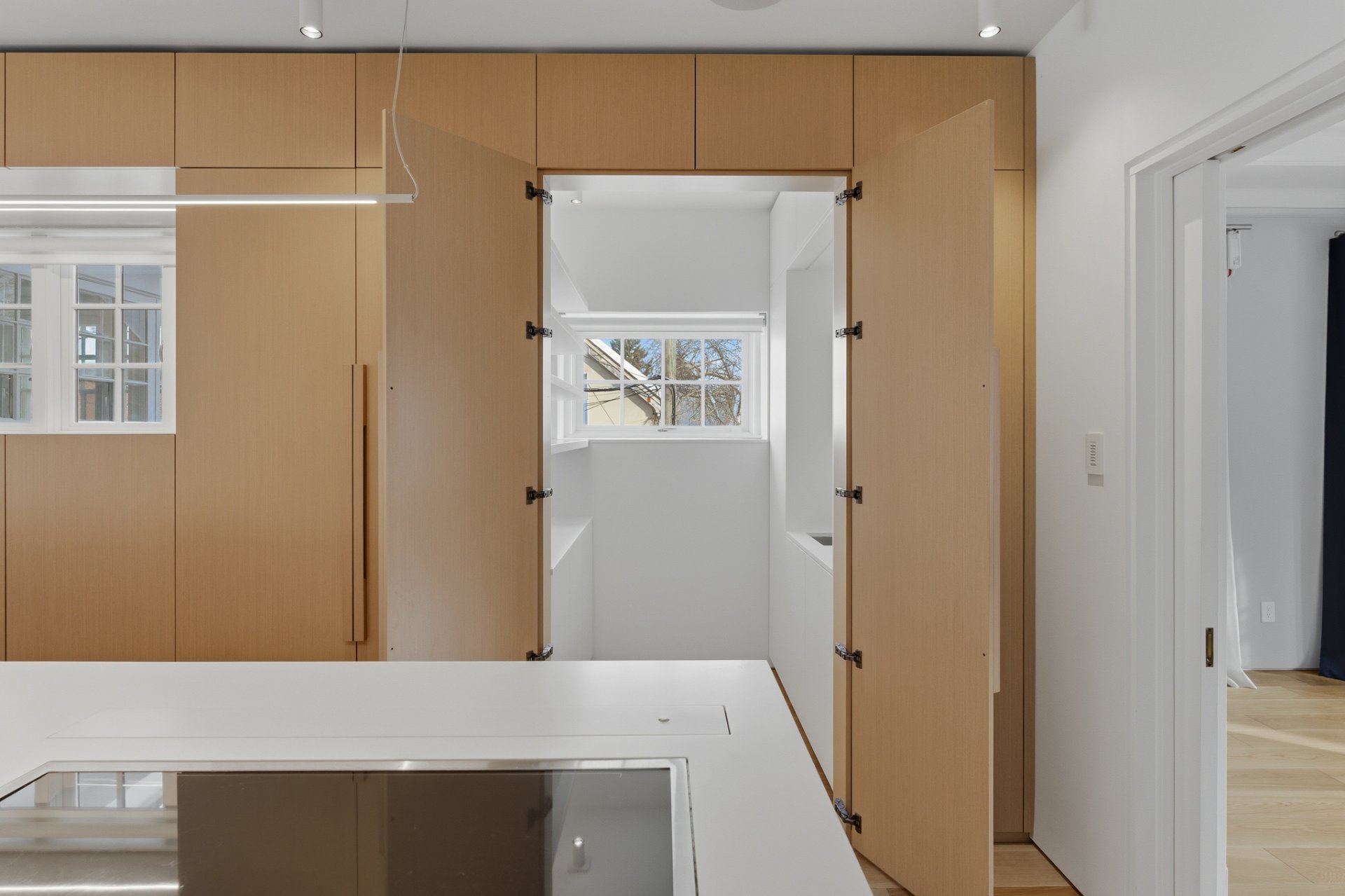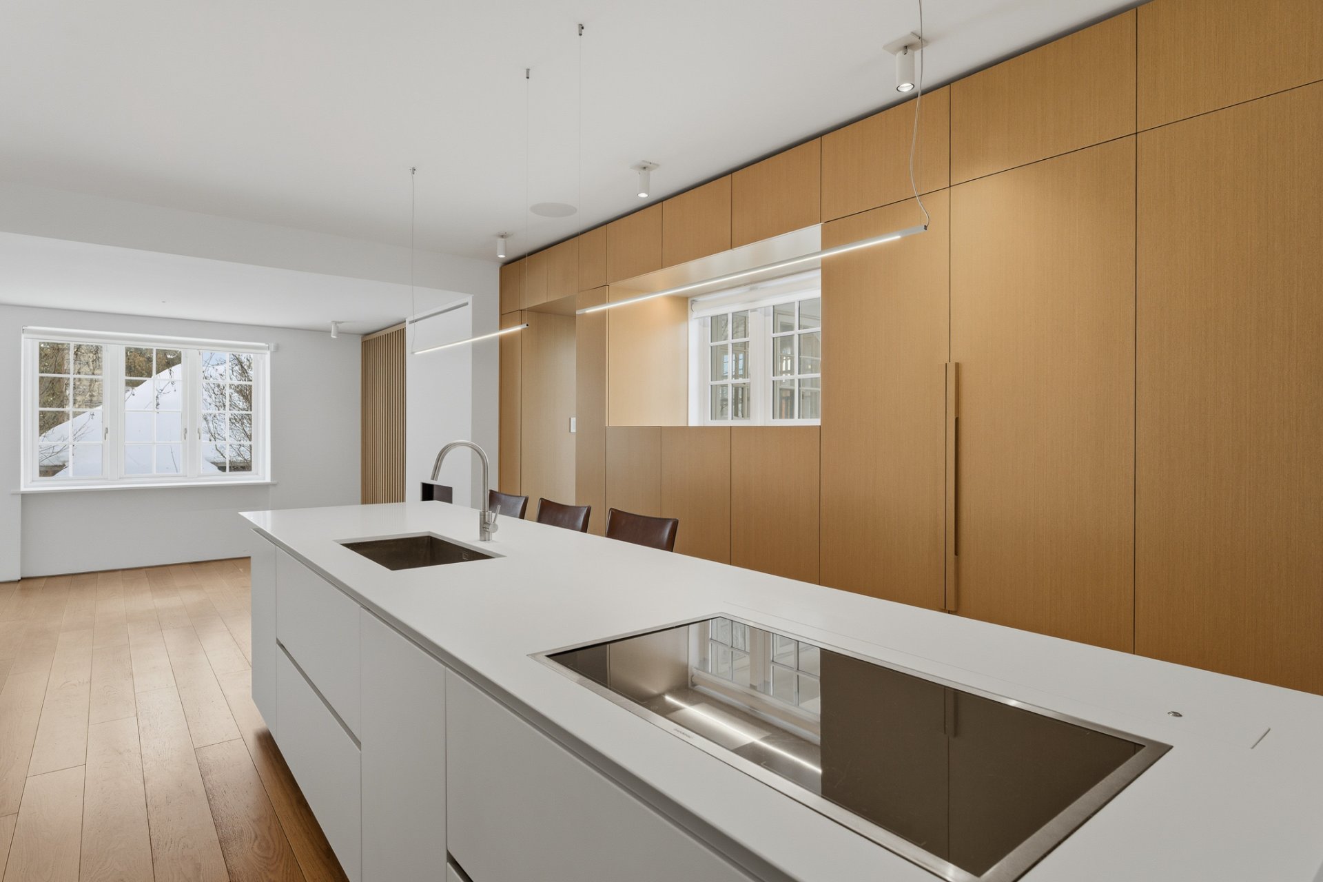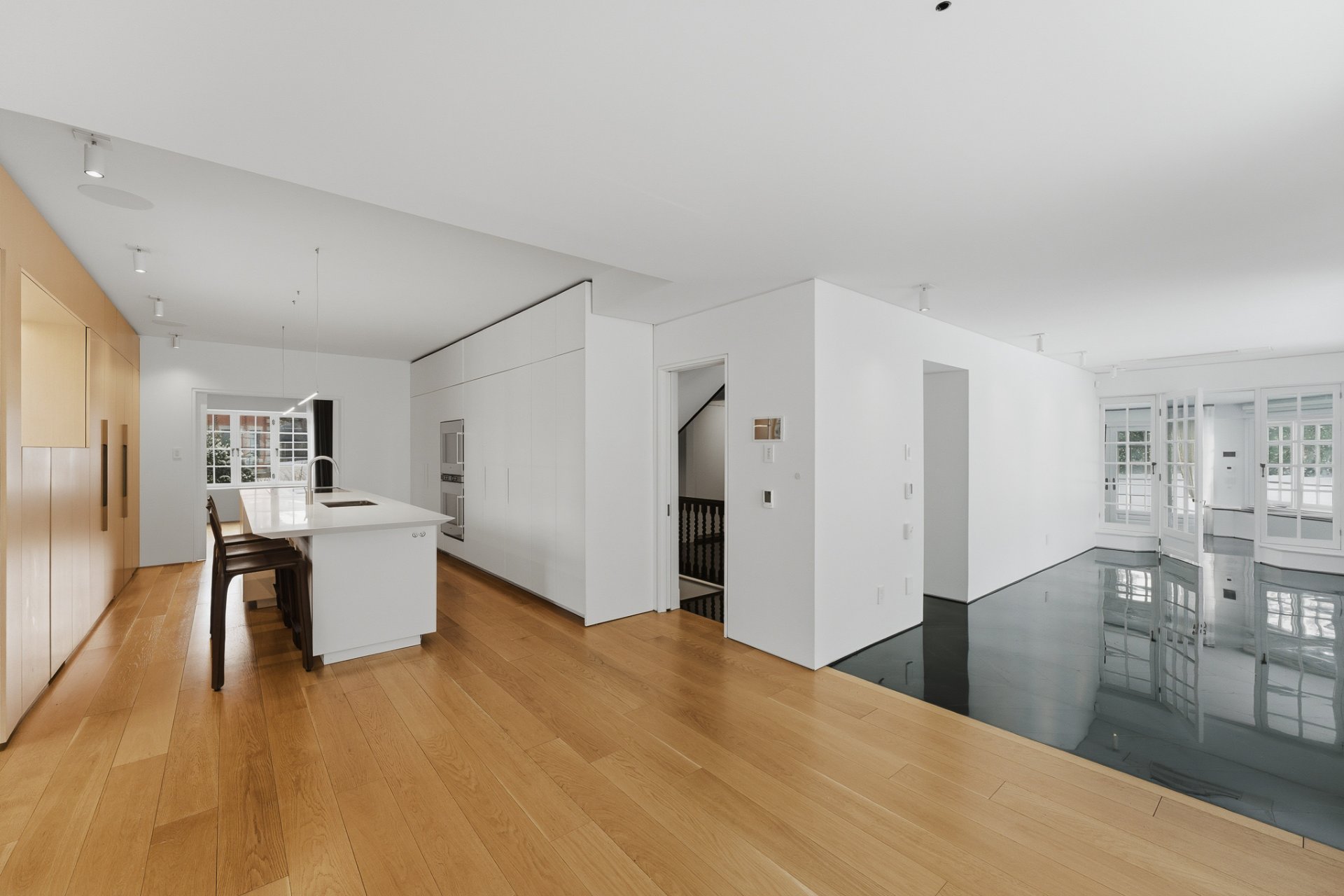+ Cuisine épurée où se dissimule l'office, pour des réceptions de distinction, rangements invisibles, électroménagers luxueux