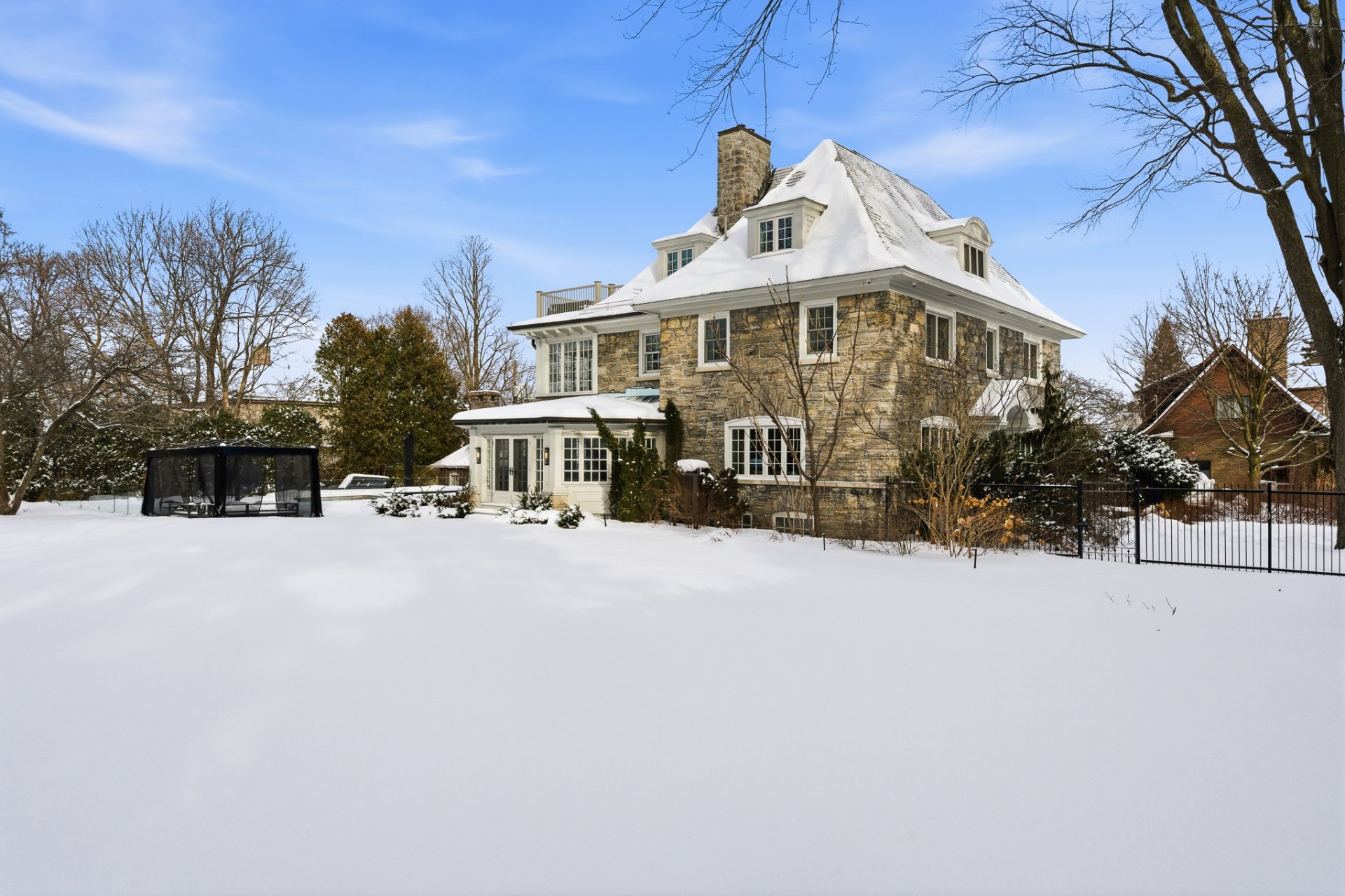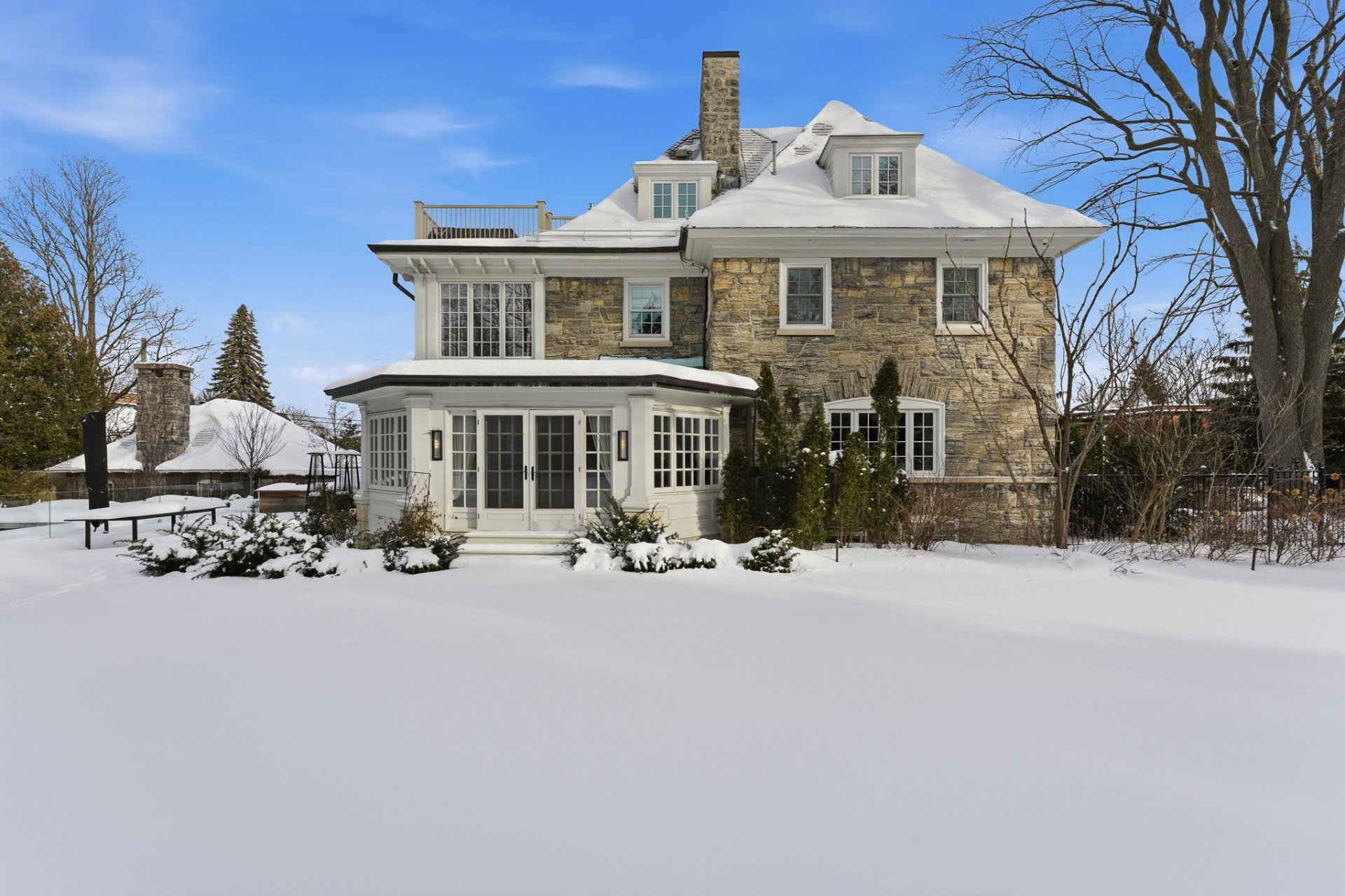 Érigée par Charles Reginald Tetley, cette résidence mêle tradition locale et architecture coloniale américaine. Saluée dès 1927 comme l'idéale « city country home », elle allie pierres à bossages, lucarnes, escalier colonial et fenestration remarquable. Un summum de luxe où l'esprit de campagne s'épanouit avec une élégance intacte au coeur d'Outremont.