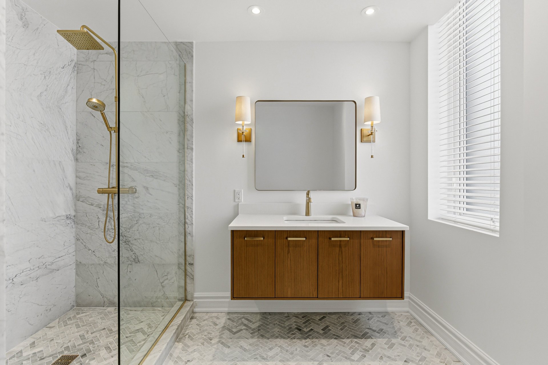 Les espaces privés sont discrètement séparés et comprennent quatre chambres aux proportions généreuses, dont une suite principale avec rangements intégrés et salle de bains attenante luxueusement aménagée, ainsi qu'une seconde chambre avec salle de bains attenante. Les autres chambres sont desservies par une salle de bains complète supplémentaire, toutes réalisées avec des matériaux de grande qualité et des finitions sobres d'inspiration spa.