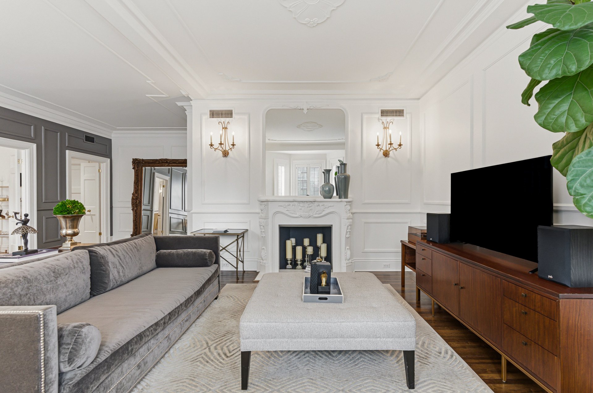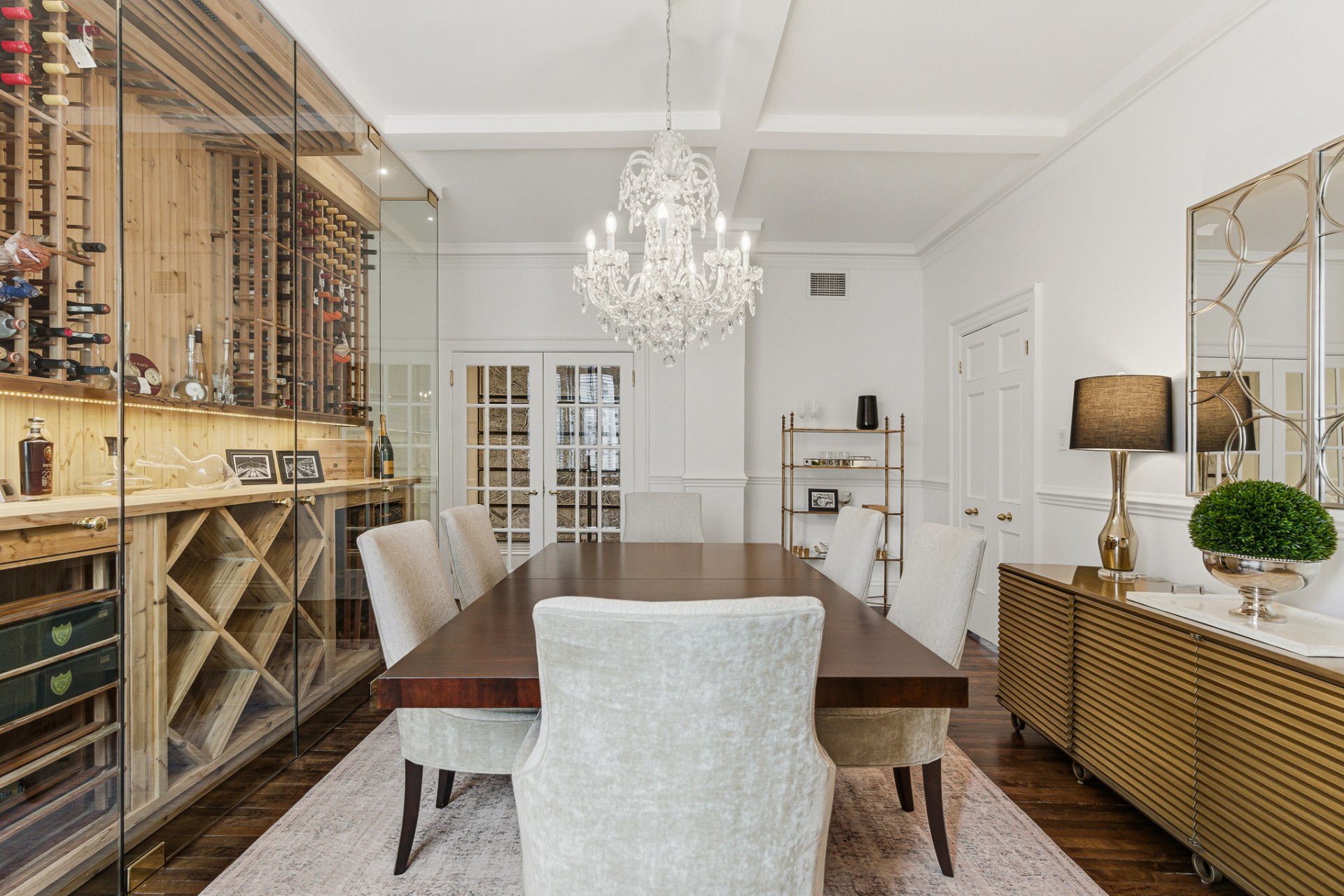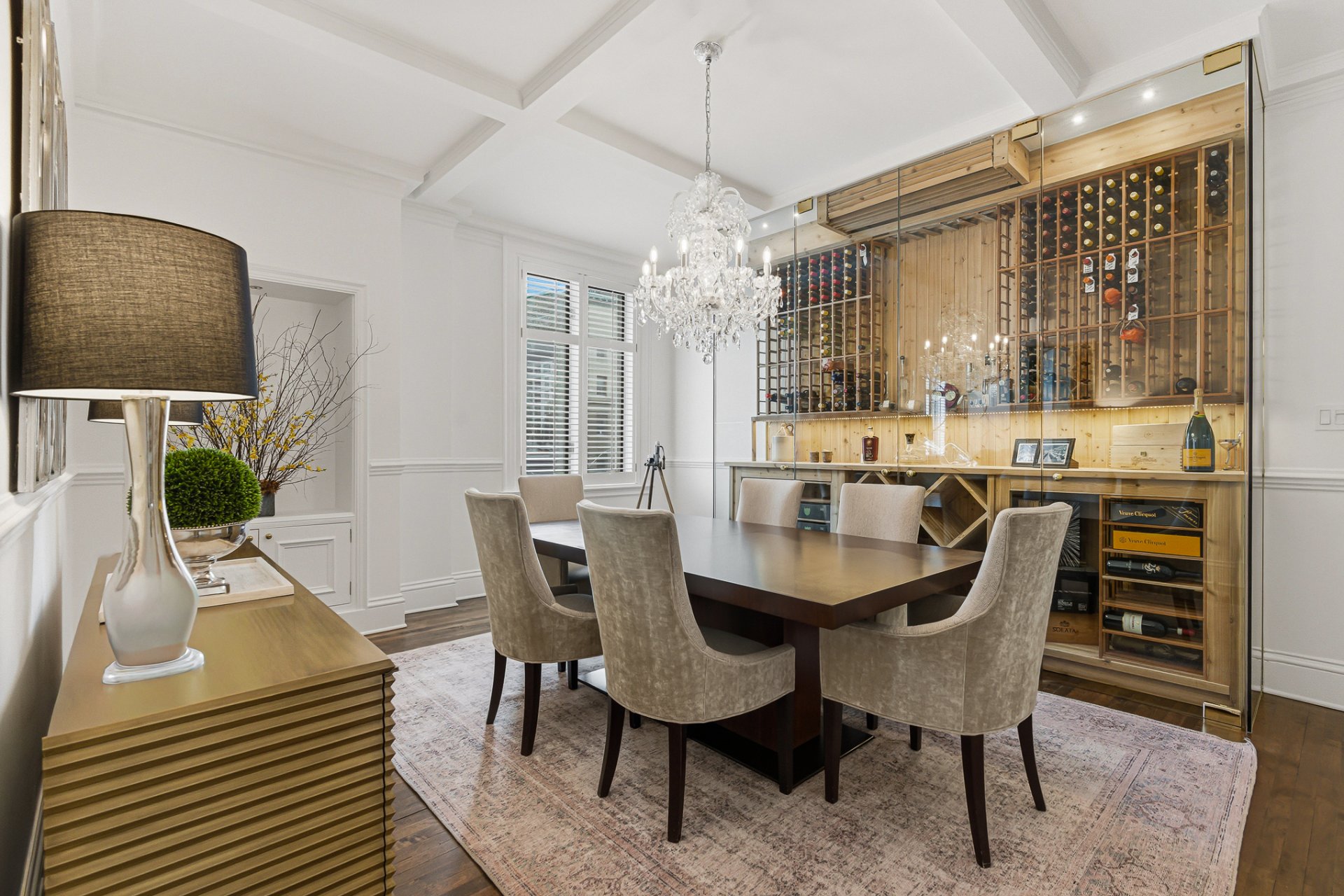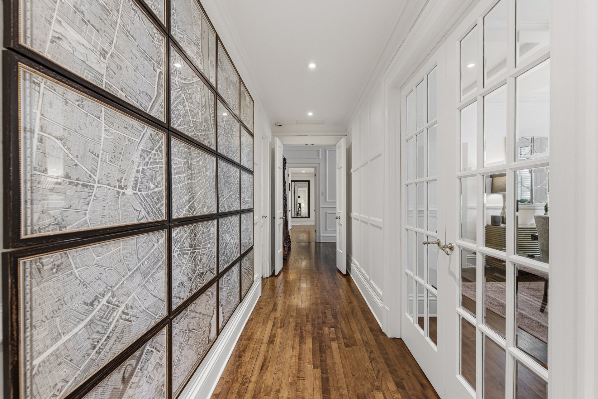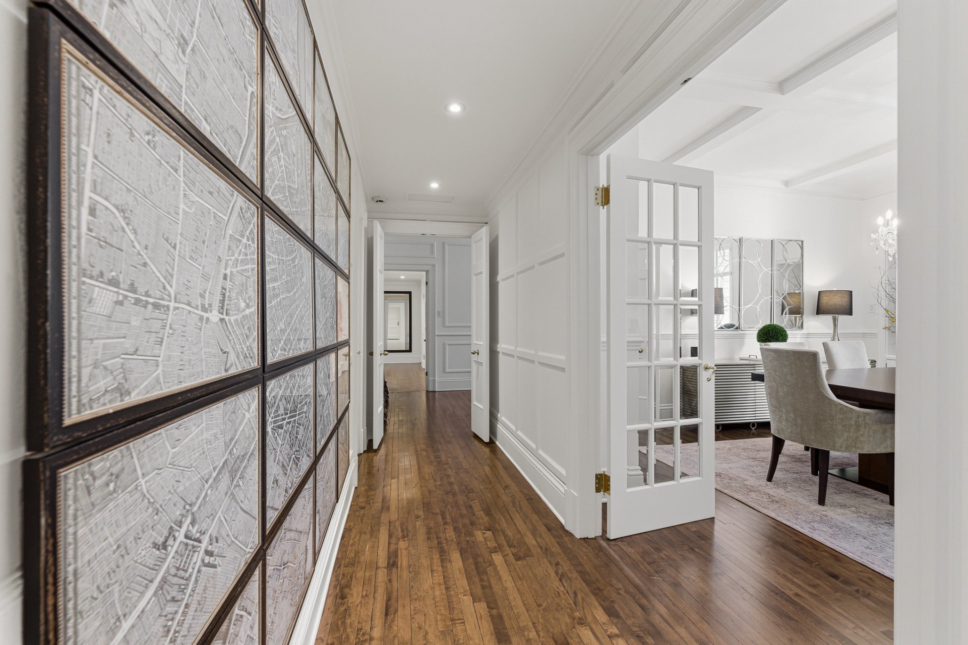 La résidence se distingue par ses proportions classiques, ses éléments architecturaux soigneusement préservés et son atmosphère de sophistication discrète. De vastes espaces de réception baignés de lumière naturelle sont mis en valeur par des planchers de bois franc, des boiseries raffinées et de généreuses hauteurs sous plafond. Le salon formel, agrémenté d'un foyer décoratif, s'ouvre harmonieusement sur des espaces de réception élégants, adaptés tant aux réceptions intimes qu'aux grandes occasions.