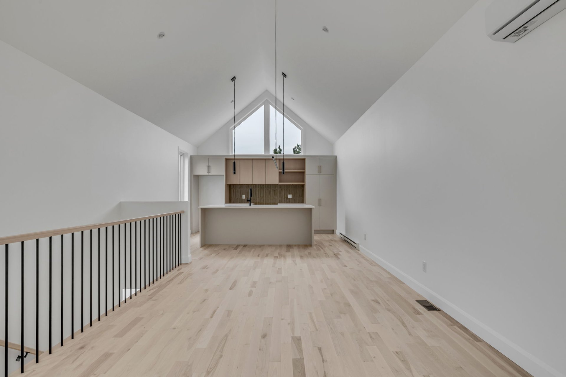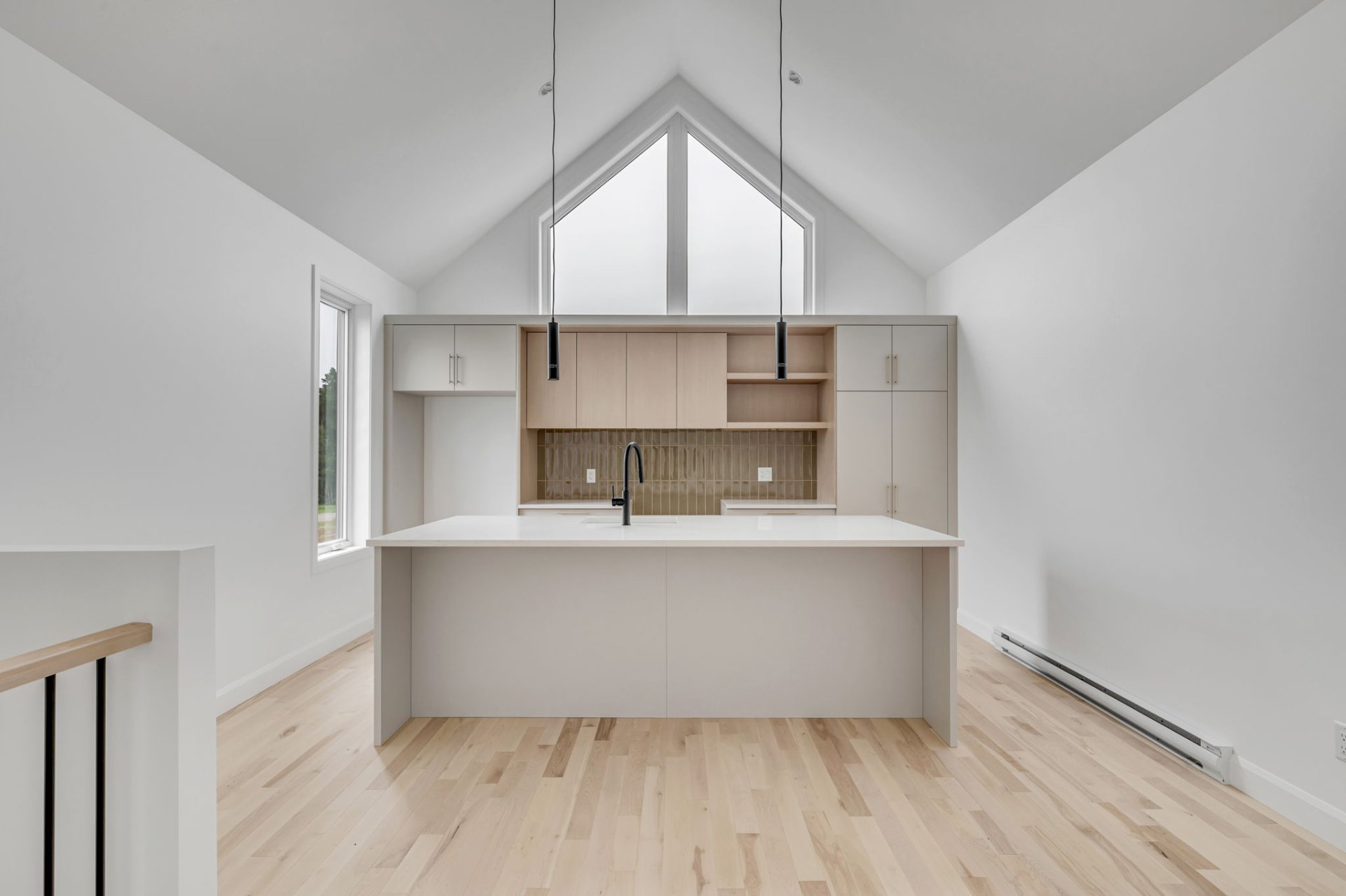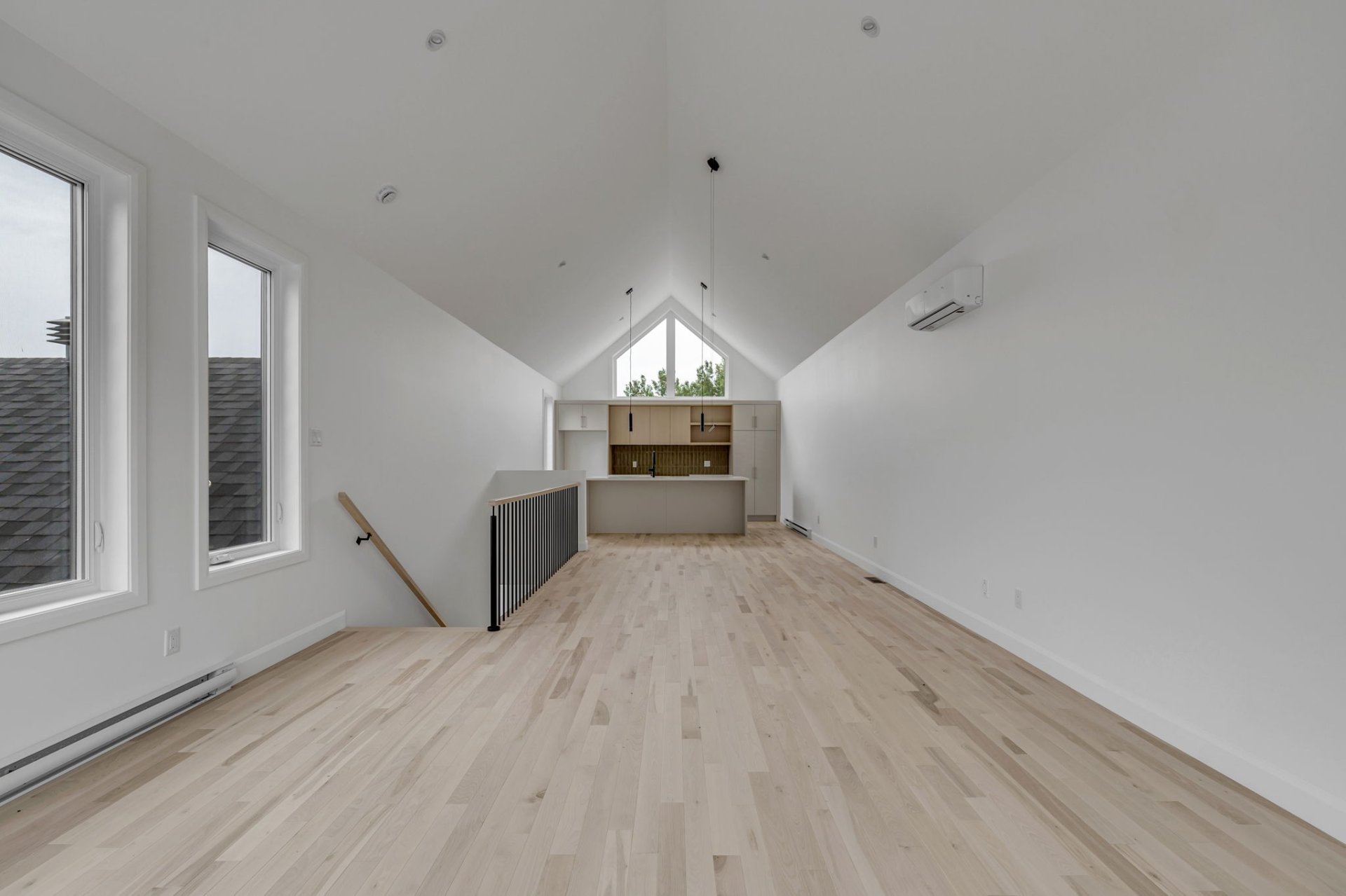 Située sur la seule rue du développement FYRA Quartier où la location à court terme est permise,cette propriété neuve au style nordique propose 2 chambres,un bureau fermé et un boudoir ouvert avec porte-patio donnant sur la cour arrière. Son plan inversé place l'aire de vie à l'étage pour offrir une vue spectaculaire sur le Mont-Sainte-Anne et sur la nature environnante.Garage intégré, sous-sol prêt à aménager (possibilité de 2ch.,salle familiale,salle de bain et lavage),environnement paisible sans voisin arrière,à proximité des services, du ski et des activités de plein air.Prête à habiter;plus que 3 propriétés sur cette rue, faites vite !