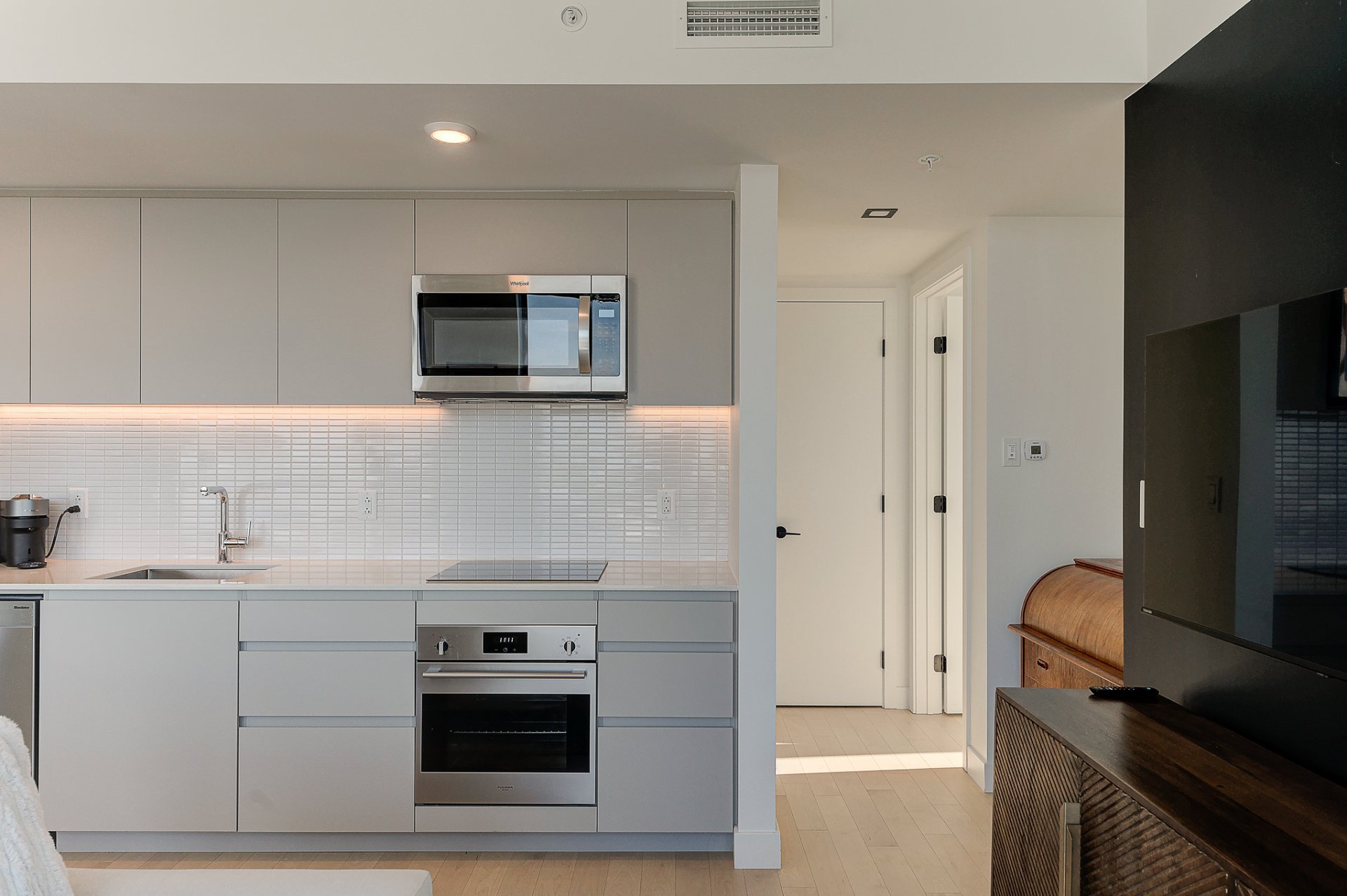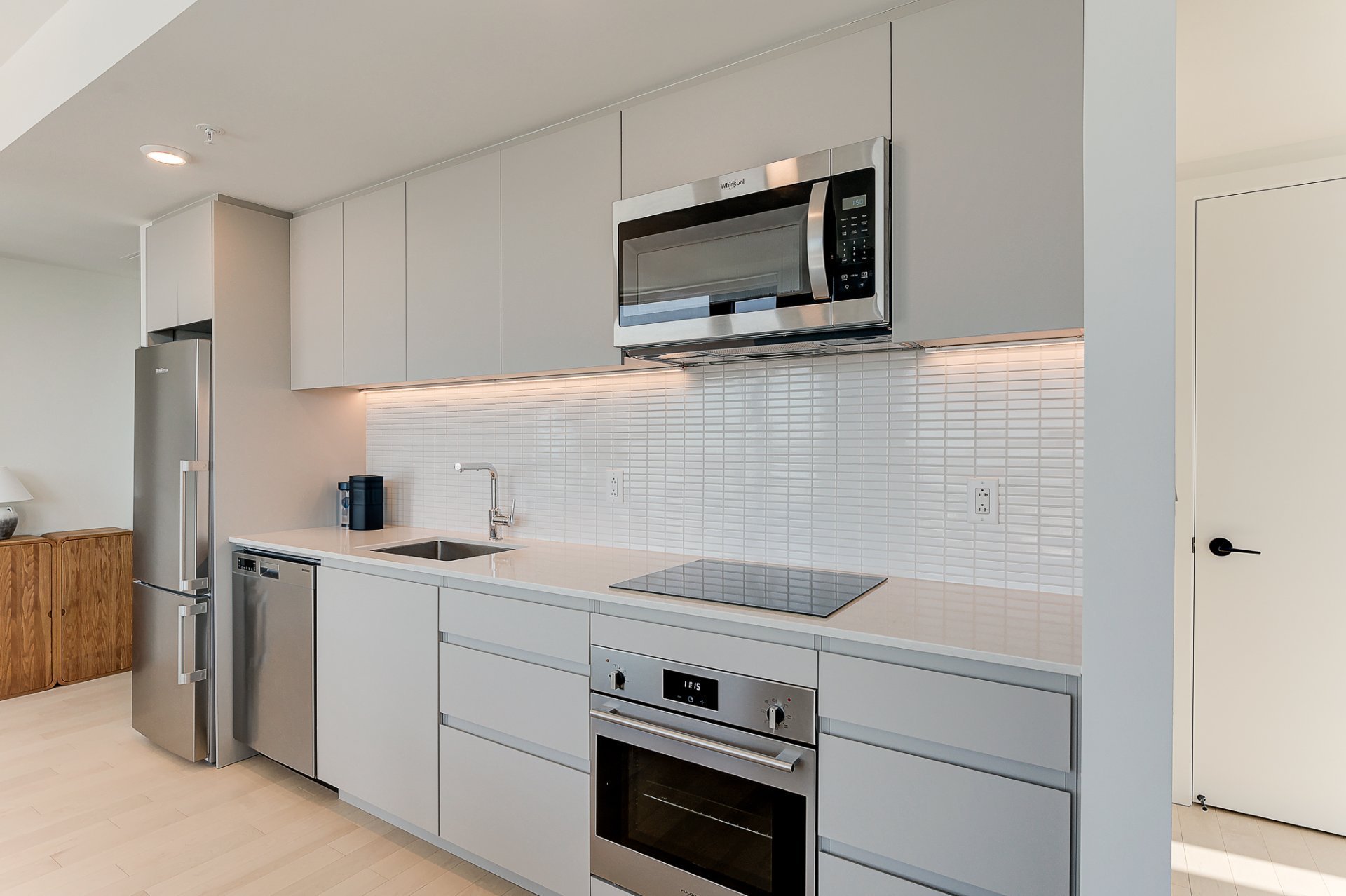 - Réfrigérateur, lave-vaisselle, four et plaque de cuisson, micro-ondes, luminaires et stores.