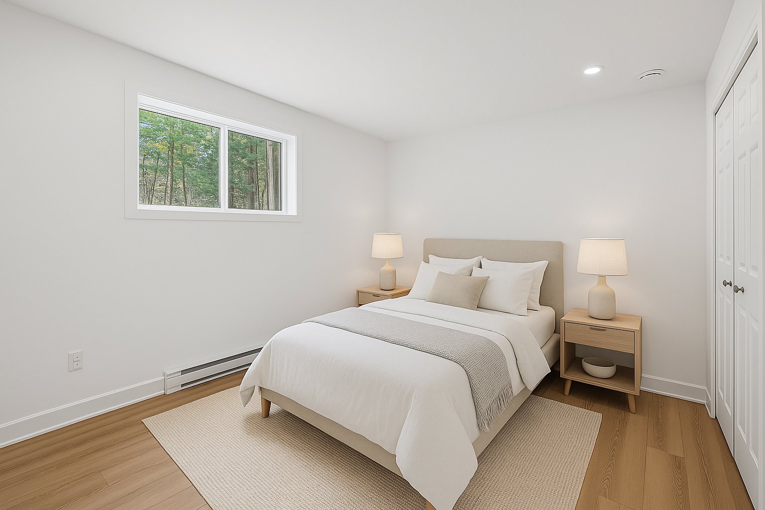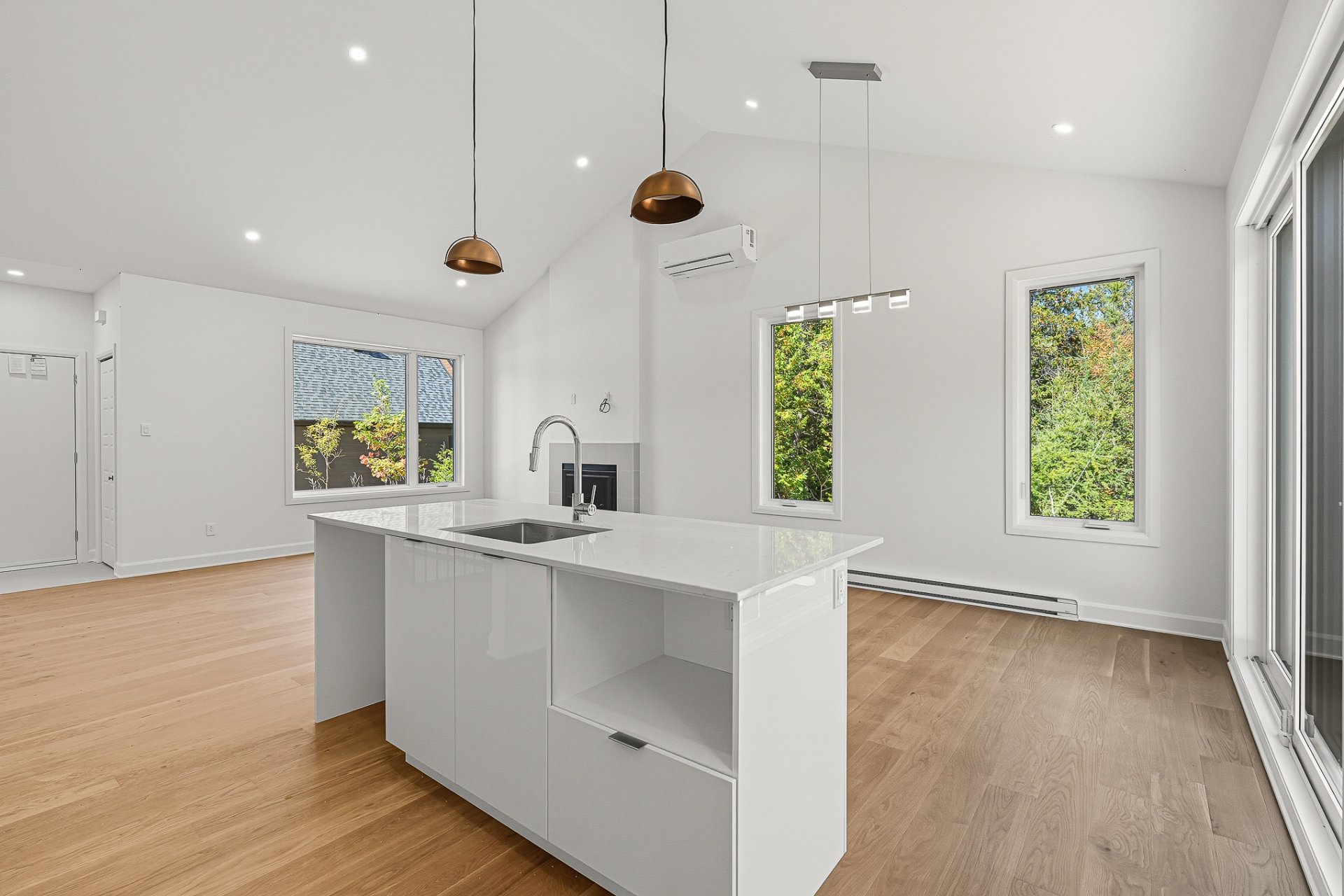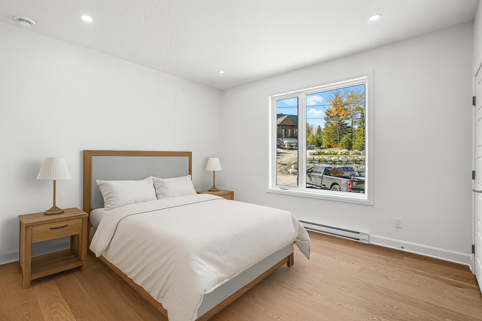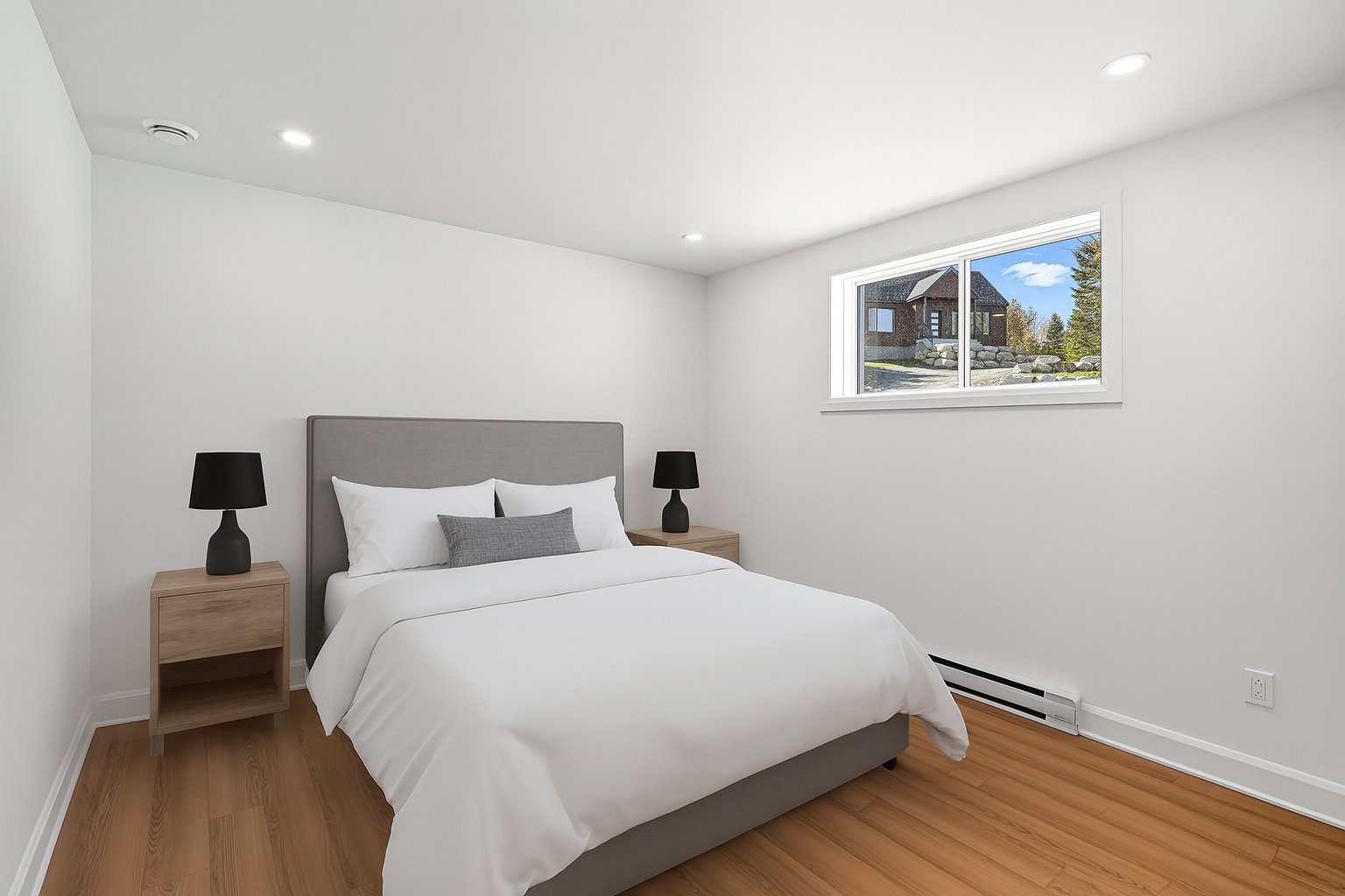 Les configurations varient selon le terrain et permettent d'aménager jusqu'à 3 chambres et 2 salles de bain, pour un confort optimal, que ce soit pour y vivre à l'année ou profiter d'un pied-à-terre dans les Laurentides.