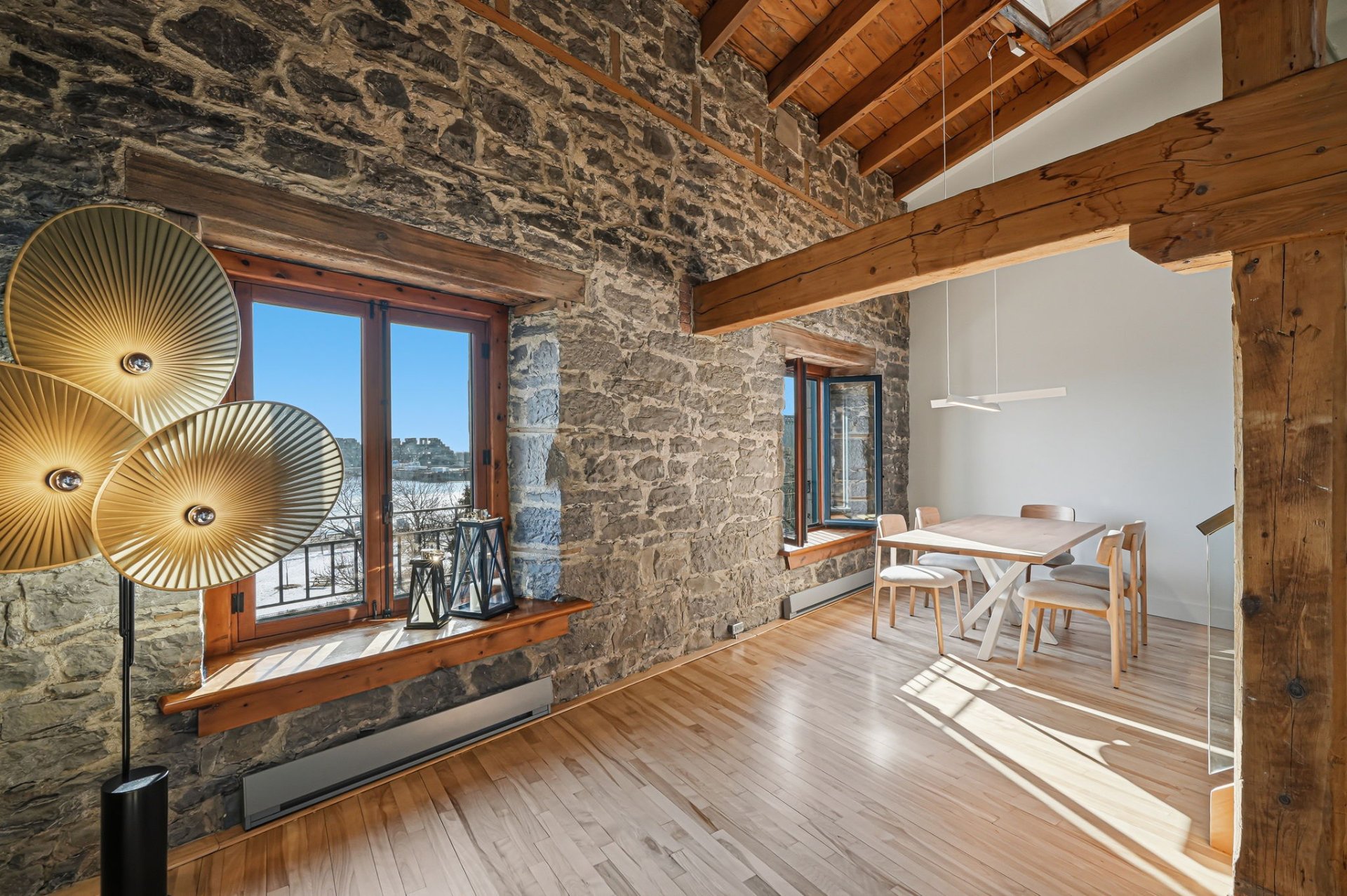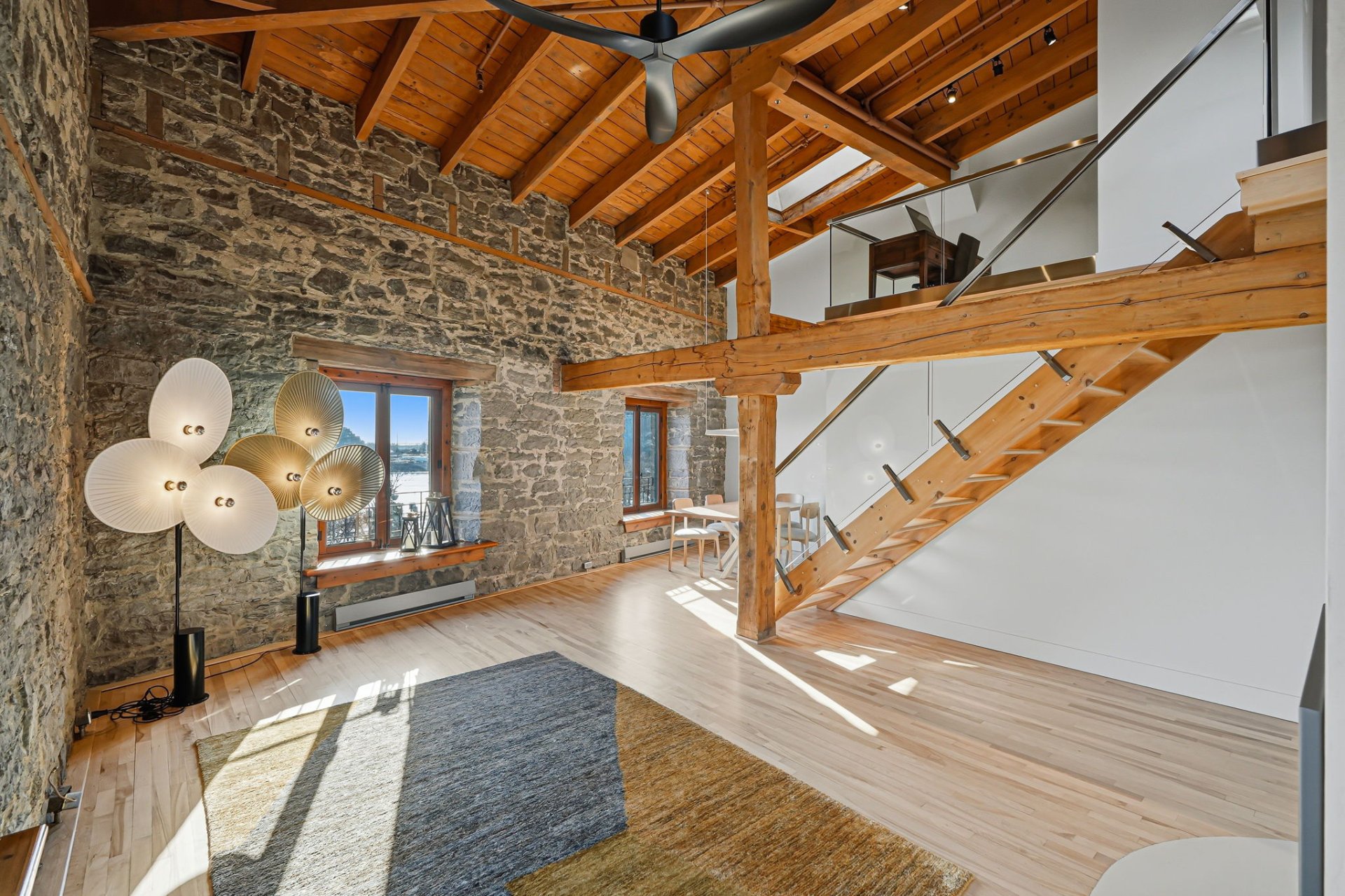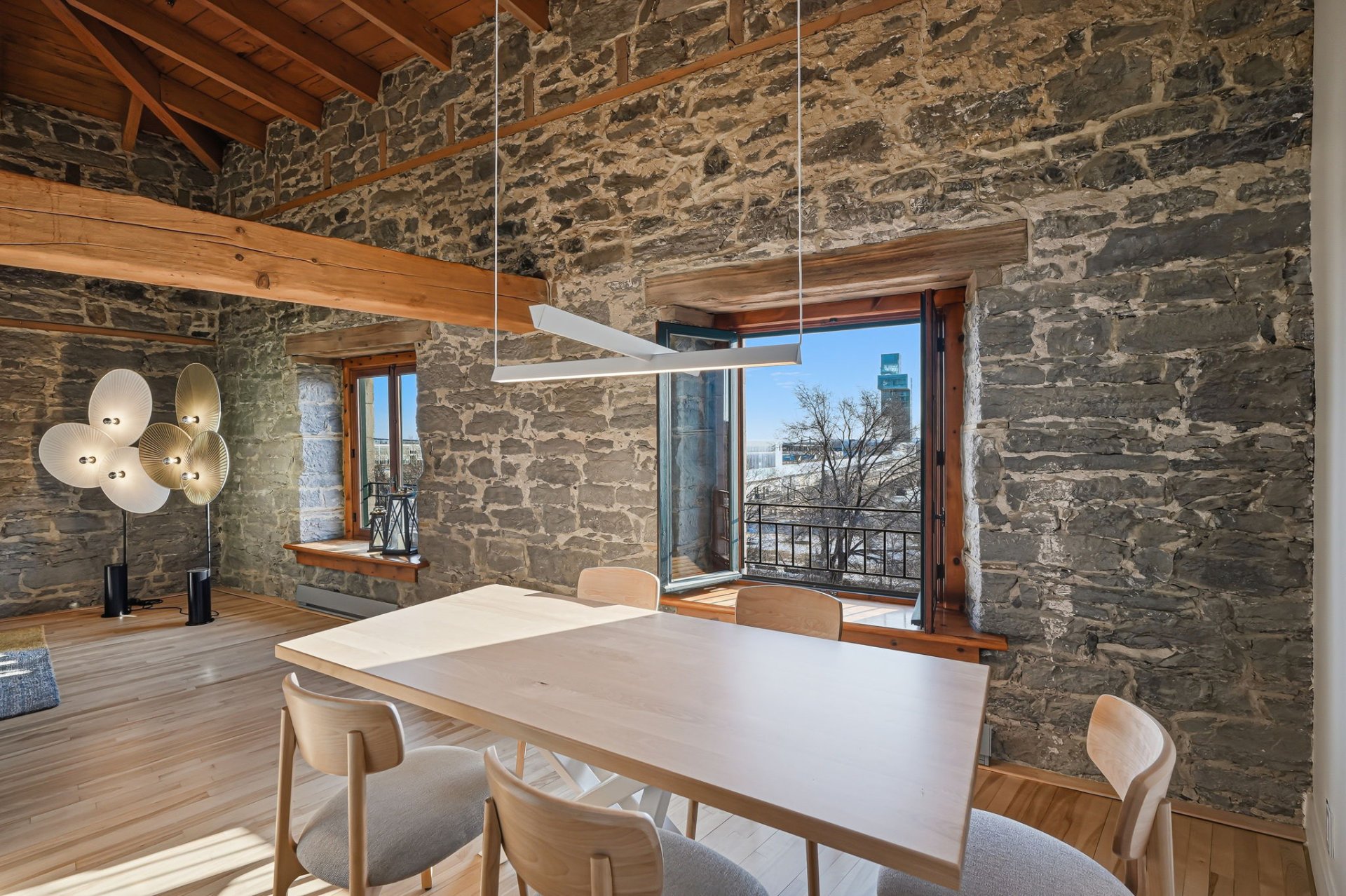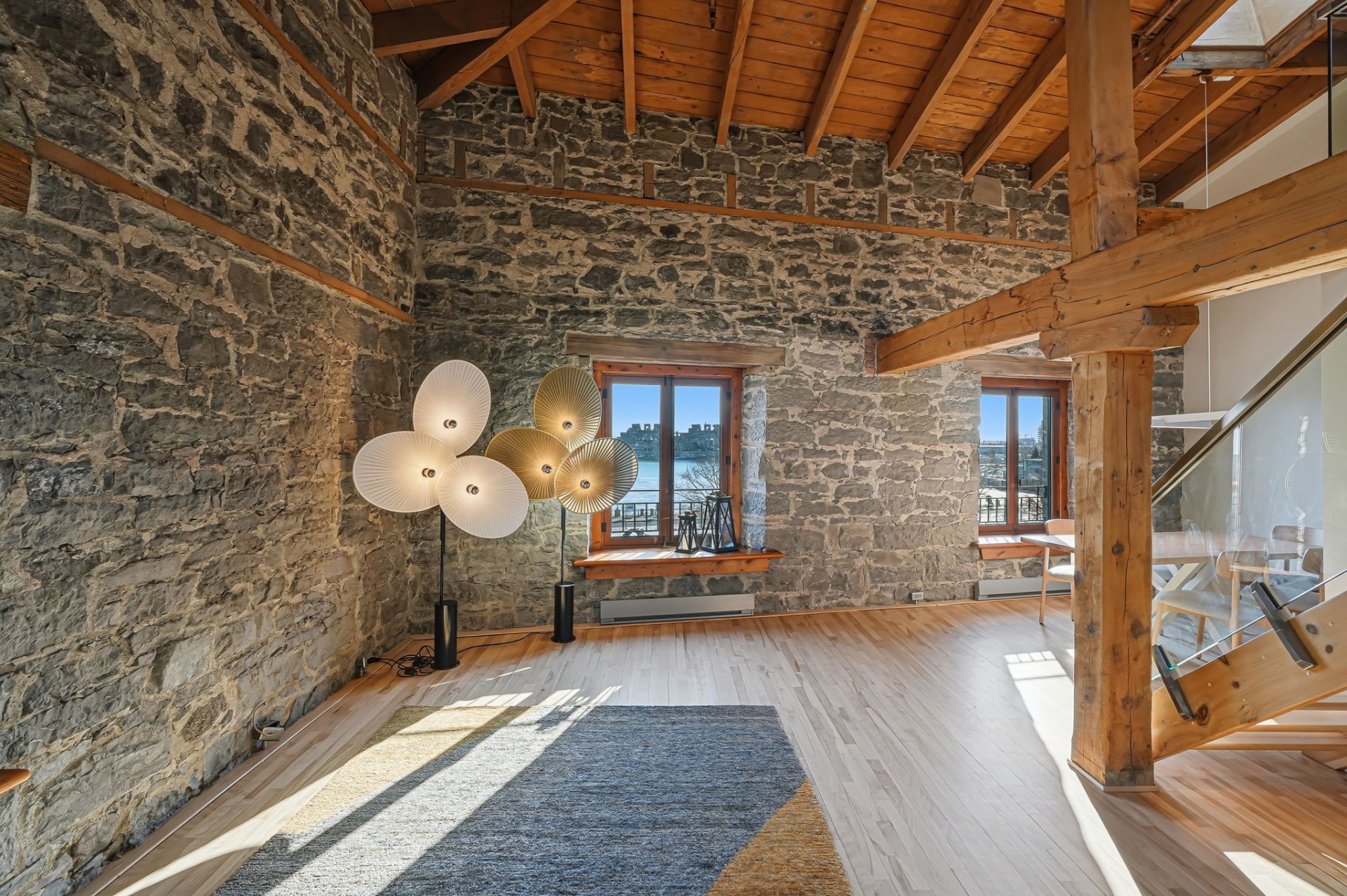 Spectaculaire et véritablement unique, ce condo sur deux niveaux allie avec maîtrise le charme d'époque au luxe contemporain raffiné. Riche en caractère, il présente de superbes planchers de bois franc, des poutres apparentes, des murs de pierre authentiques et de magnifiques fenêtres à la française, chaque élément contribuant à son attrait intemporel.