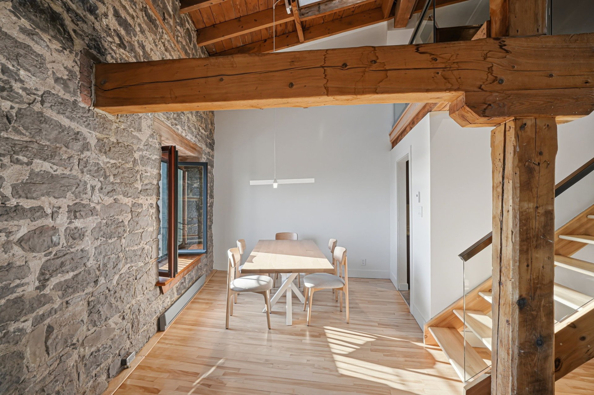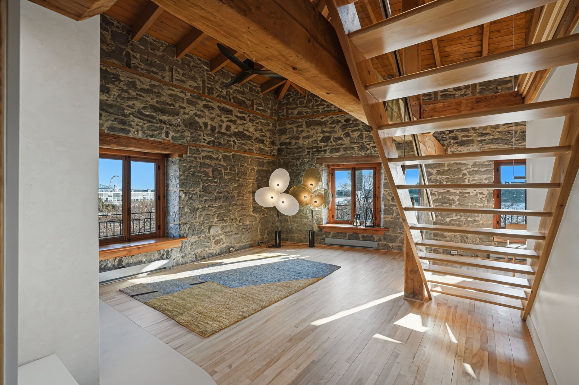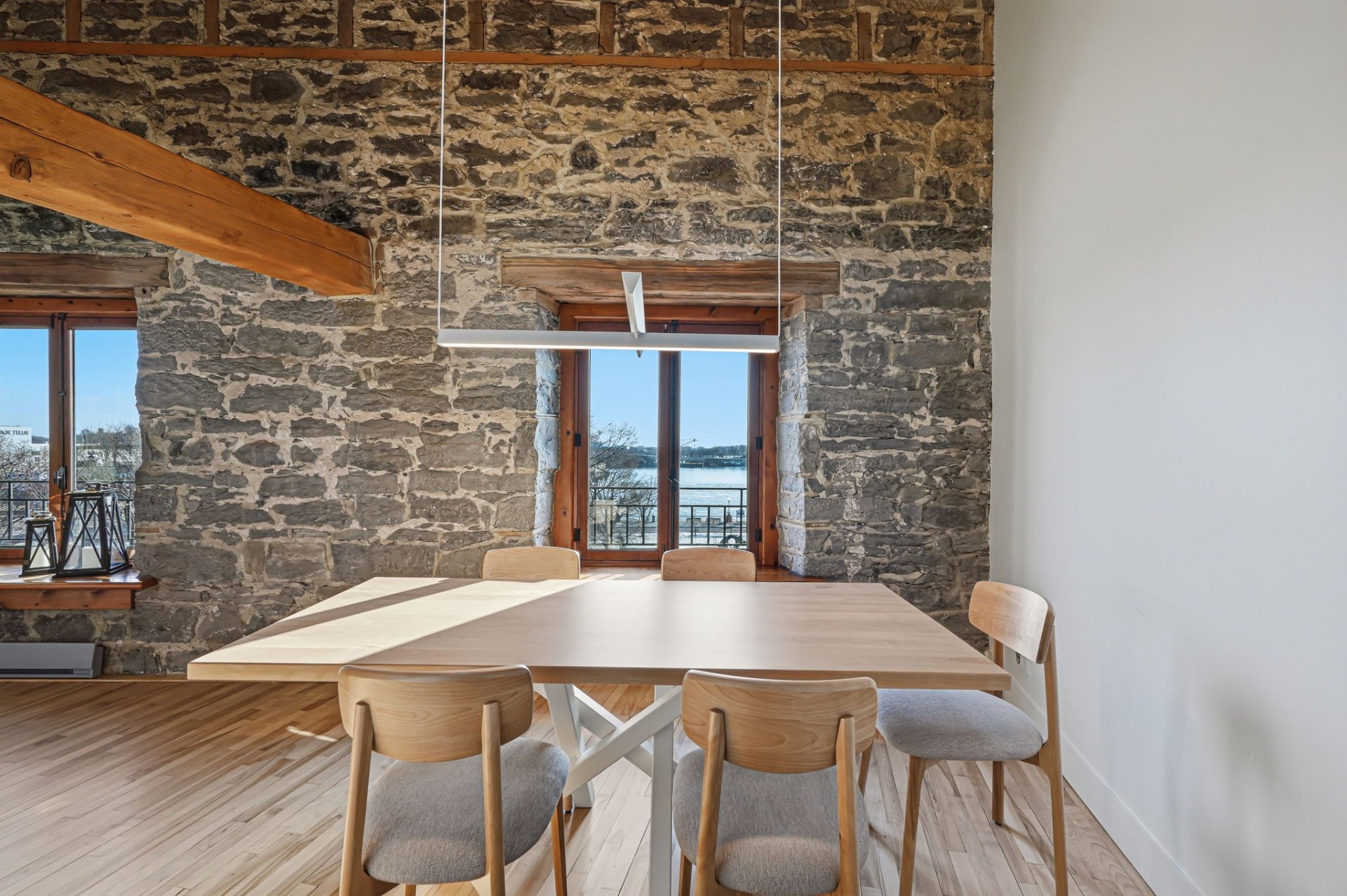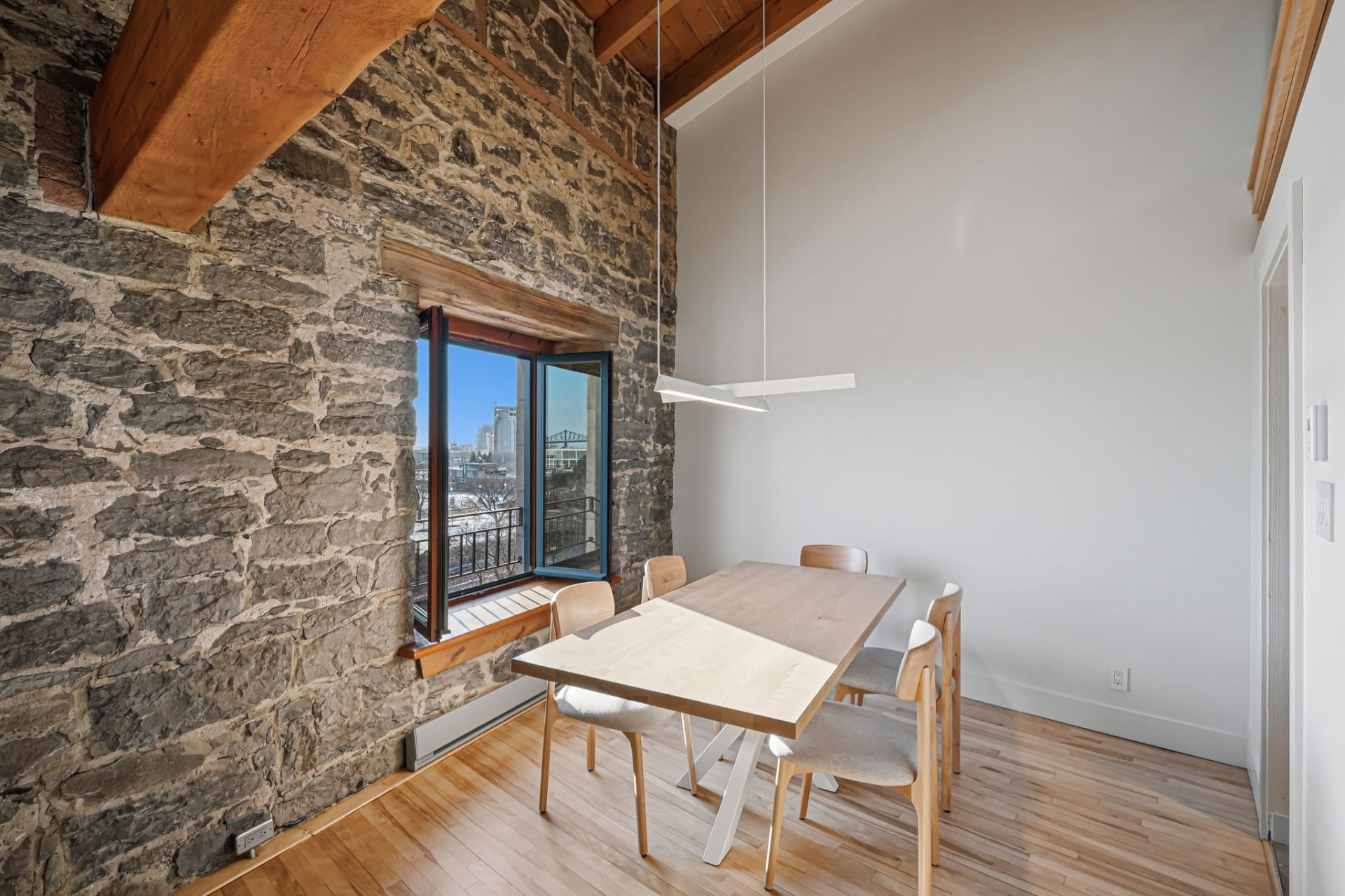 Spectaculaire et véritablement unique, ce condo sur deux niveaux allie avec maîtrise le charme d'époque au luxe contemporain raffiné. Riche en caractère, il présente de superbes planchers de bois franc, des poutres apparentes, des murs de pierre authentiques et de magnifiques fenêtres à la française, chaque élément contribuant à son attrait intemporel.