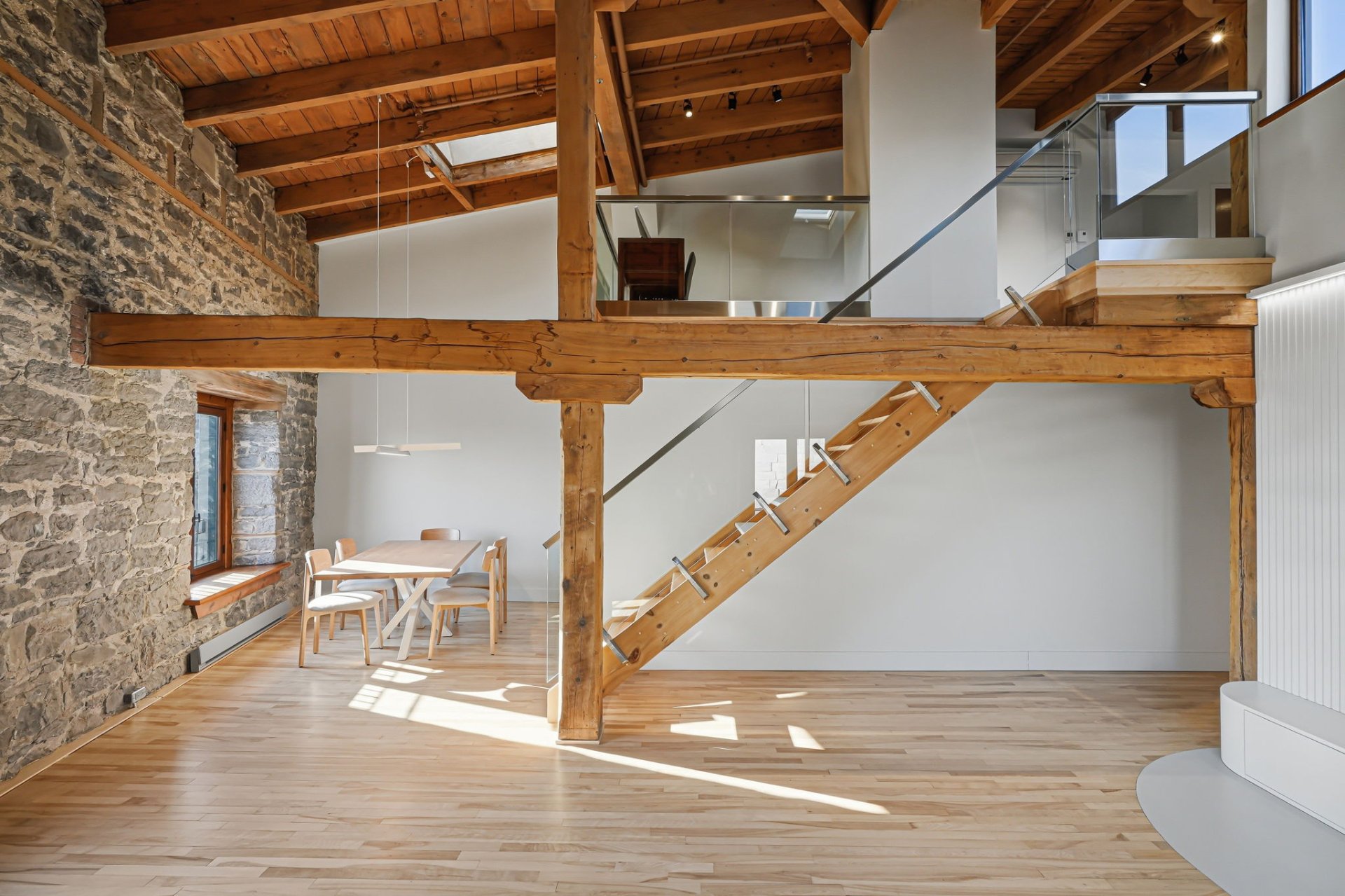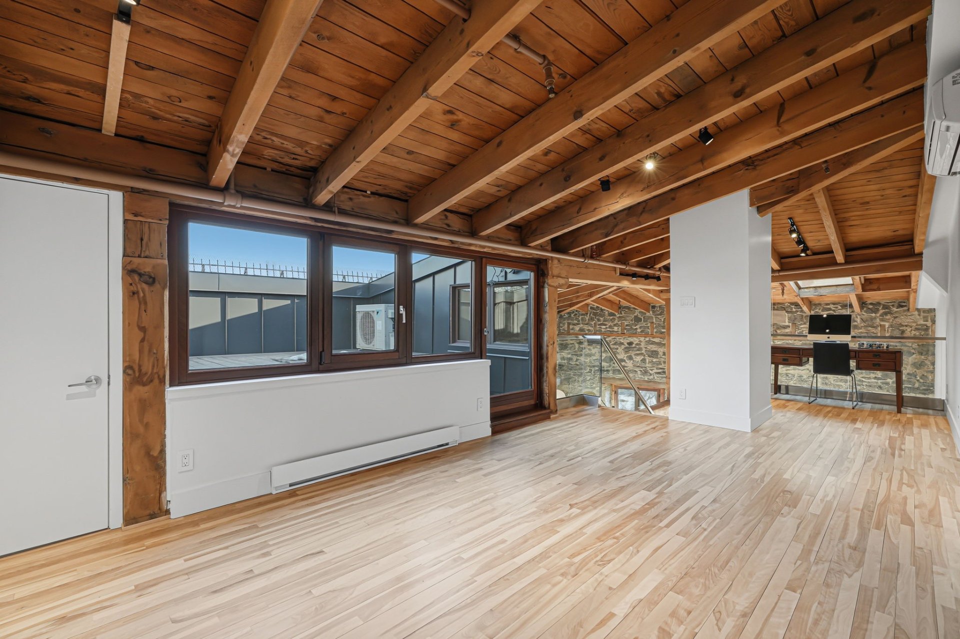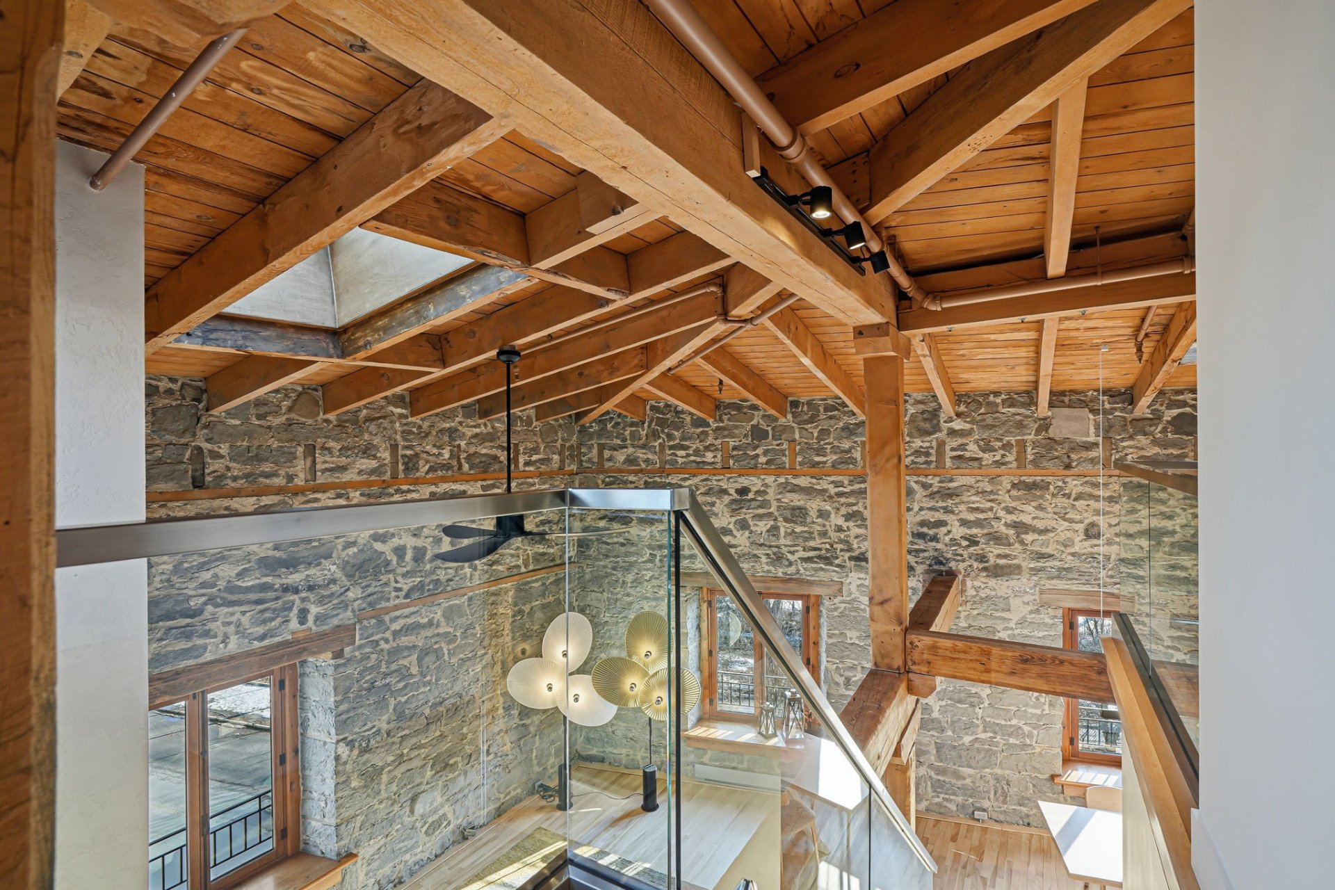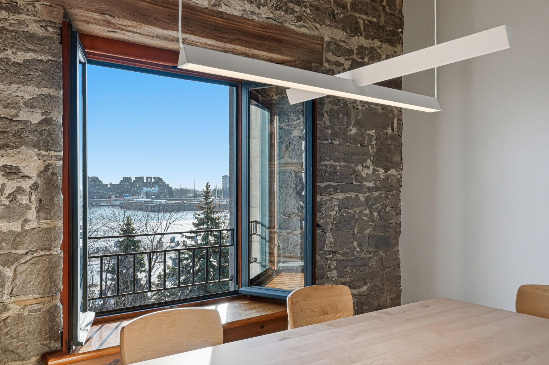 Spectaculaire et véritablement unique, ce condo sur deux niveaux allie avec maîtrise le charme d'époque au luxe contemporain raffiné. Riche en caractère, il présente de superbes planchers de bois franc, des poutres apparentes, des murs de pierre authentiques et de magnifiques fenêtres à la française, chaque élément contribuant à son attrait intemporel.