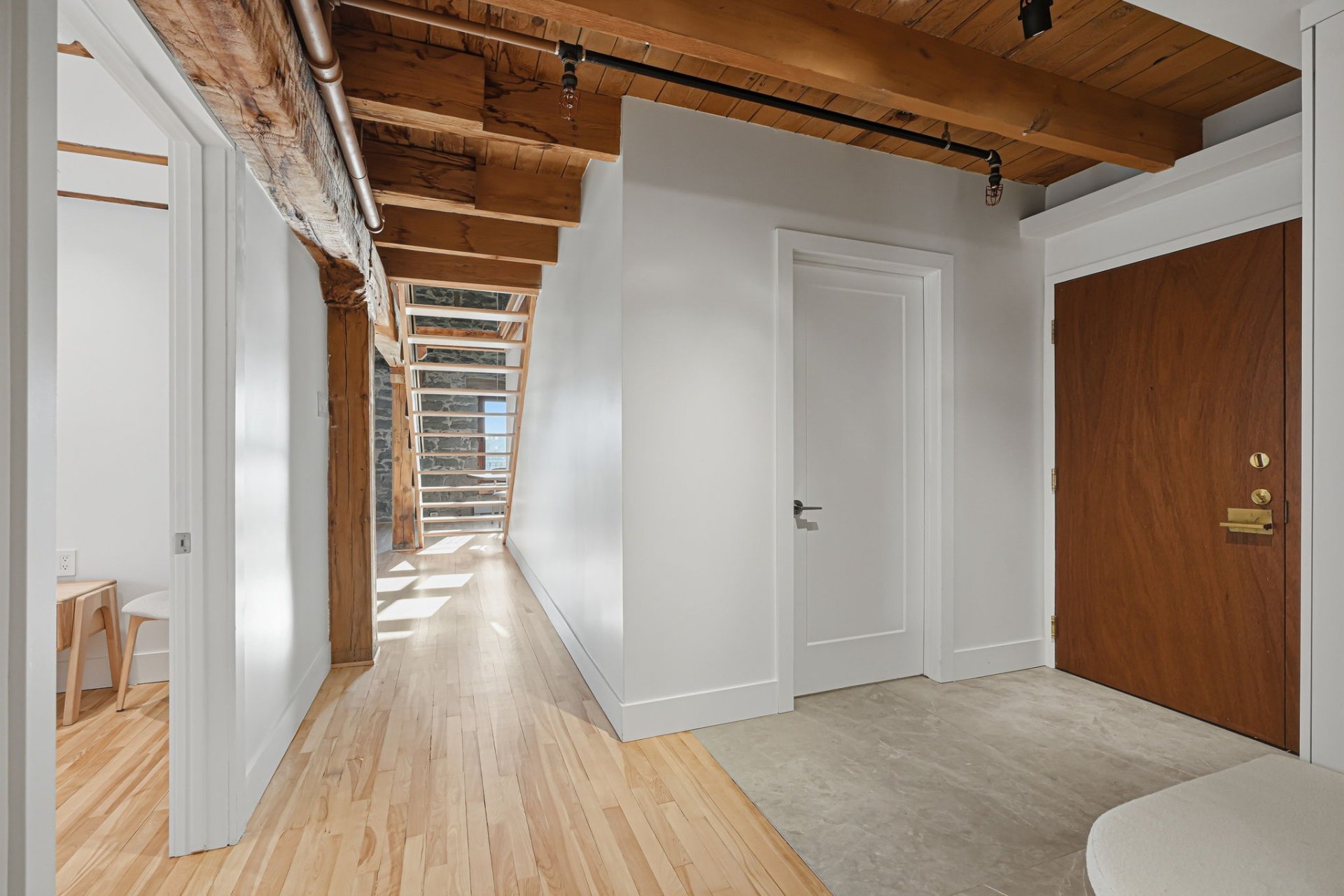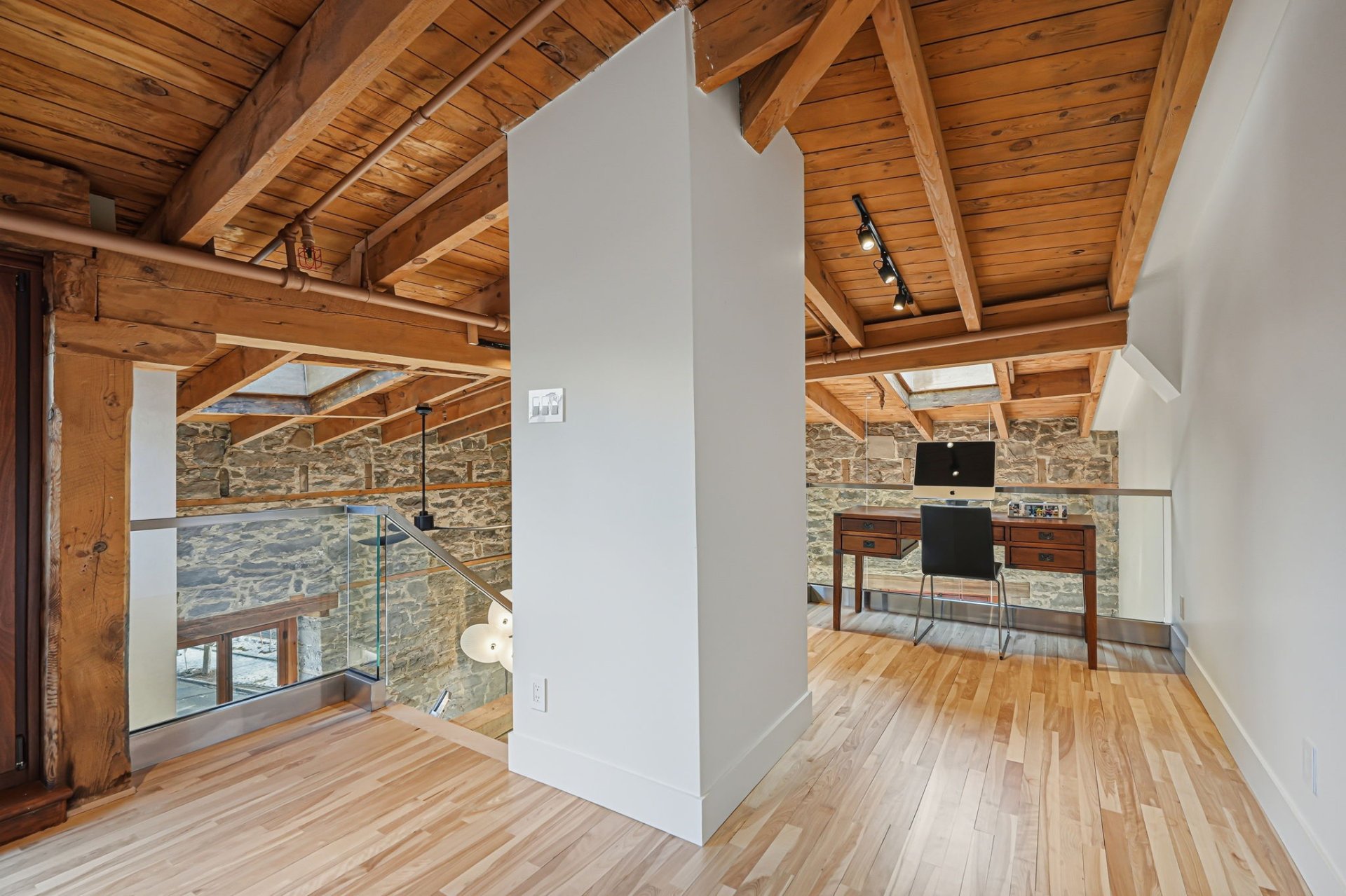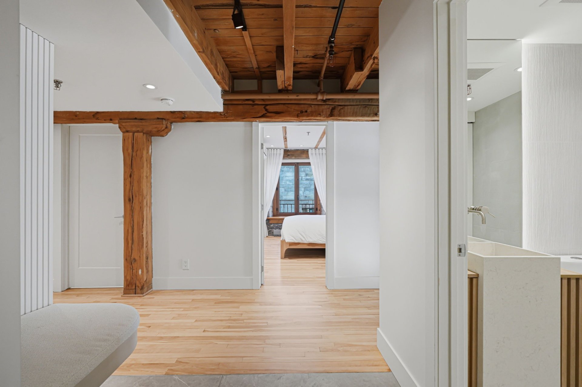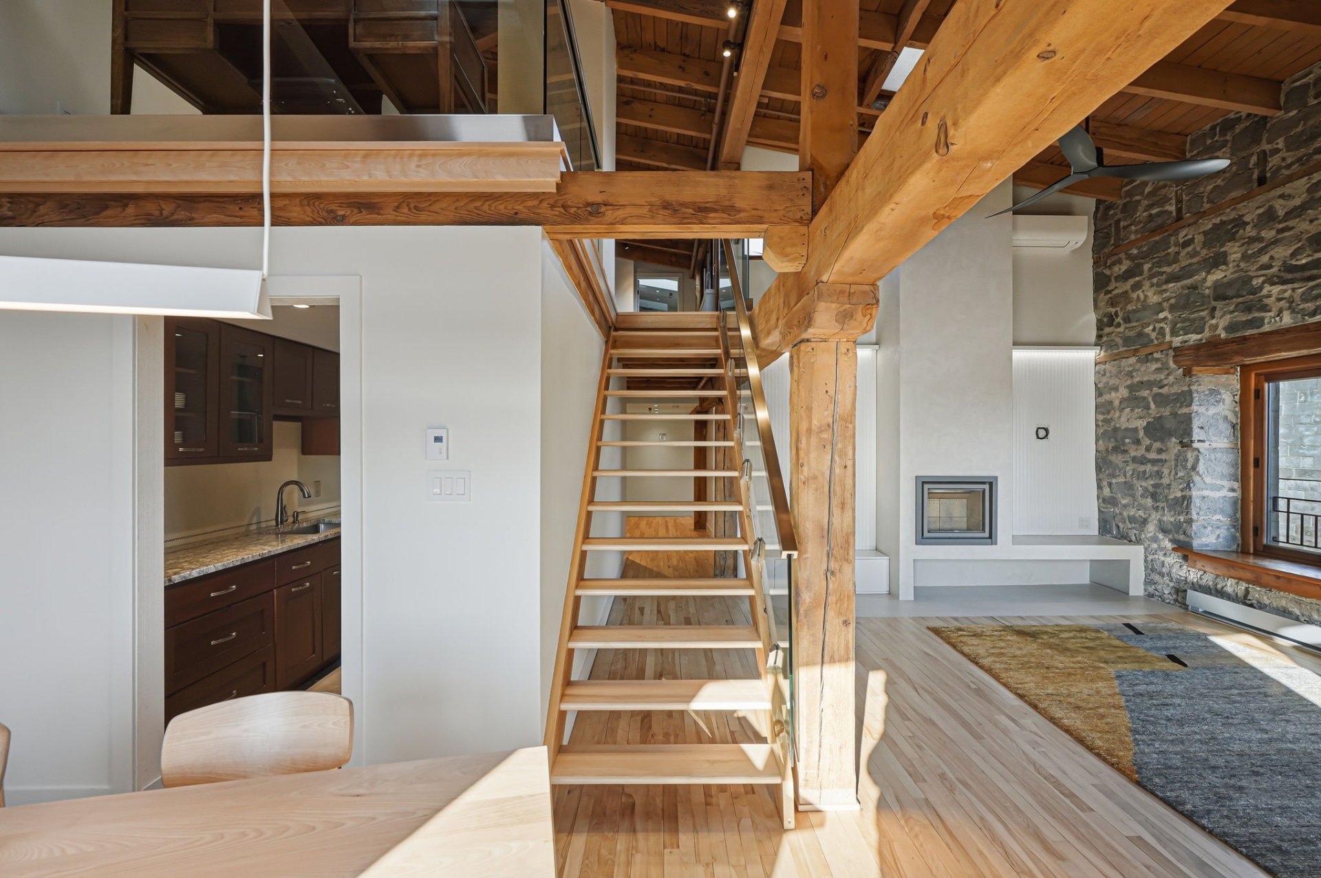 Spectaculaire et véritablement unique, ce condo sur deux niveaux allie avec maîtrise le charme d'époque au luxe contemporain raffiné. Riche en caractère, il présente de superbes planchers de bois franc, des poutres apparentes, des murs de pierre authentiques et de magnifiques fenêtres à la française, chaque élément contribuant à son attrait intemporel.