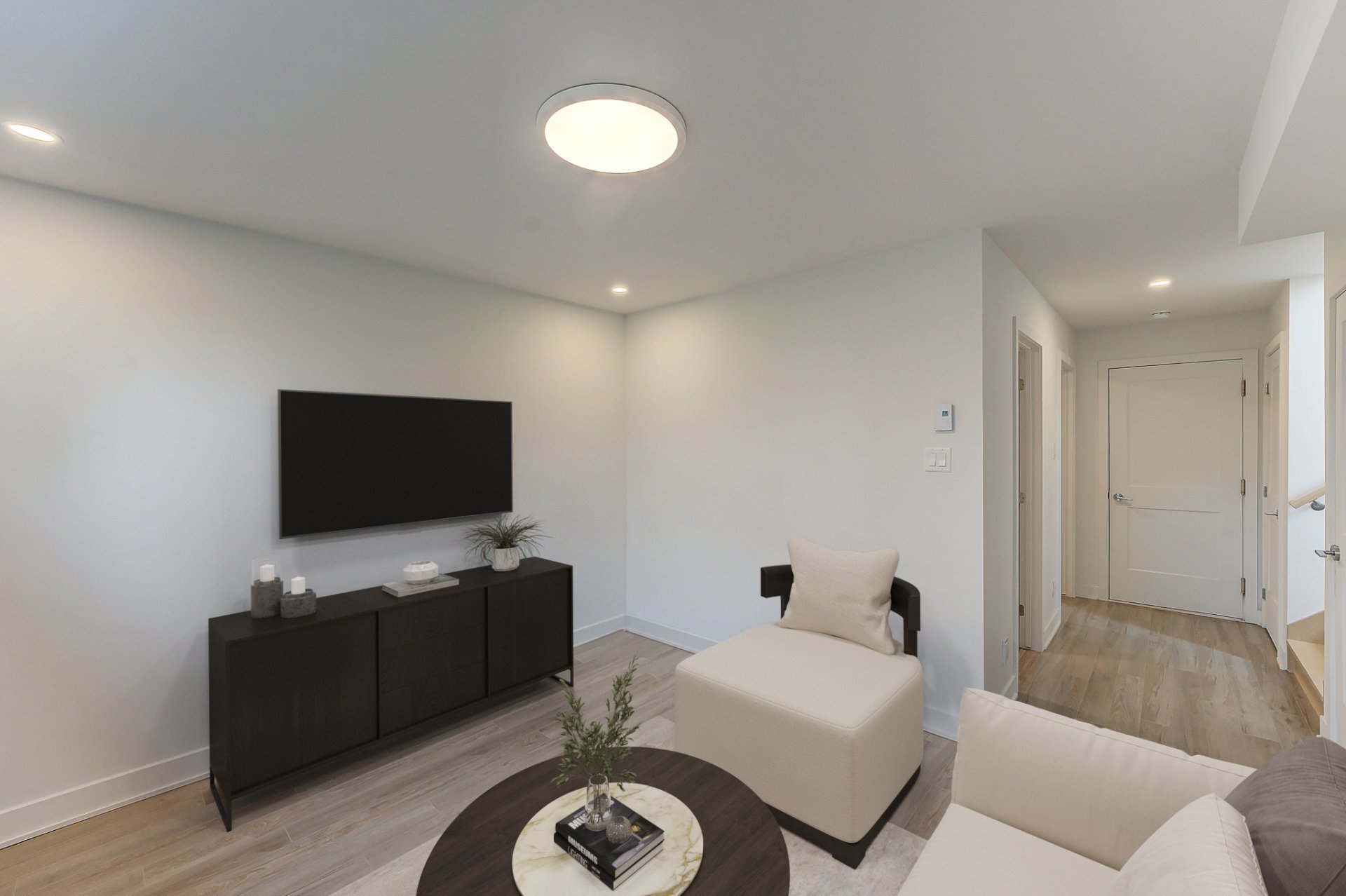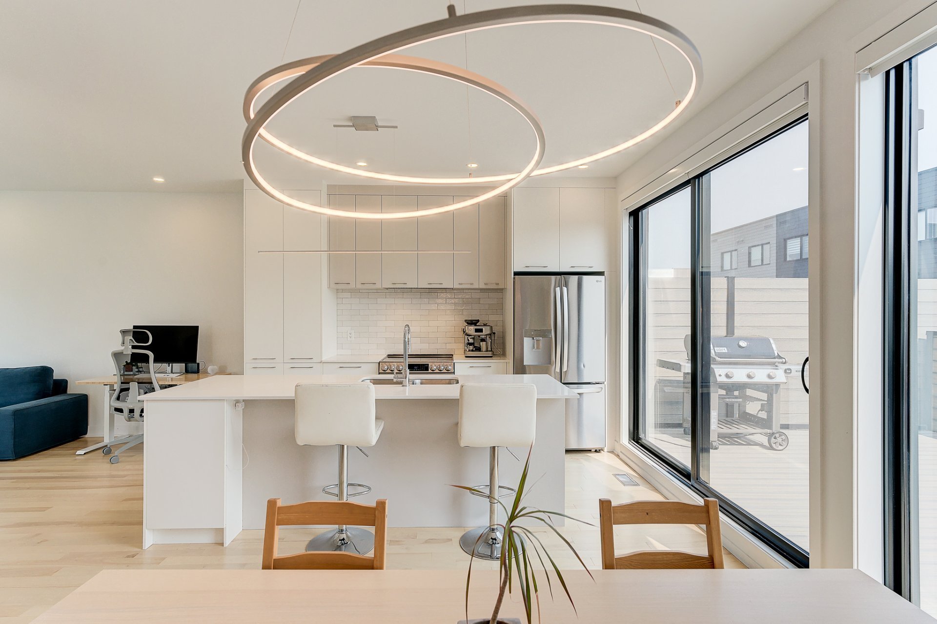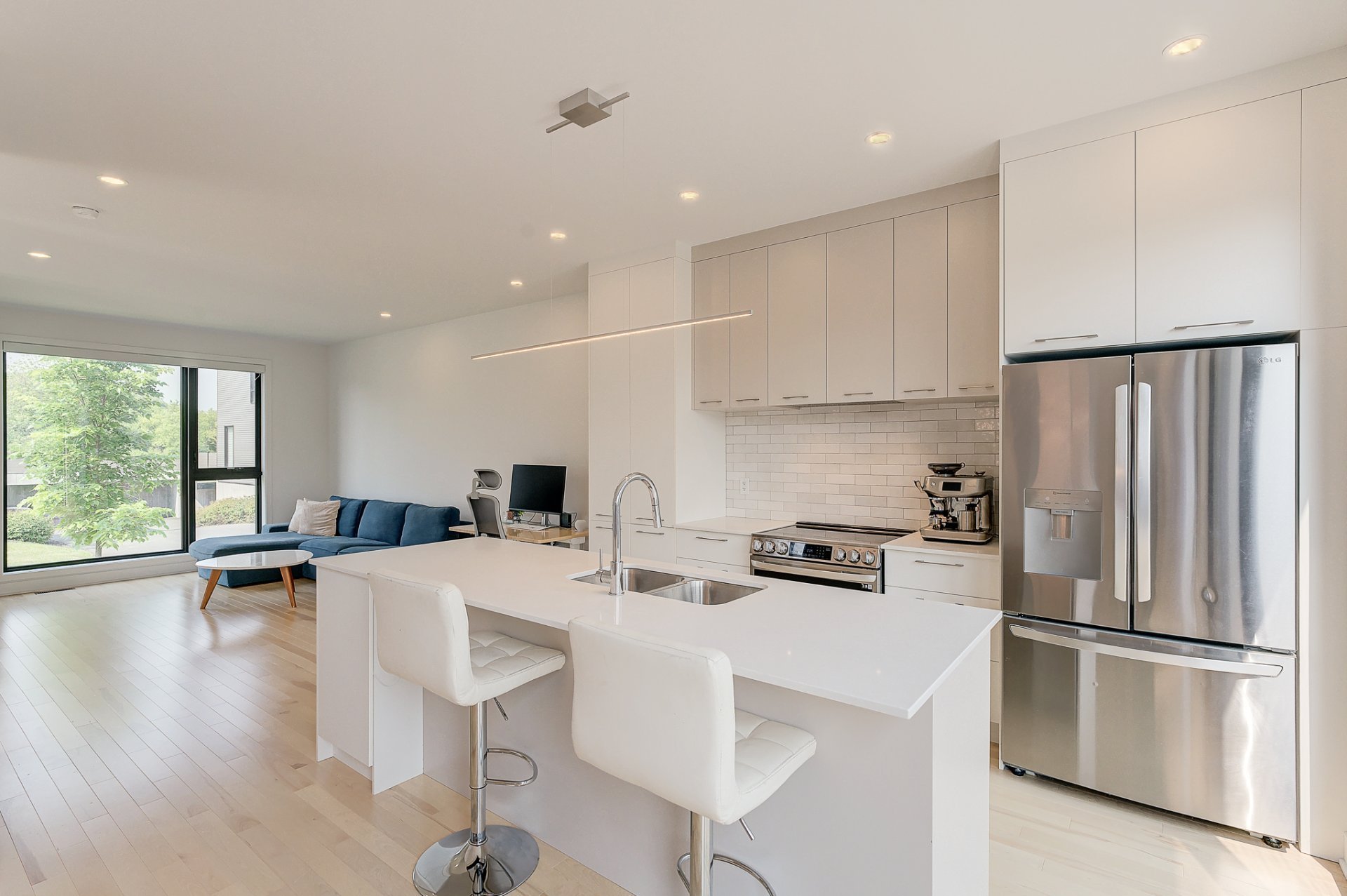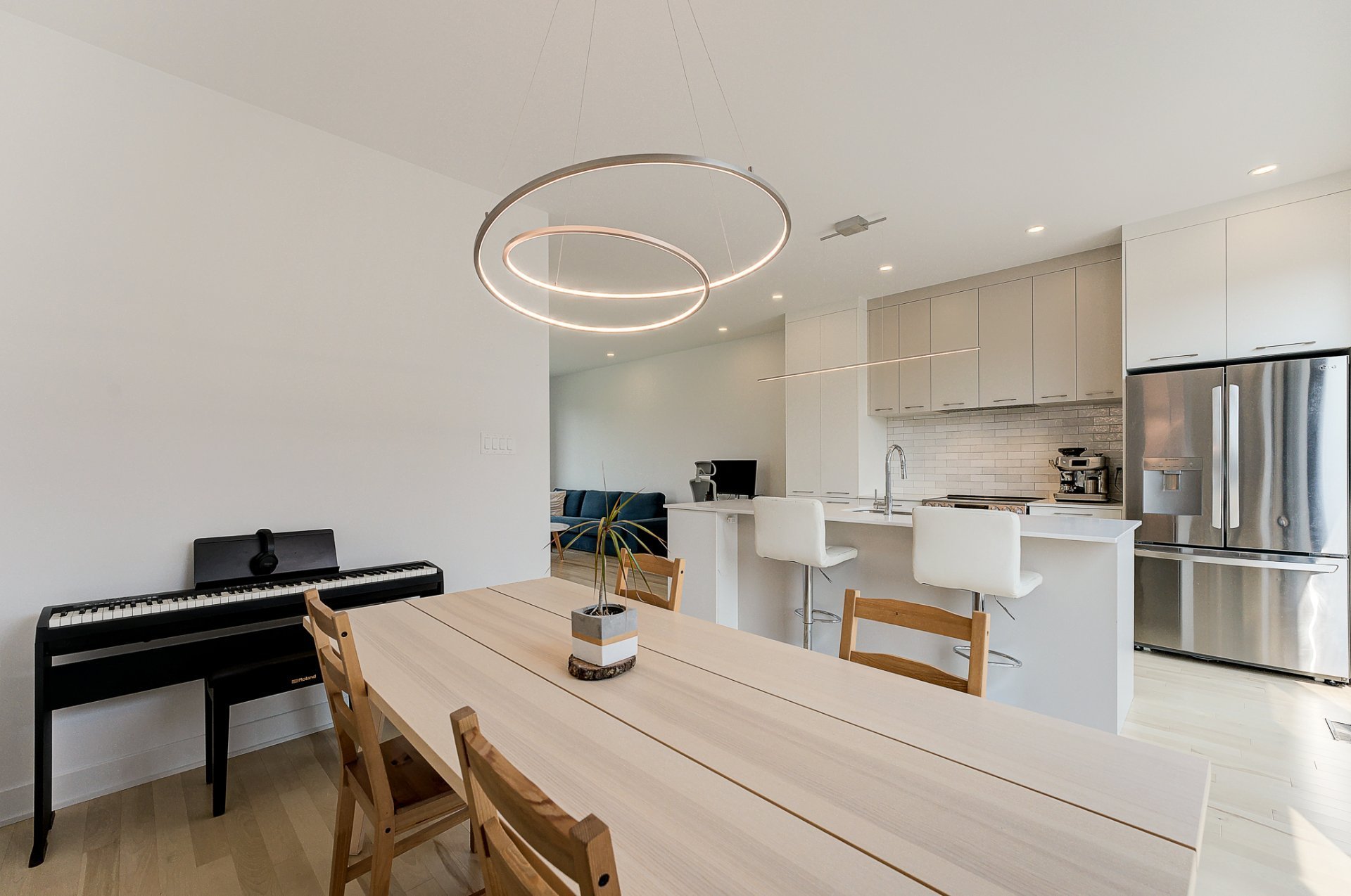 Répartie sur trois étages soigneusement aménagés, la propriété propose une superficie habitable généreuse et bien pensée. Le rez-de-chaussée à aire ouverte met en valeur un plafond de 9 pieds, un vaste salon, une salle à manger conviviale et une cuisine moderne avec îlot central, comptoirs en quartz et beaucoup de rangement. Une terrasse intime, accessible depuis l'espace repas, permet de profiter pleinement des belles journées d'été.