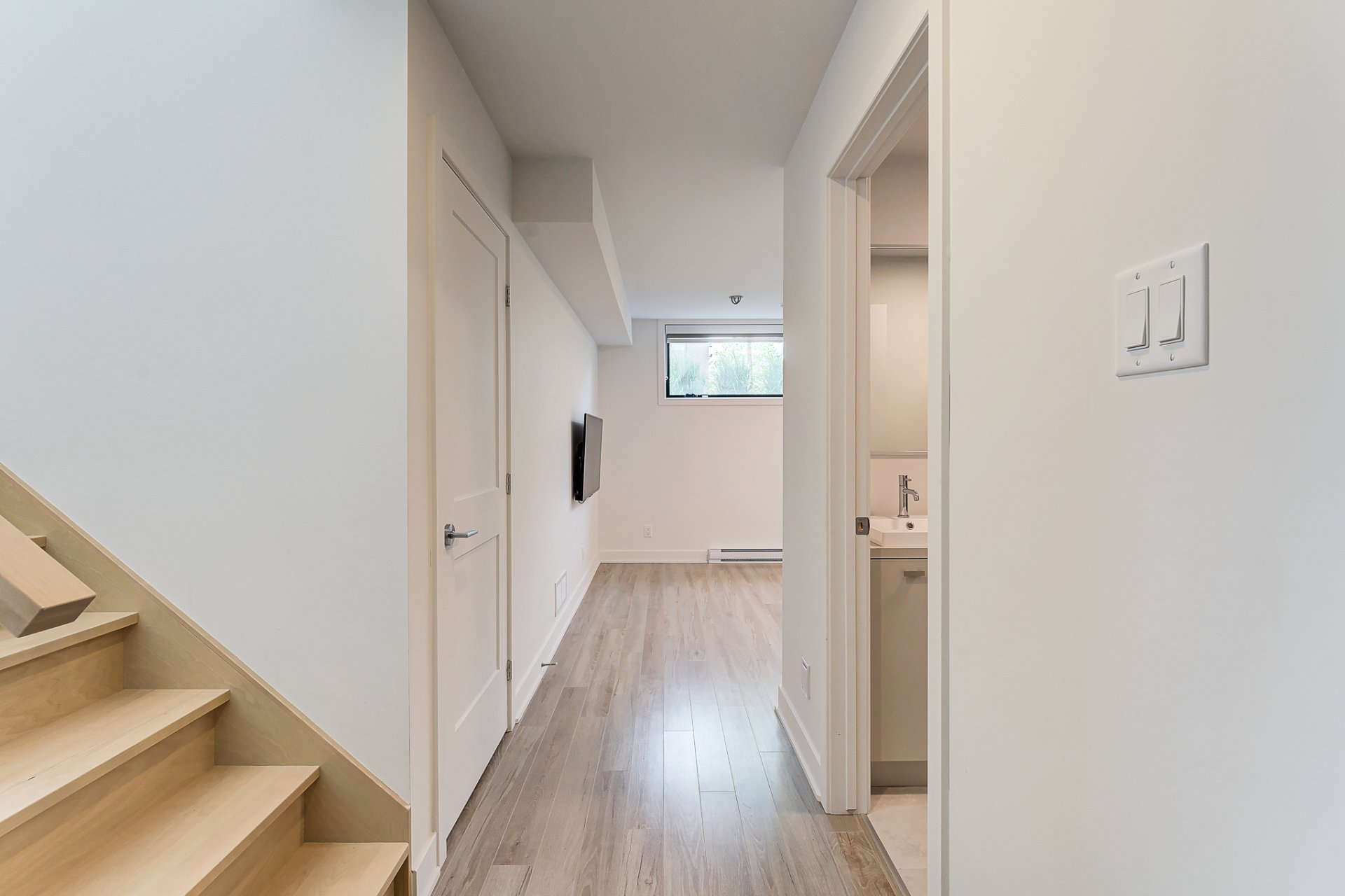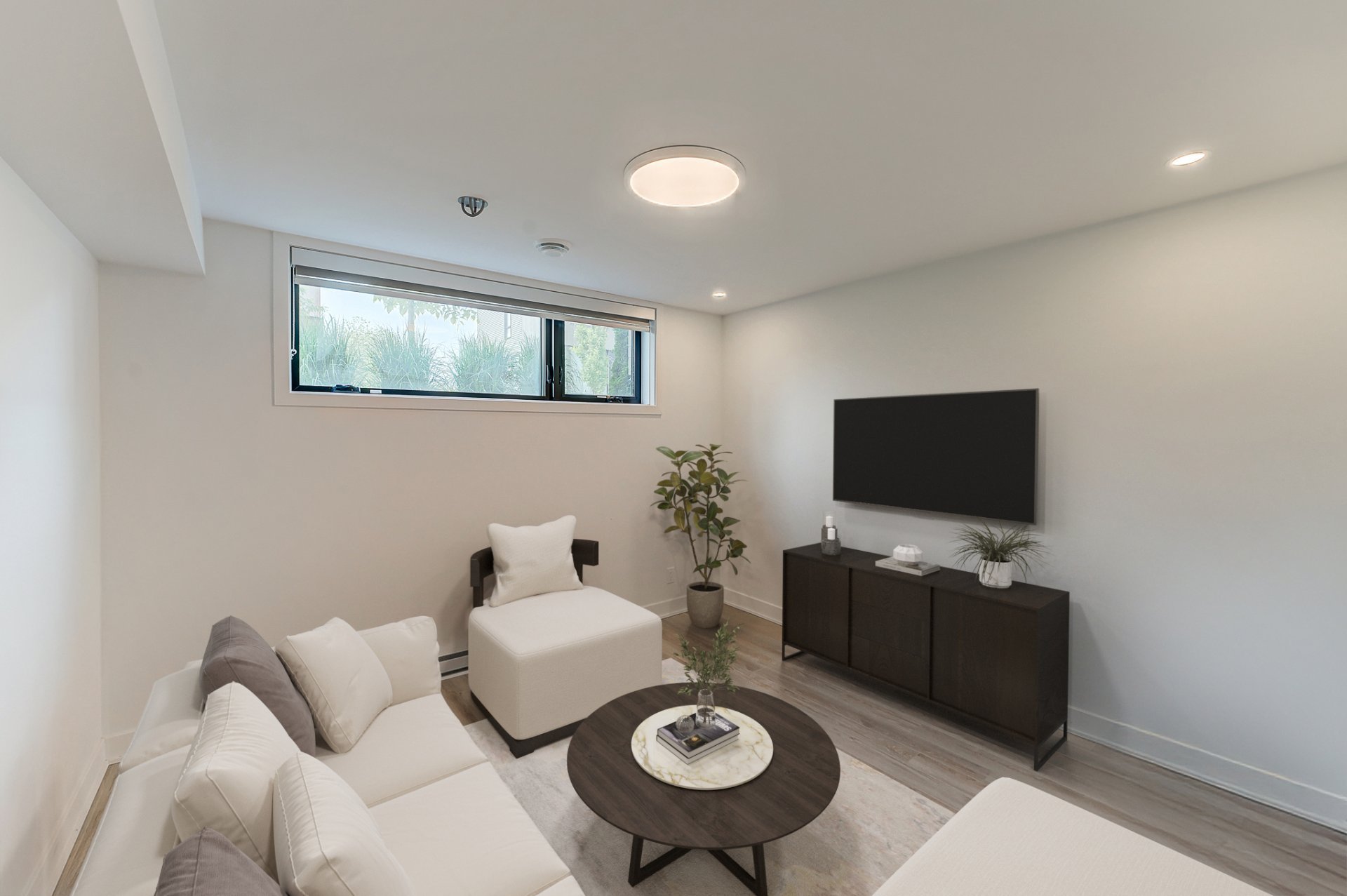 Le sous-sol, totalement aménagé, propose une grande salle familiale, une salle de bain complète, une salle de lavage indépendante et un accès direct au garage double privé. Le garage est équipé pour recevoir une borne de recharge pour véhicule électrique.