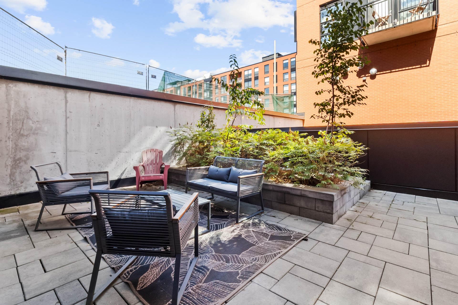 EDWIN | Élégant loft avec mezzanine situé au coeur du secteur prisé du Marché Atwater, à deux pas du canal de Lachine, de la piste cyclable et des cafés/restaurants branchés. Espace de vie à aire ouverte baigné de lumière grâce à une fenestration surdimensionnée et un plafond de 17 pieds, offrant un accès direct à une terrasse privative et à la cour intérieure. Cuisine moderne avec îlot central, chambre en mezzanine avec salle de bains attenante. Équipé d'une climatisation murale, d'un espace de rangement et d'un garage.