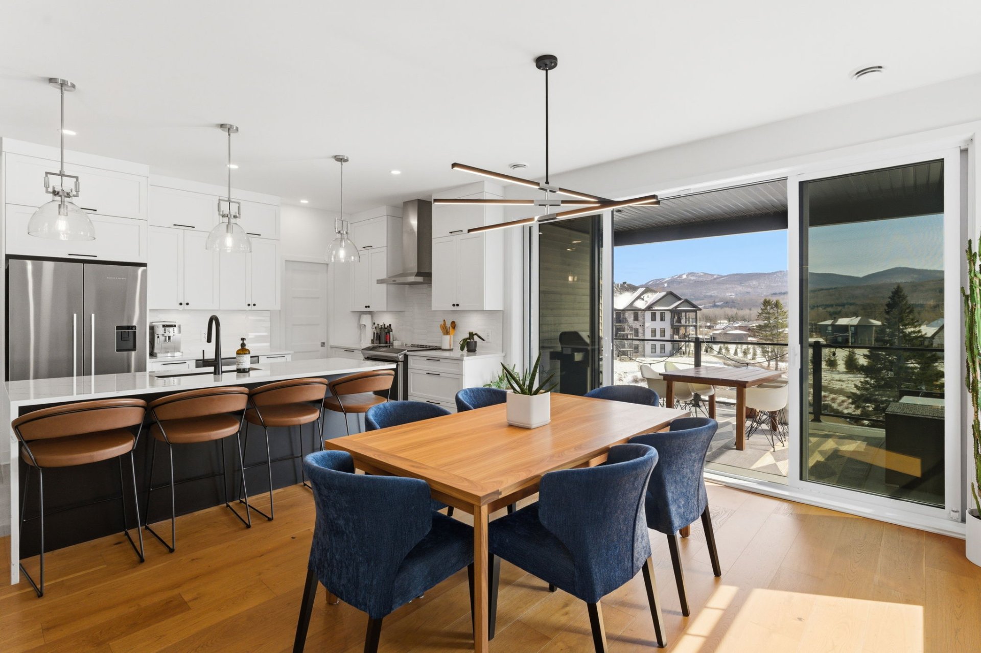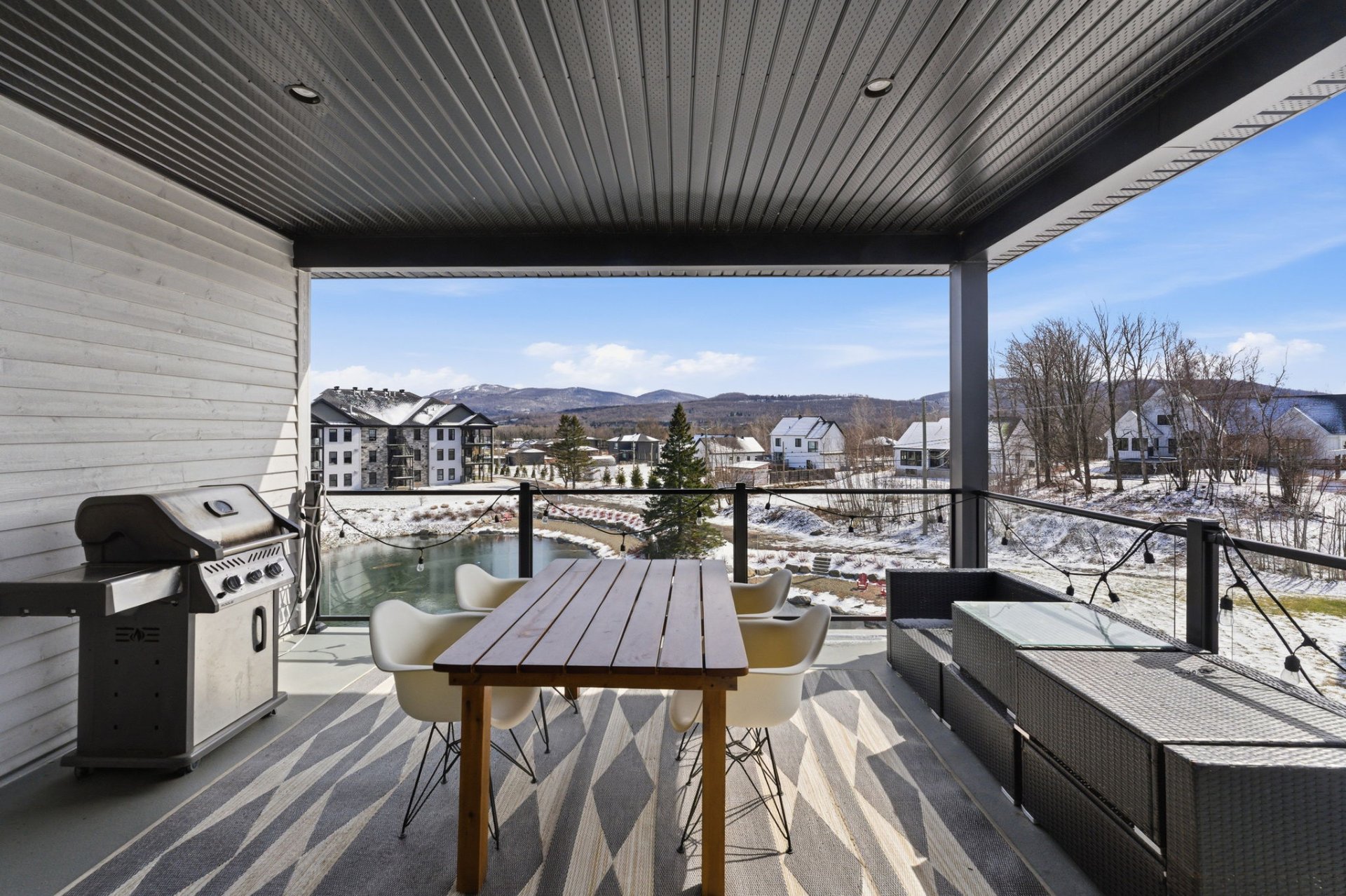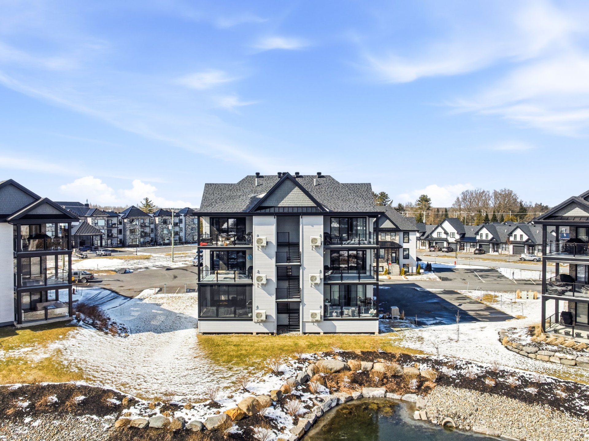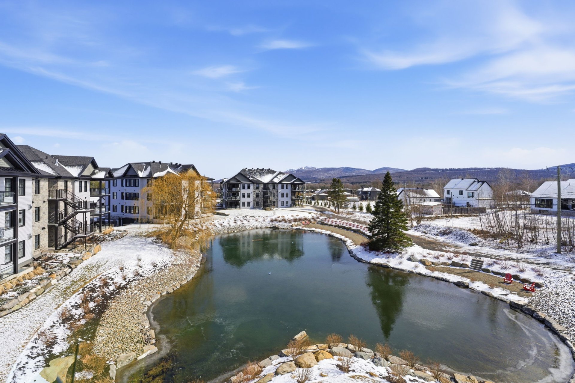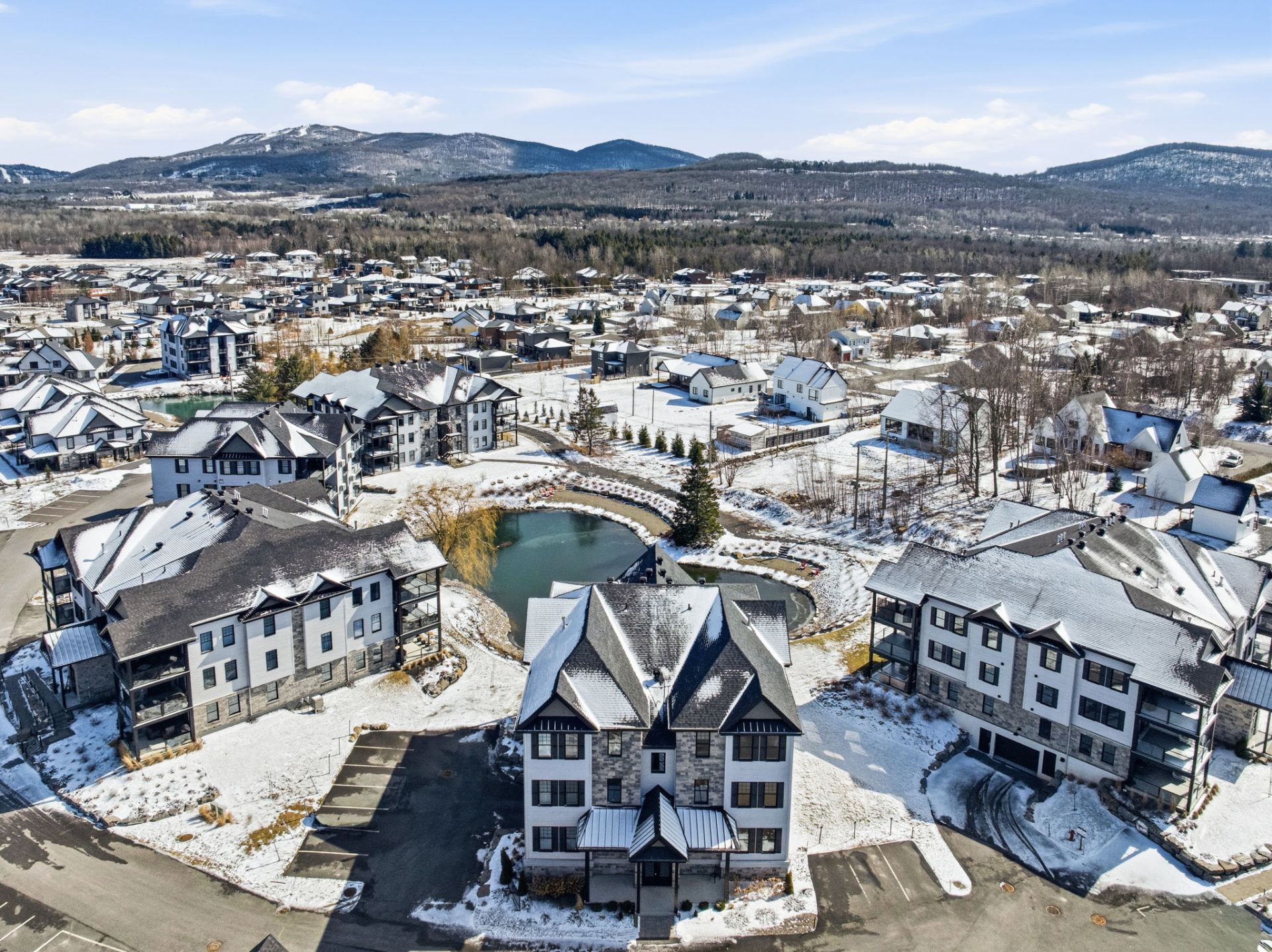 Au coeur de La Cité du Golf des Lacs, situé au troisième niveau, ce condo d'exception profite indéniablement de la plus belle vue du projet, une vue sur la montagne de Bromont qui s'illumine en hiver et en été sur l'étang paysagé où trône une magnifique fontaine.